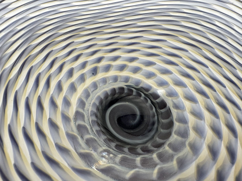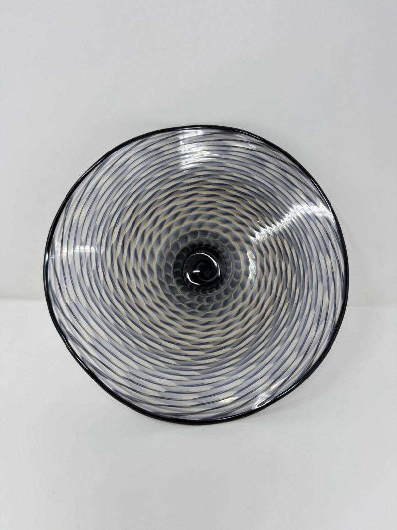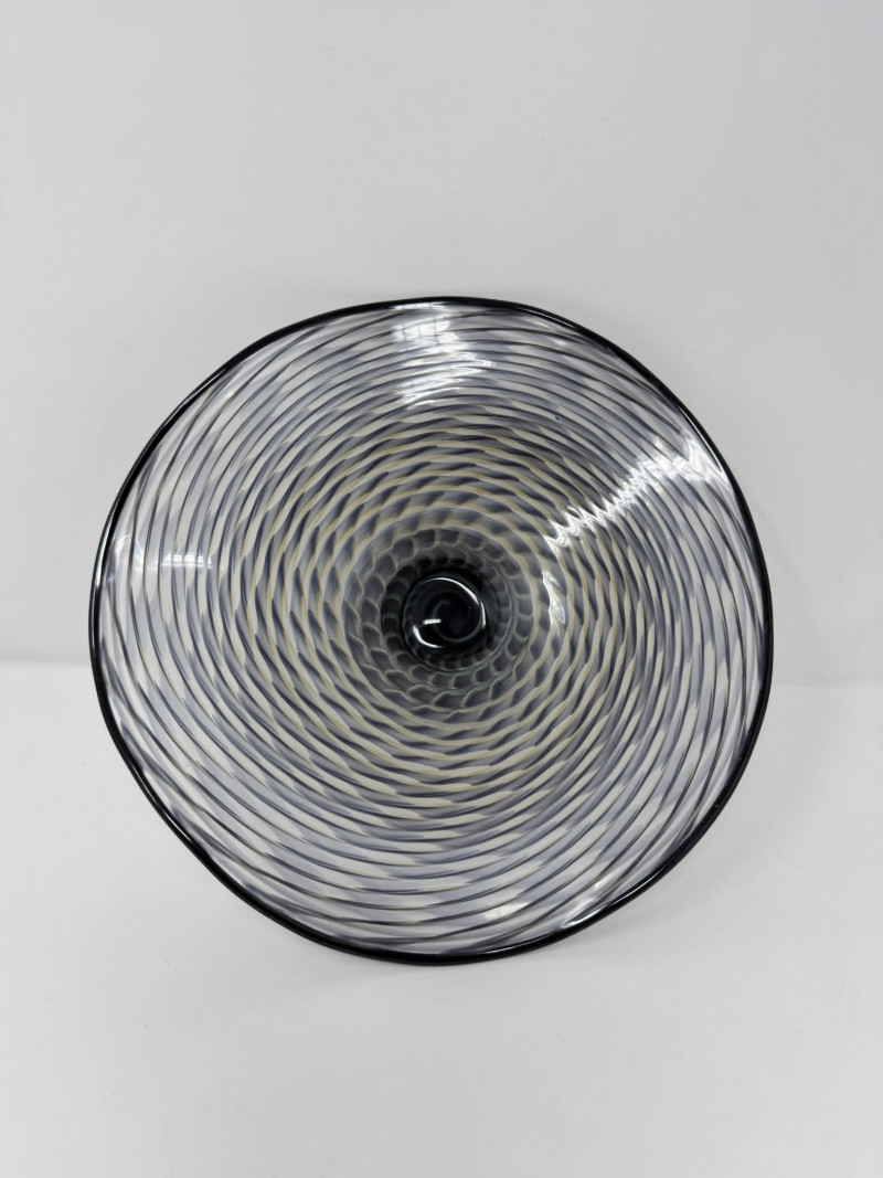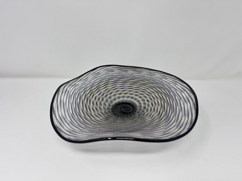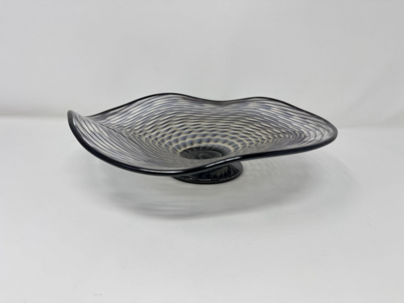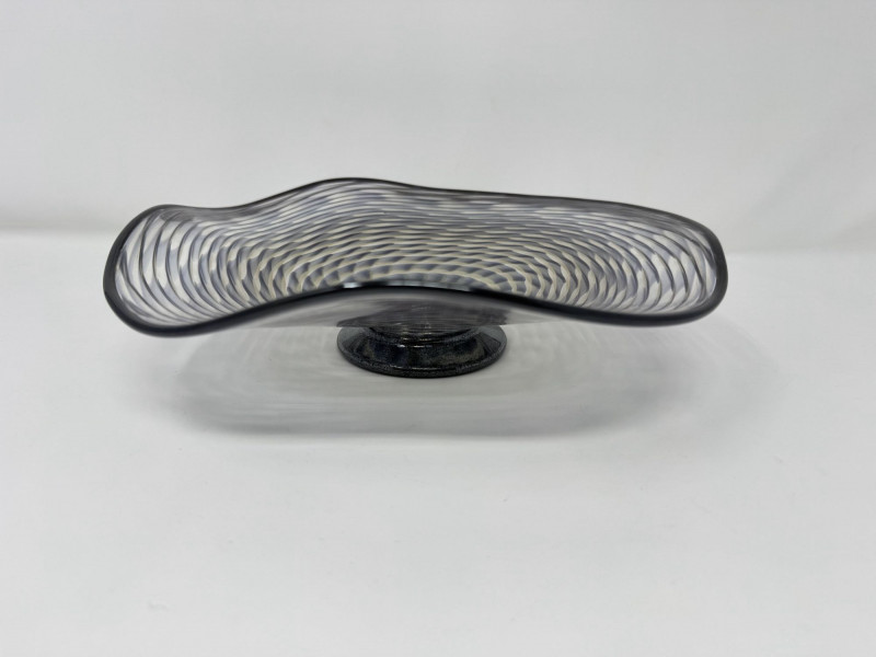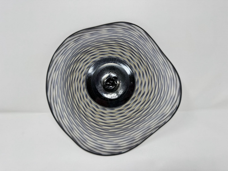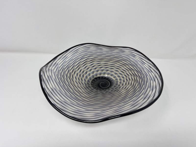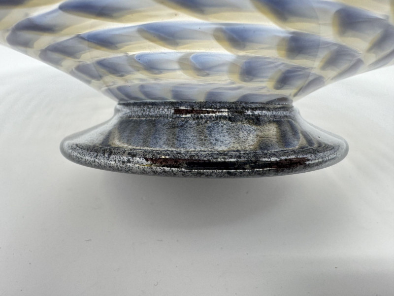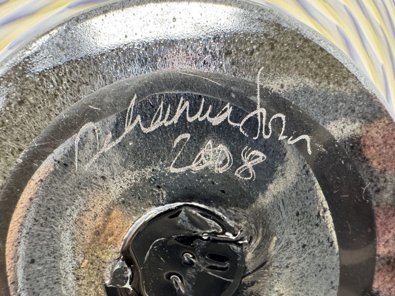 Lot # 97 - Signed Art Glass Bowl 2008 – Hand Blown Swirl Pattern Footed Dish