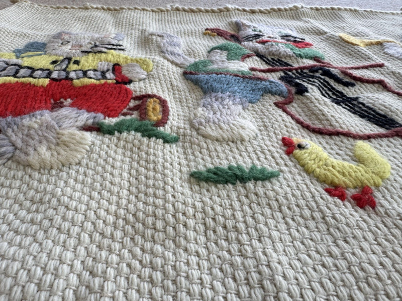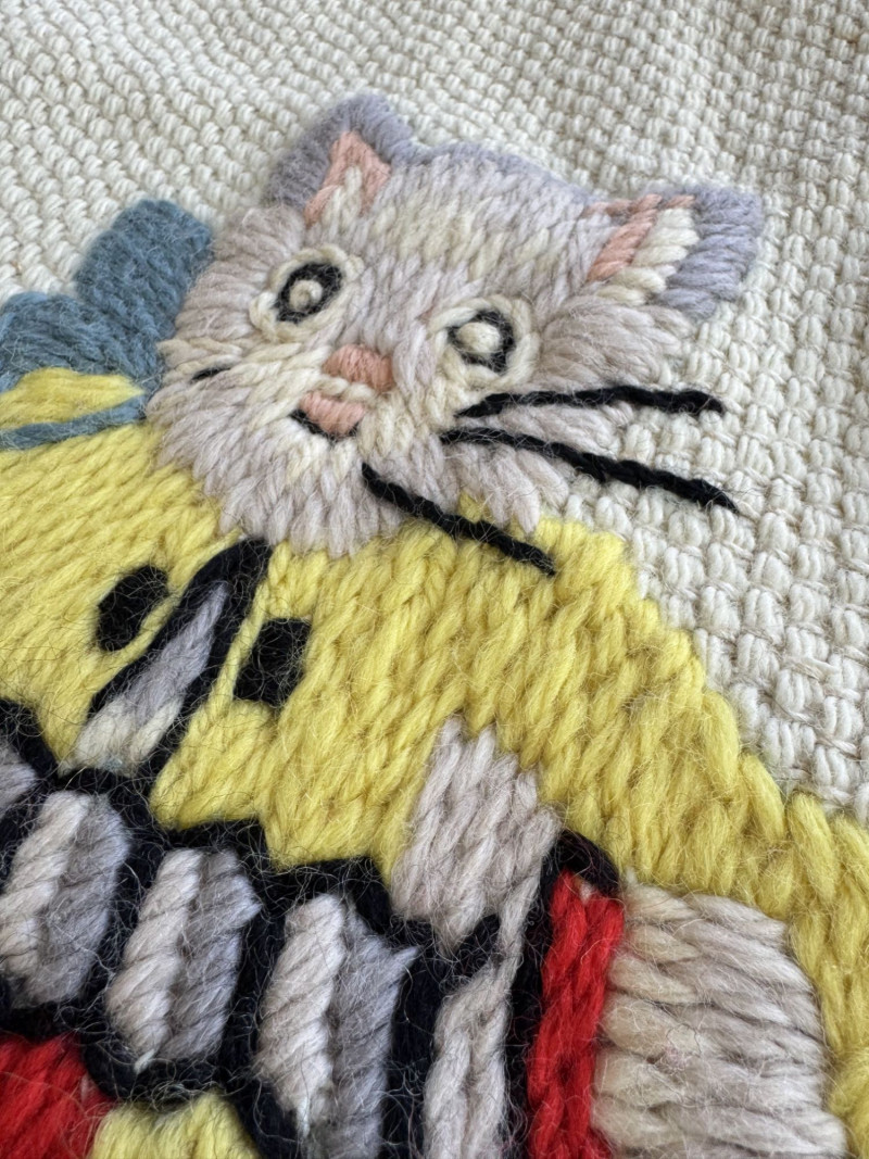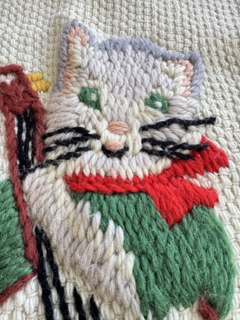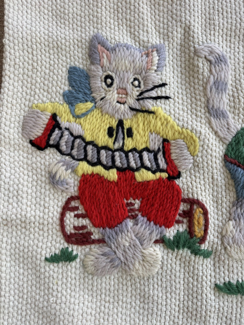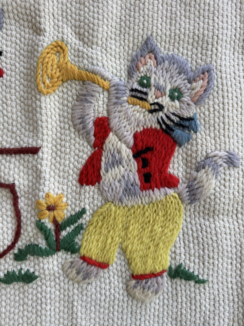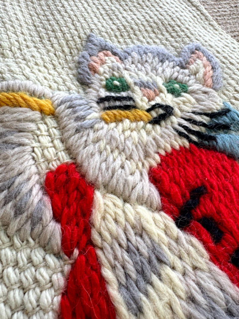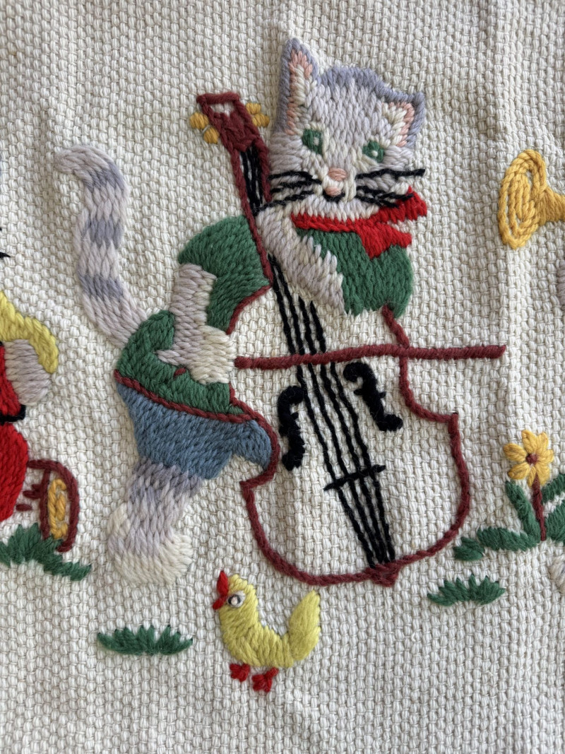 Lot # 107 - Hand-Knitted Tapestry w/ Braided Loops - Cats Playing Instruments
