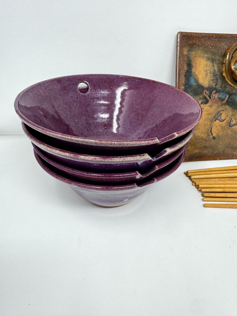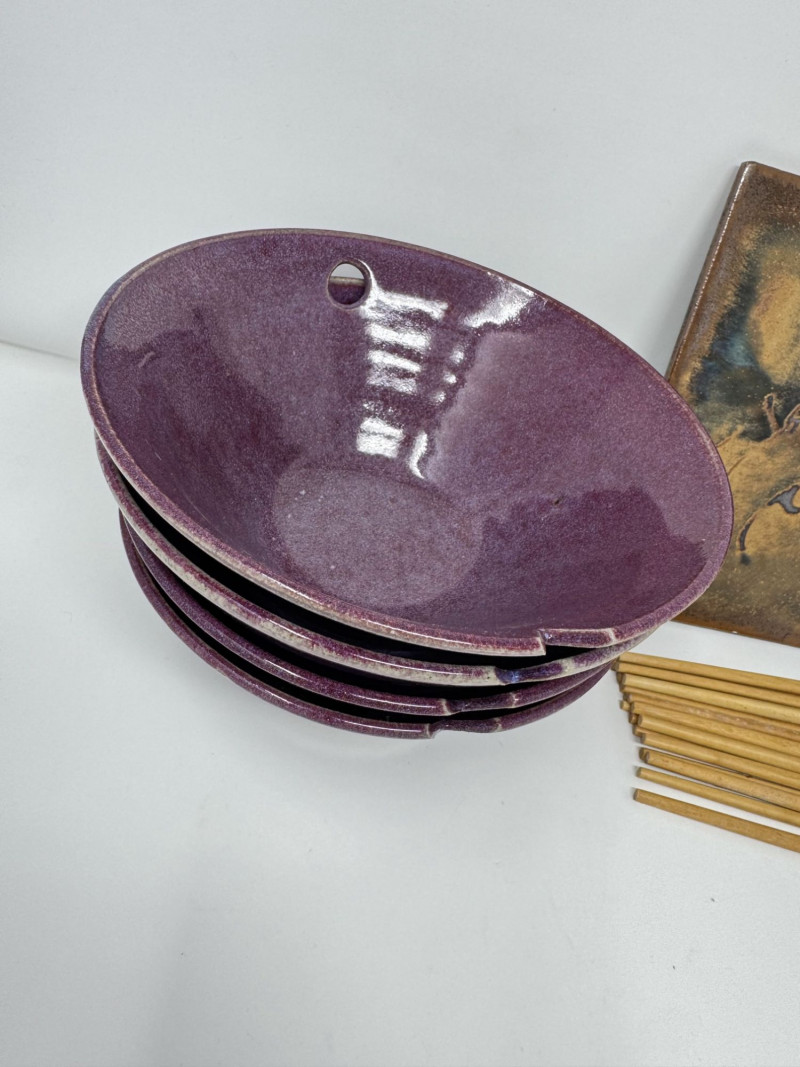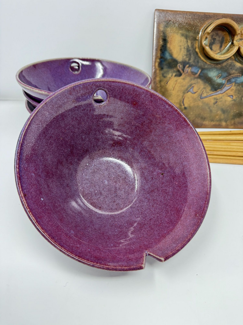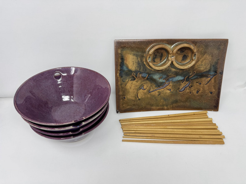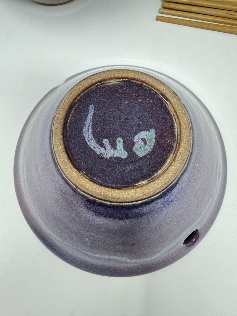 Lot # 109 - Studio Pottery Purple Bowls, Serving Plate & Chopsticks