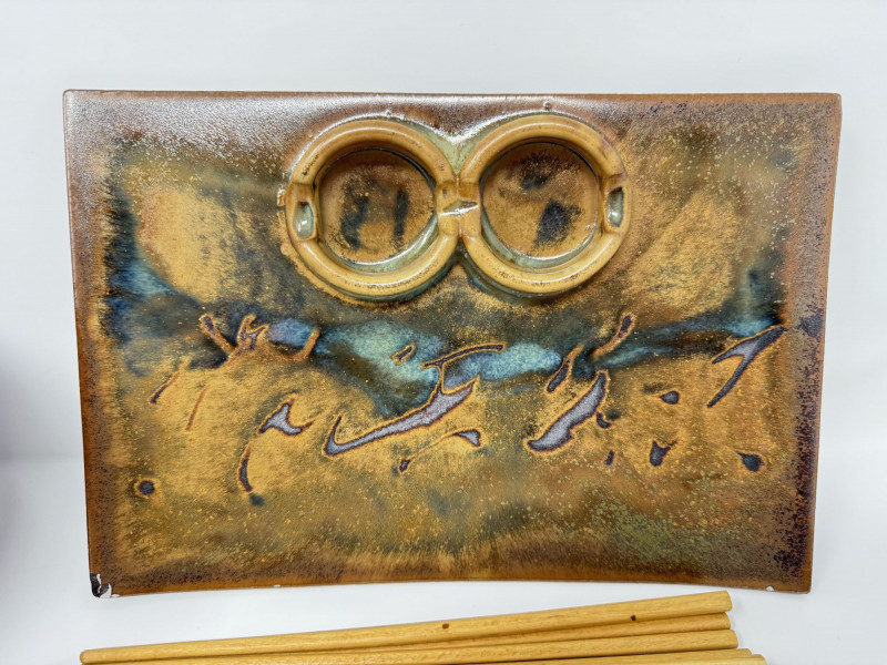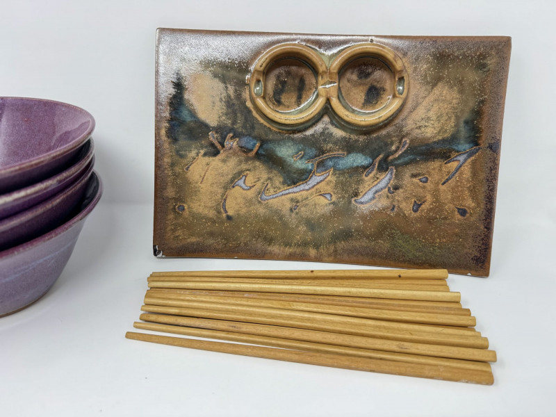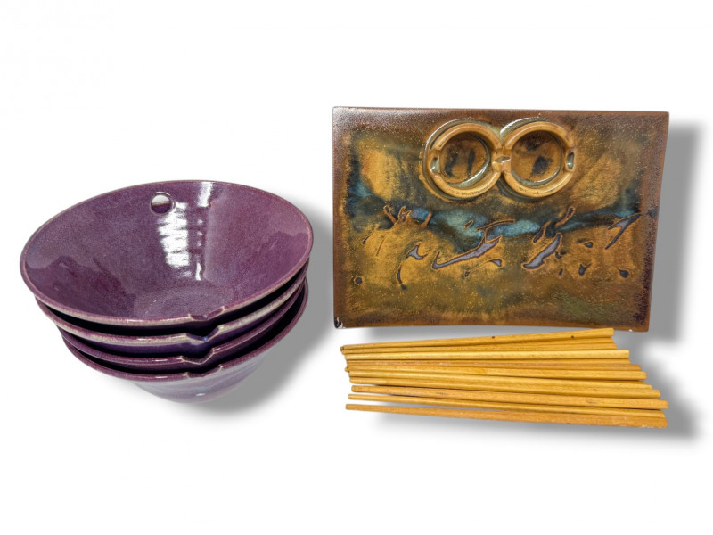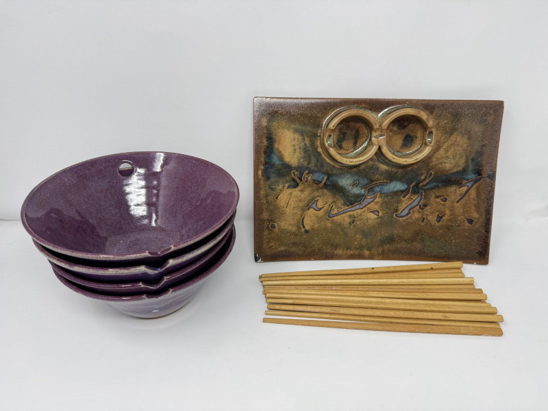 Studio Pottery Purple Bowls, Serving Plate & Chopsticks.
