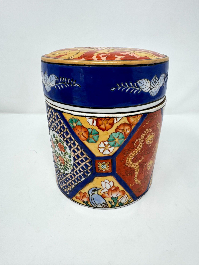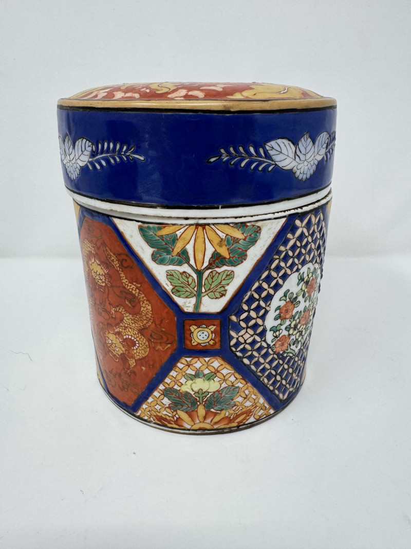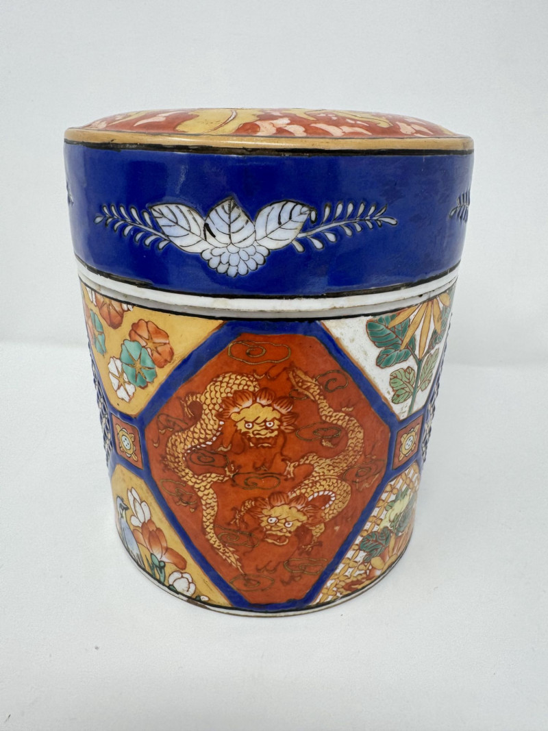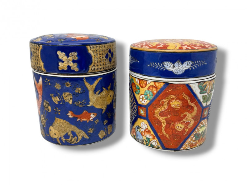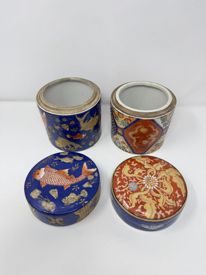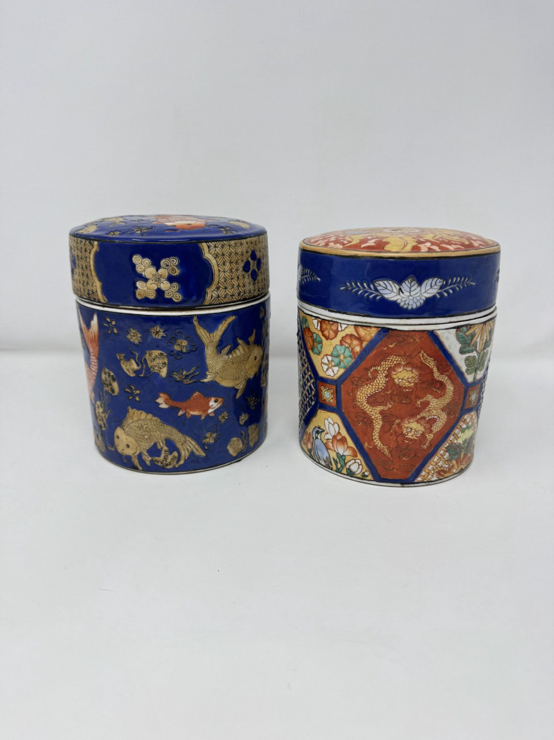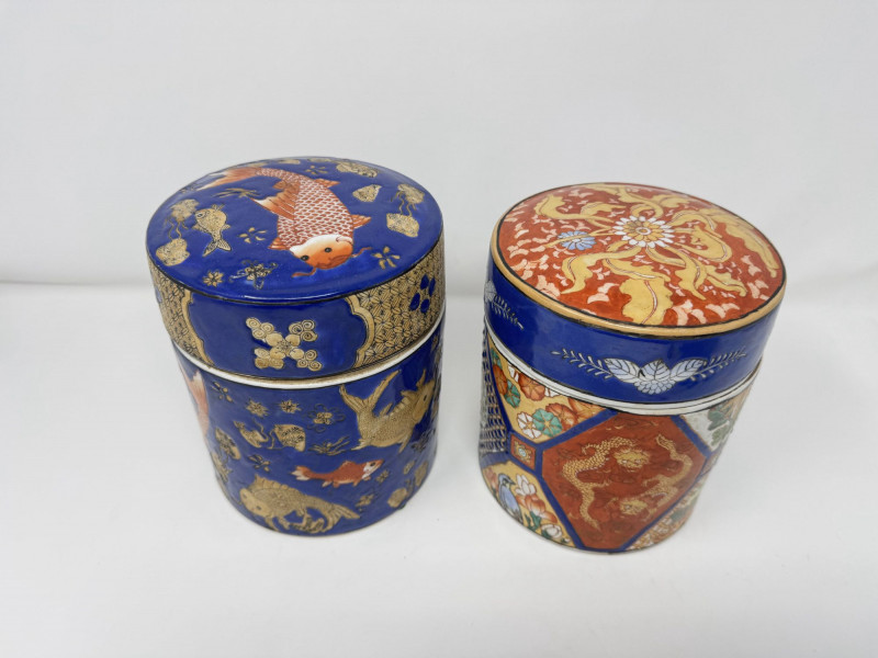 Lot # 110 - Ceramic Asian Lidded Jars w/ Fish, Floral, & Geometric Motifs
