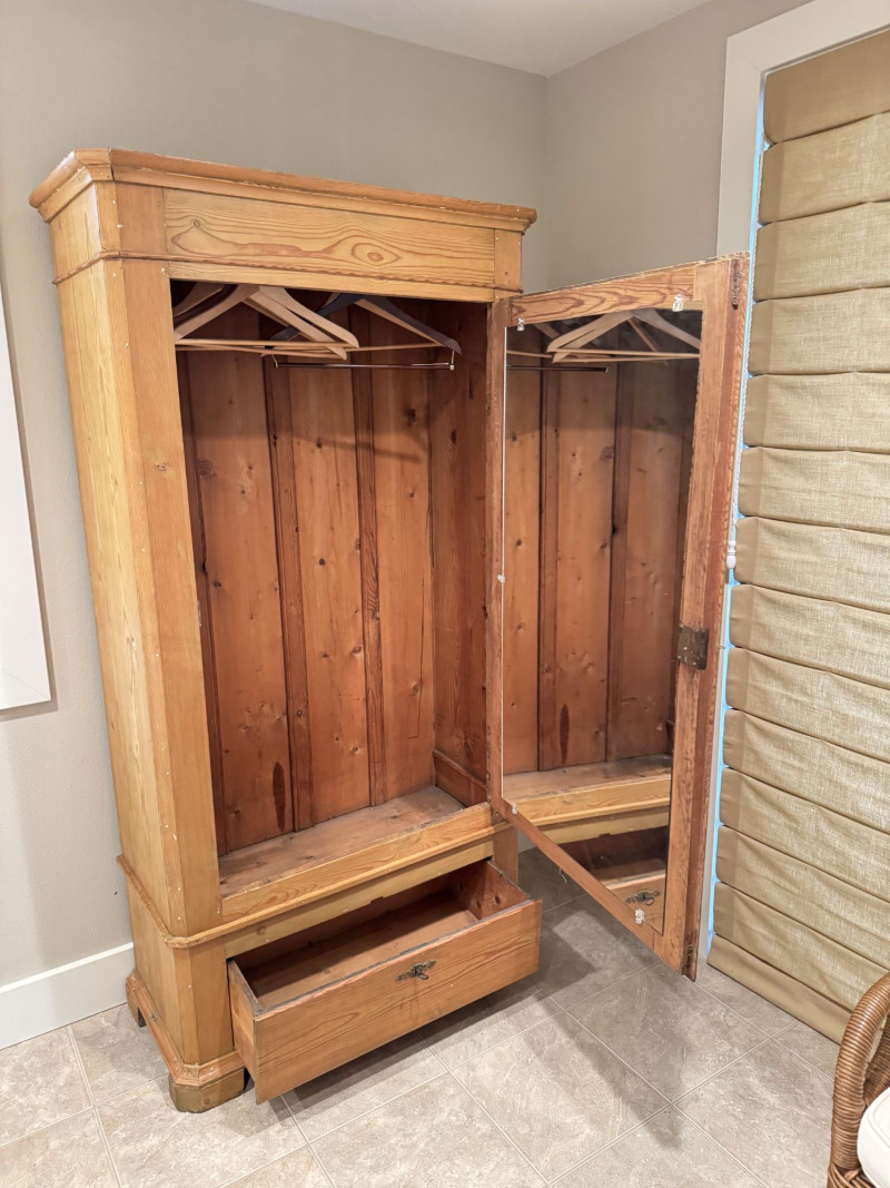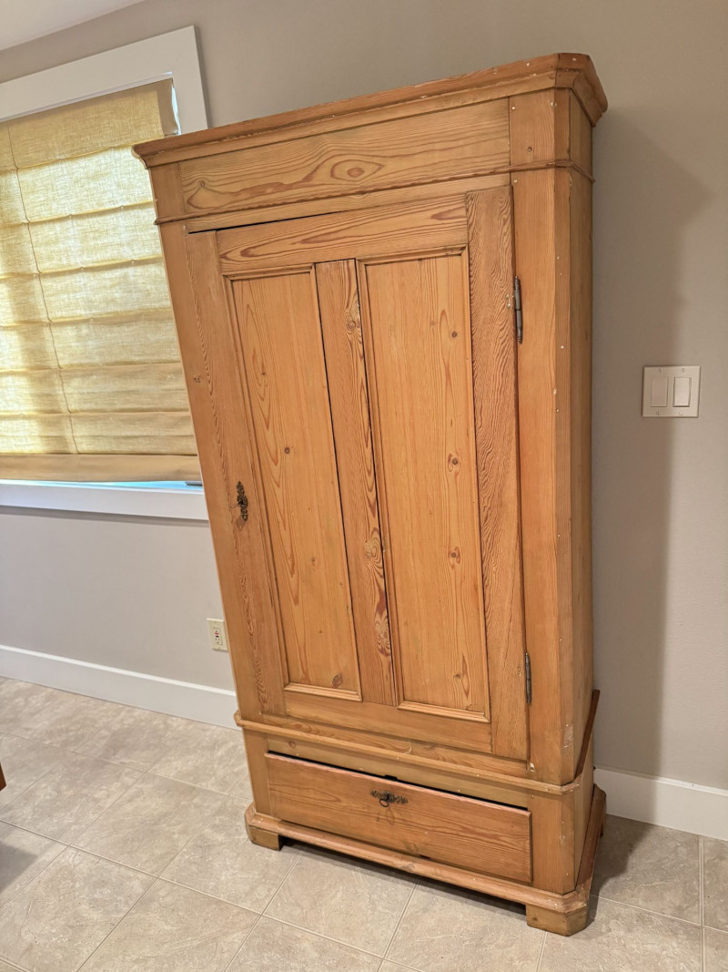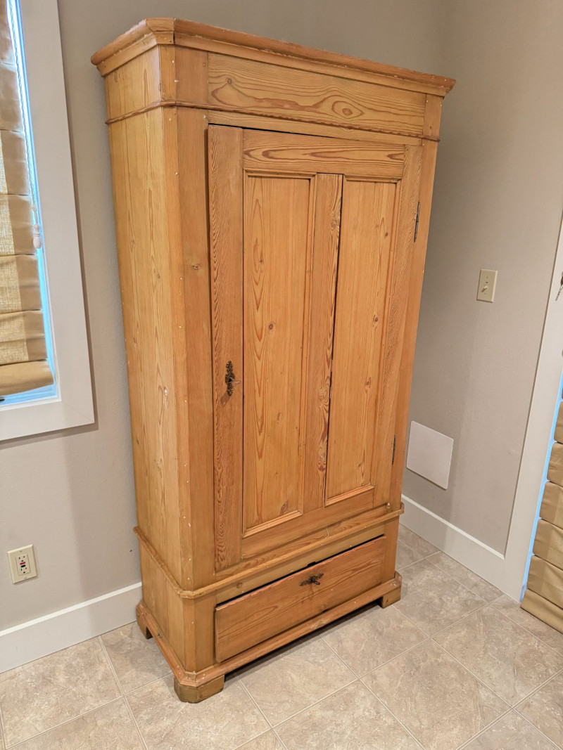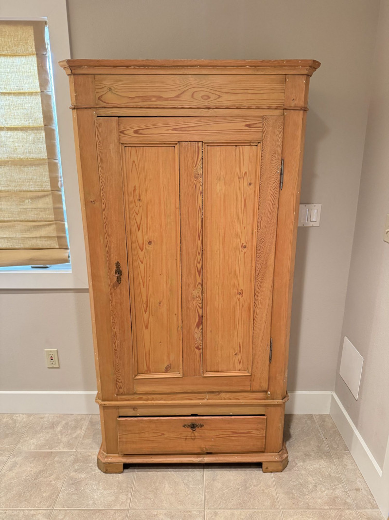 Lot # 127 - Antique Wood Wardrobe Cabinet w/ Drawer & Interior Pegs