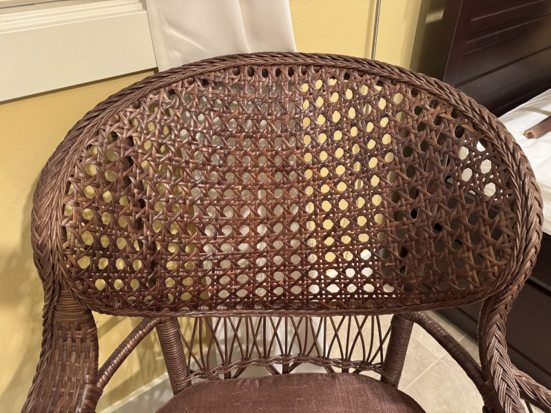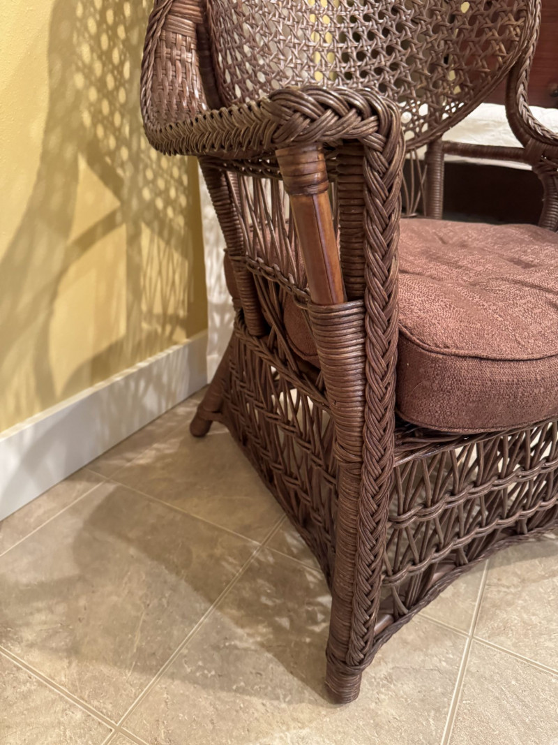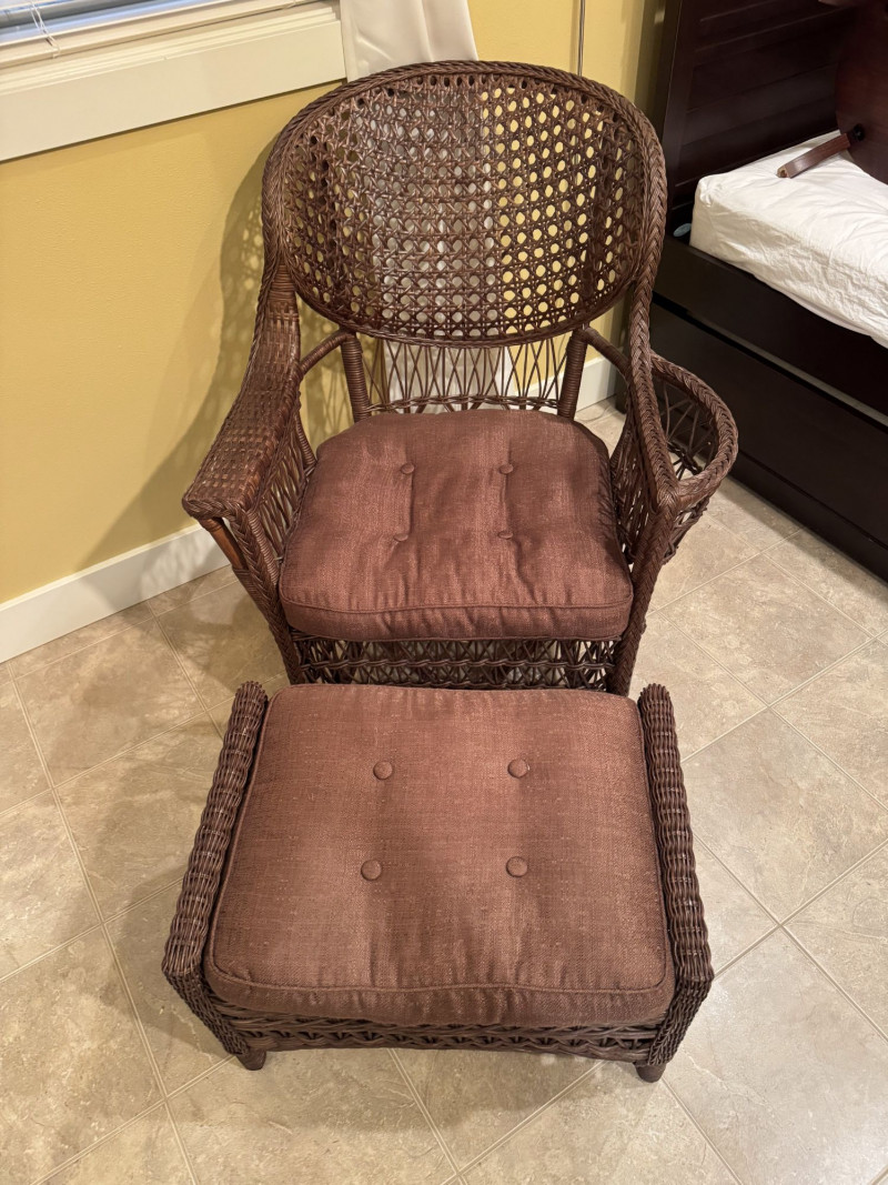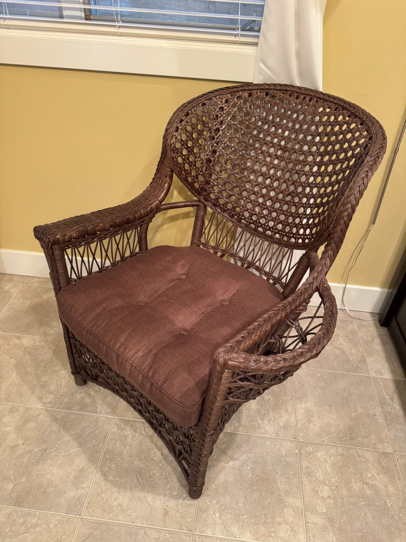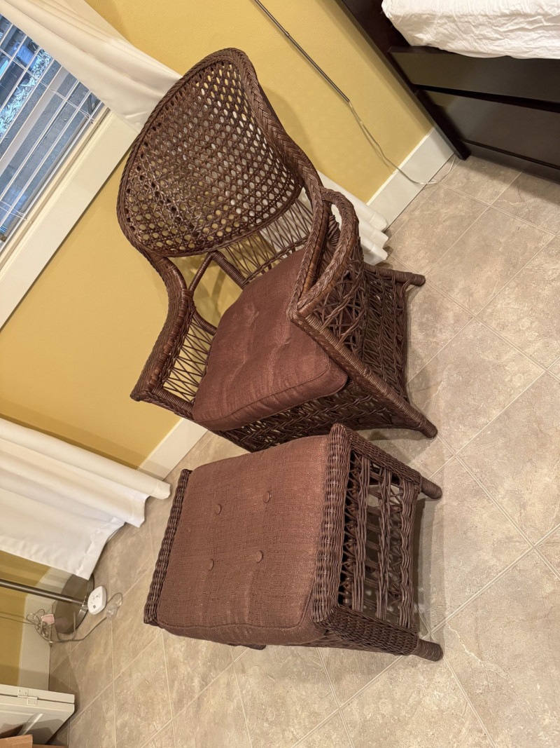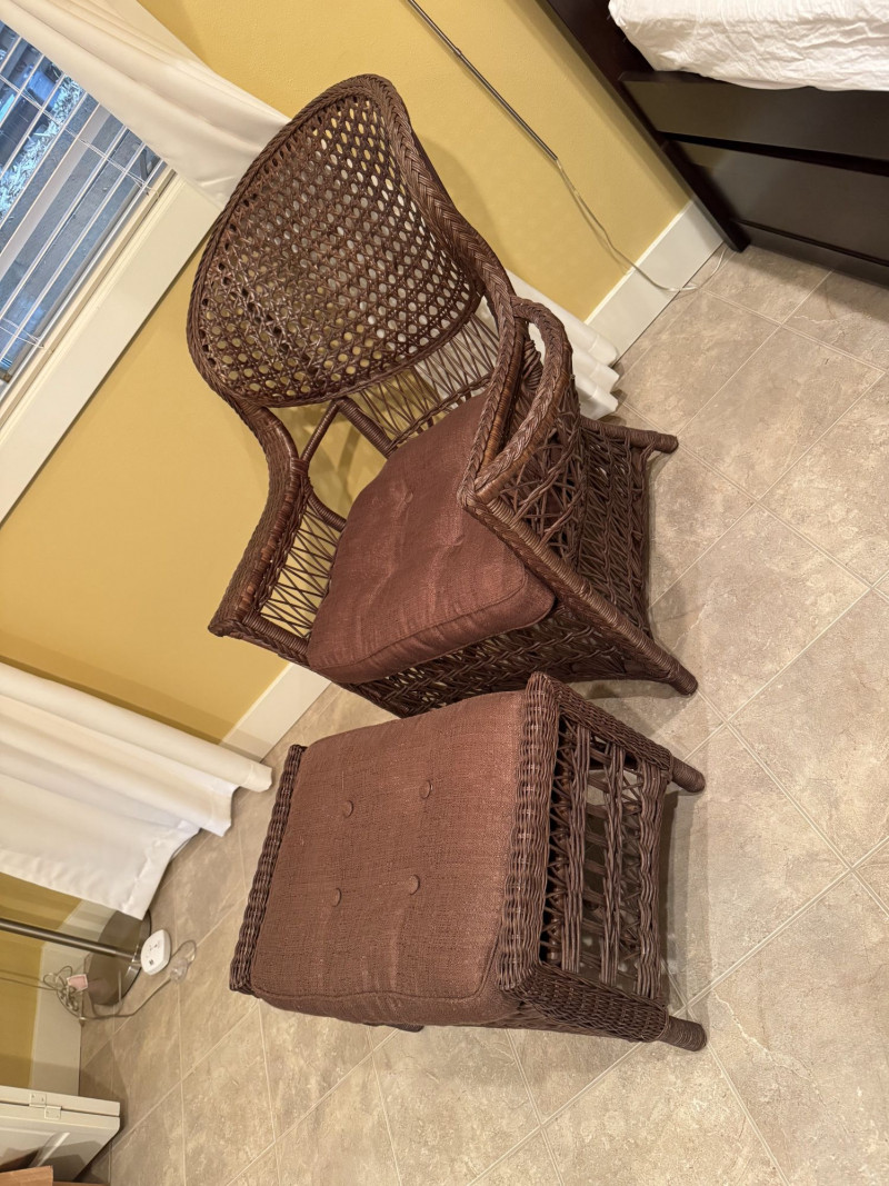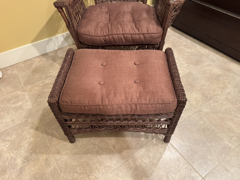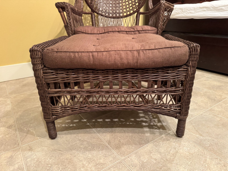 Pier 1 Imports Woven Rattan-Style Armchair w/ Matching Ottoman.