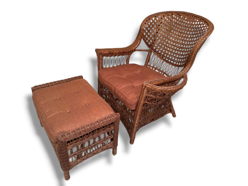 Lot # 132 - Pier 1 Imports Woven Rattan-Style Armchair w/ Matching Ottoman