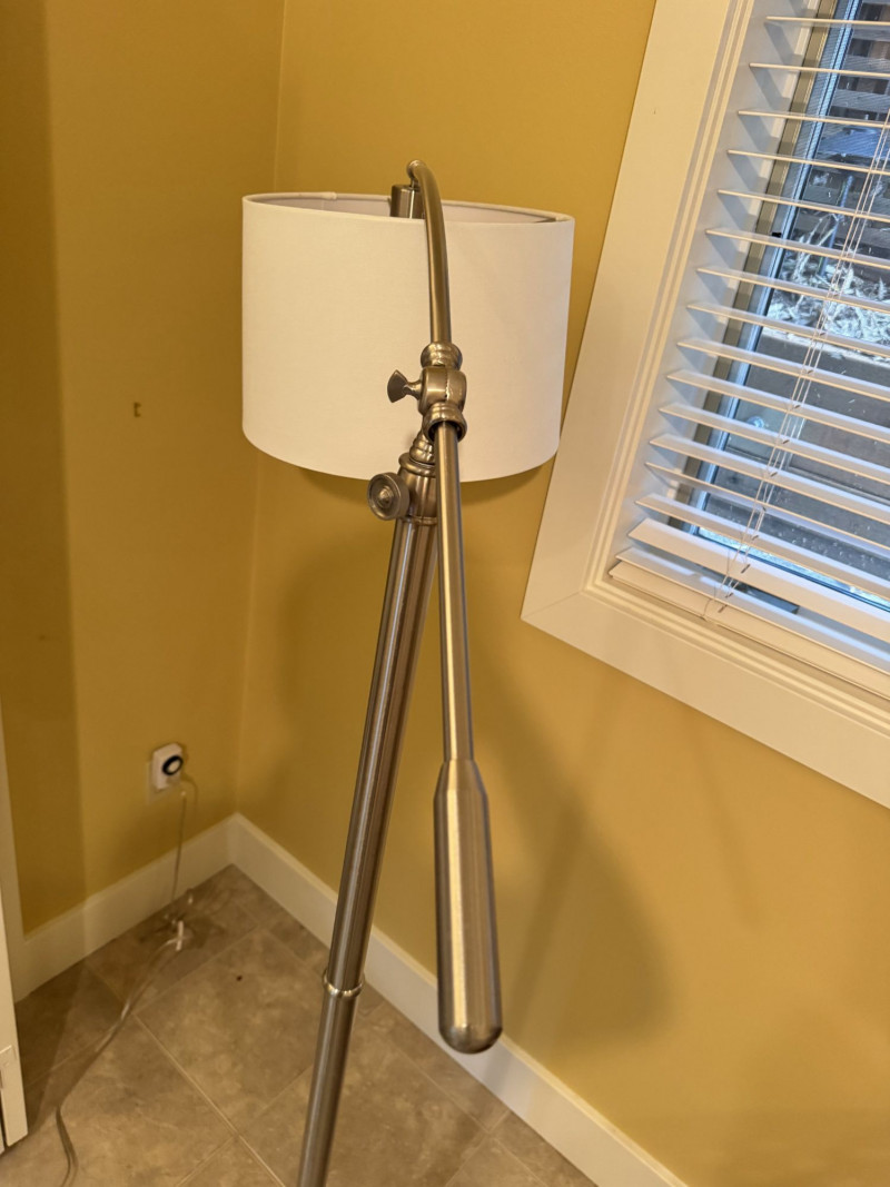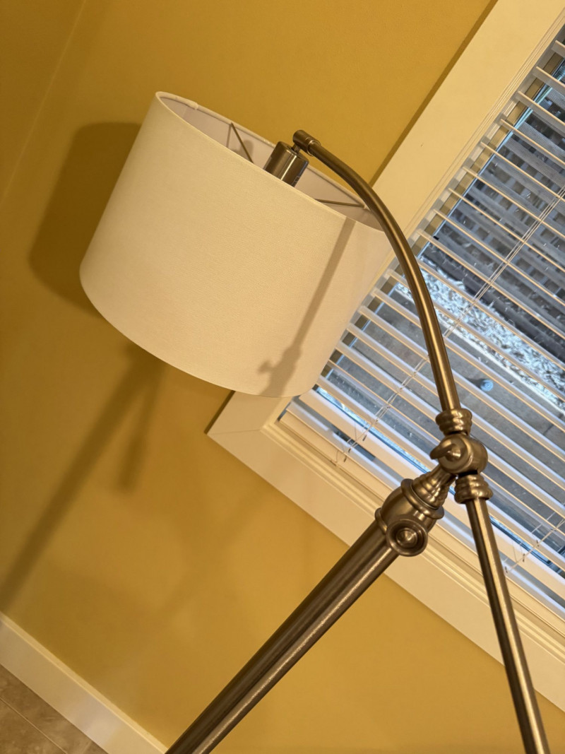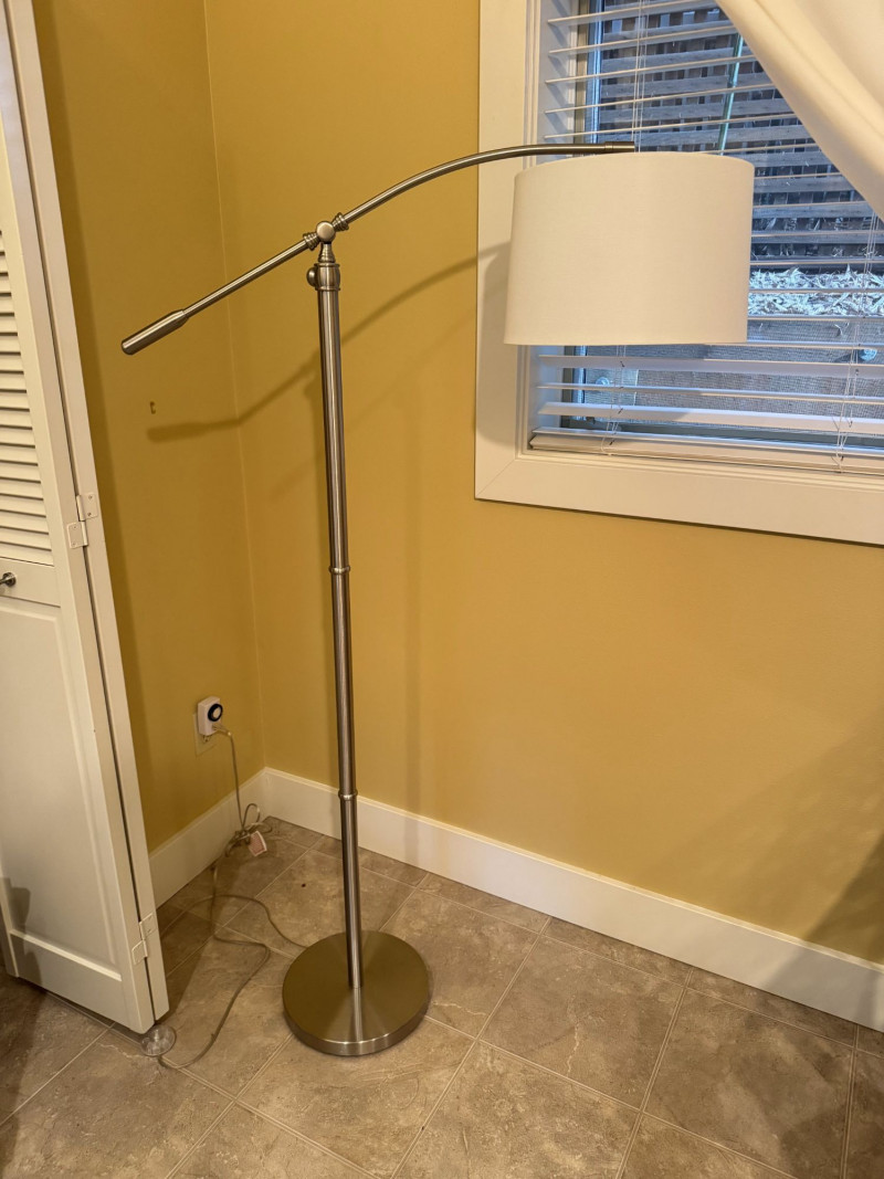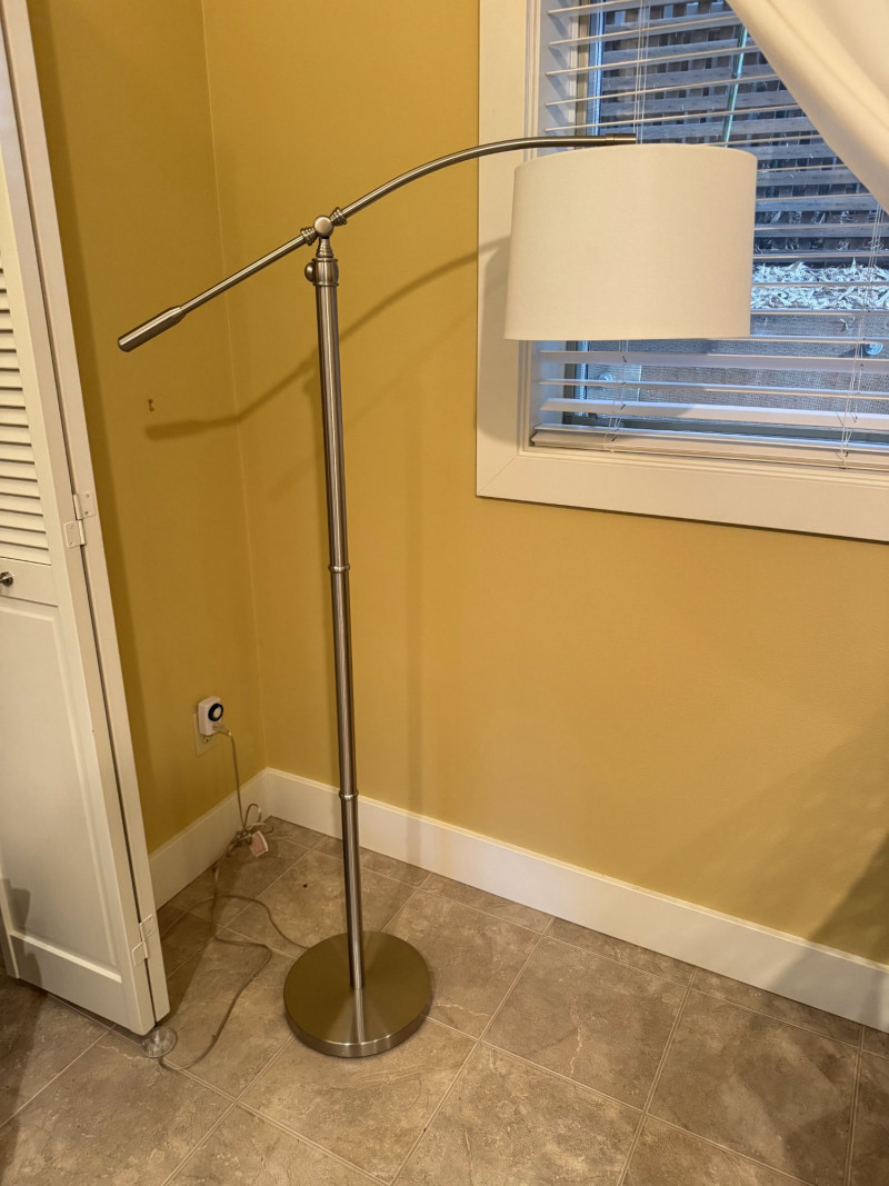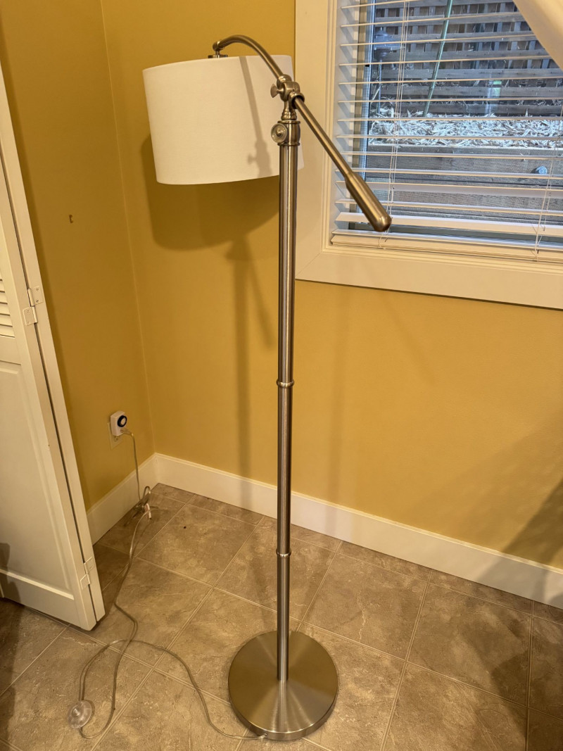 Adjustable Metal Floor Lamp w/ Swing Arm & Drum Shade.