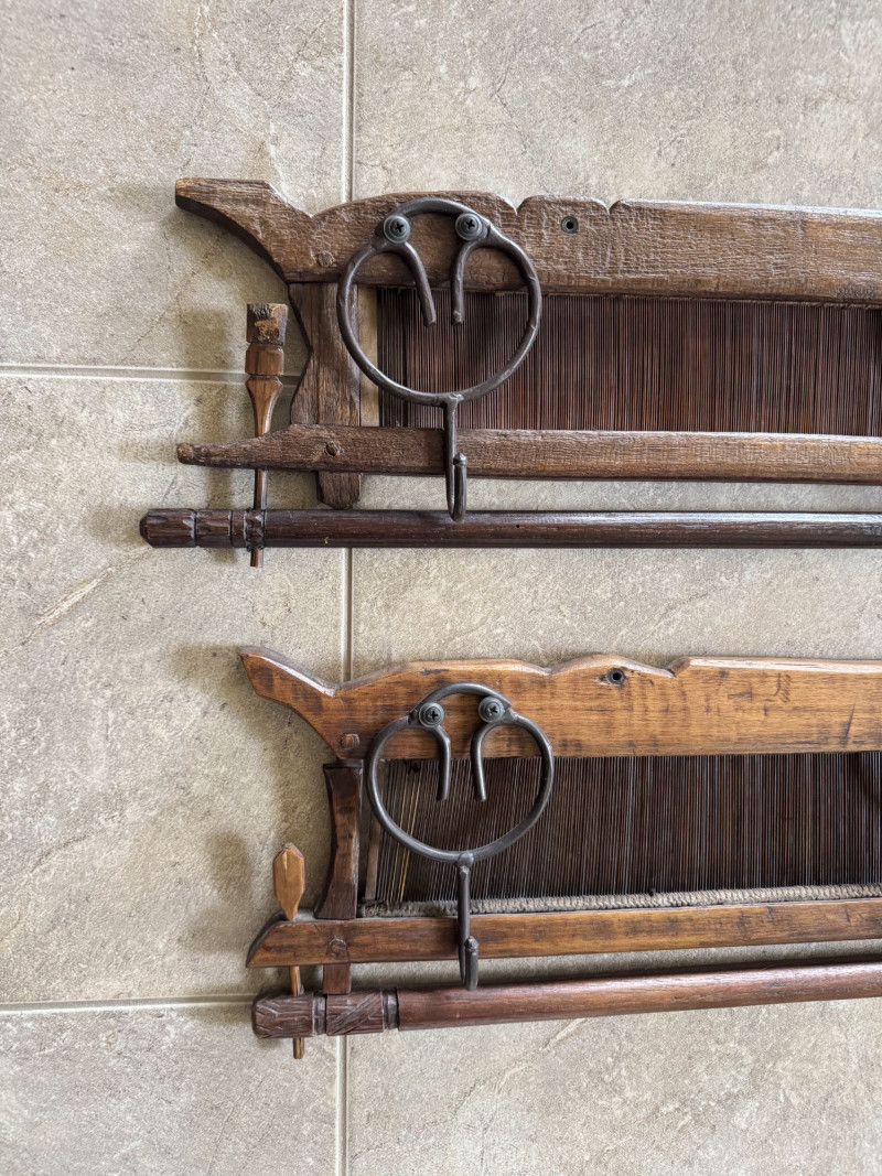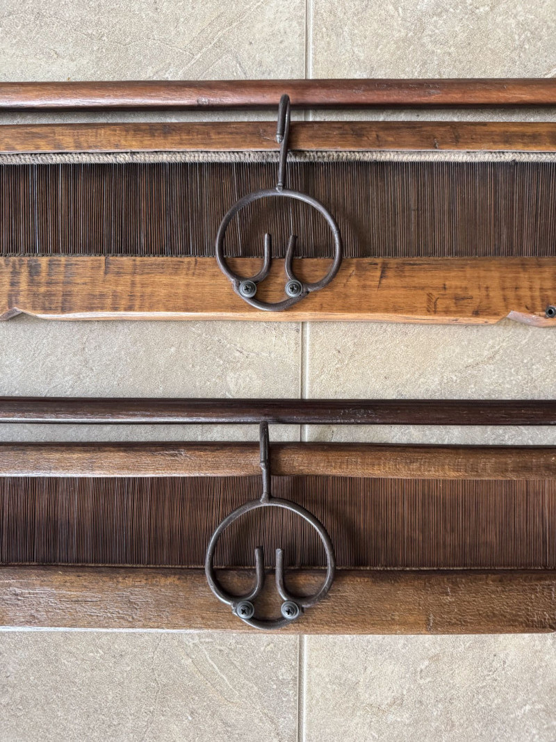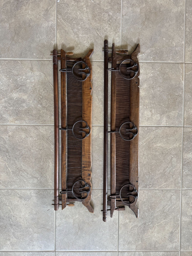 Rustic Wood & Bamboo Wall Coat Racks w/ Woven Detail.