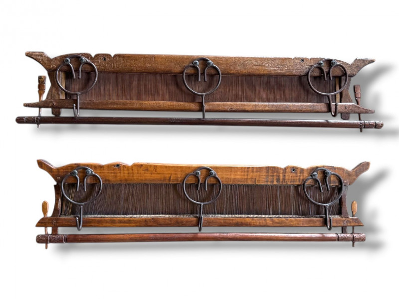 Lot # 134 - Rustic Wood & Bamboo Wall Coat Racks w/ Woven Detail