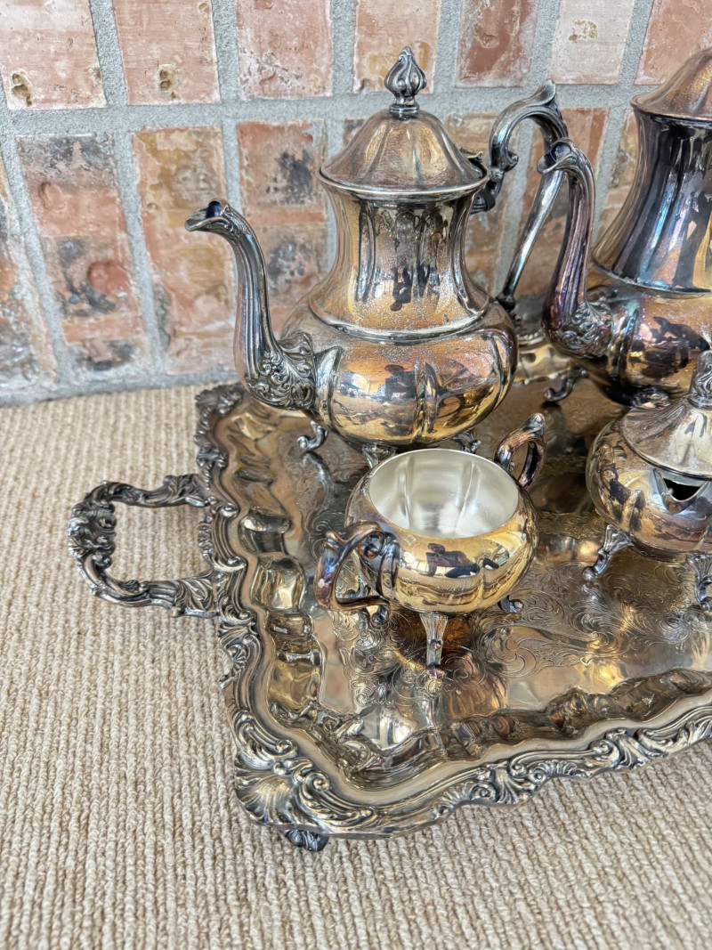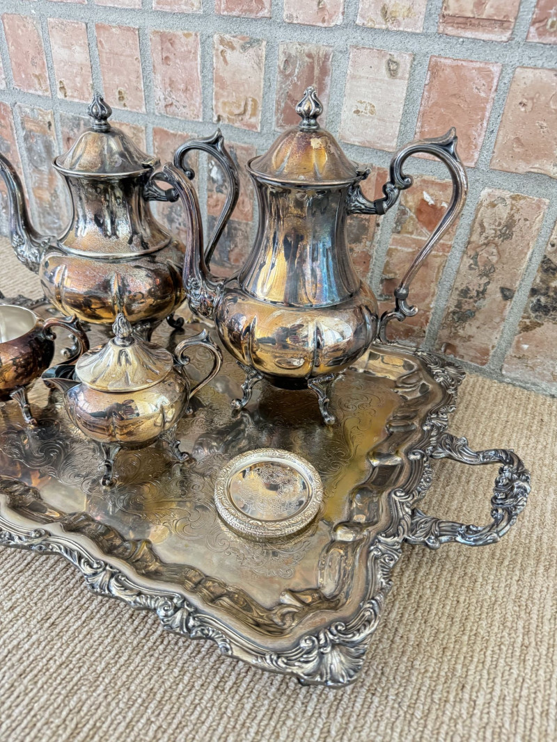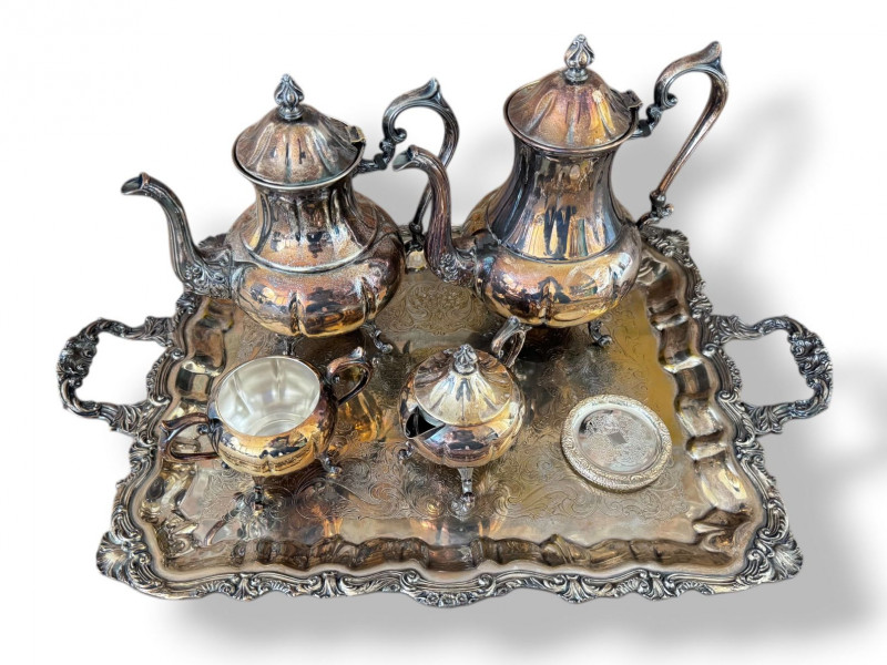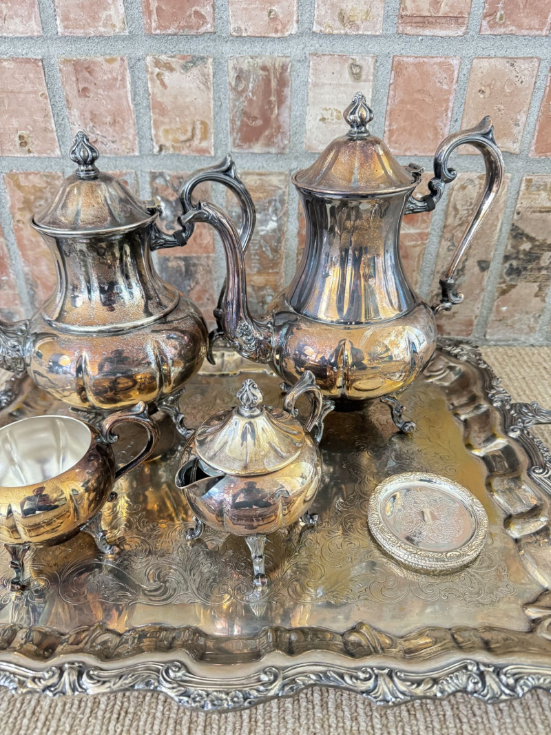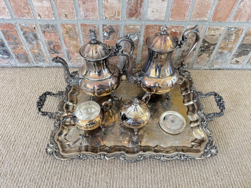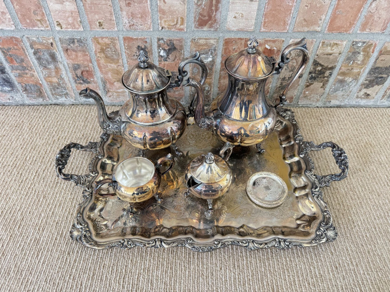 Silverplate Tea & Coffee Service w/ Large Serving Tray & Accessories.
