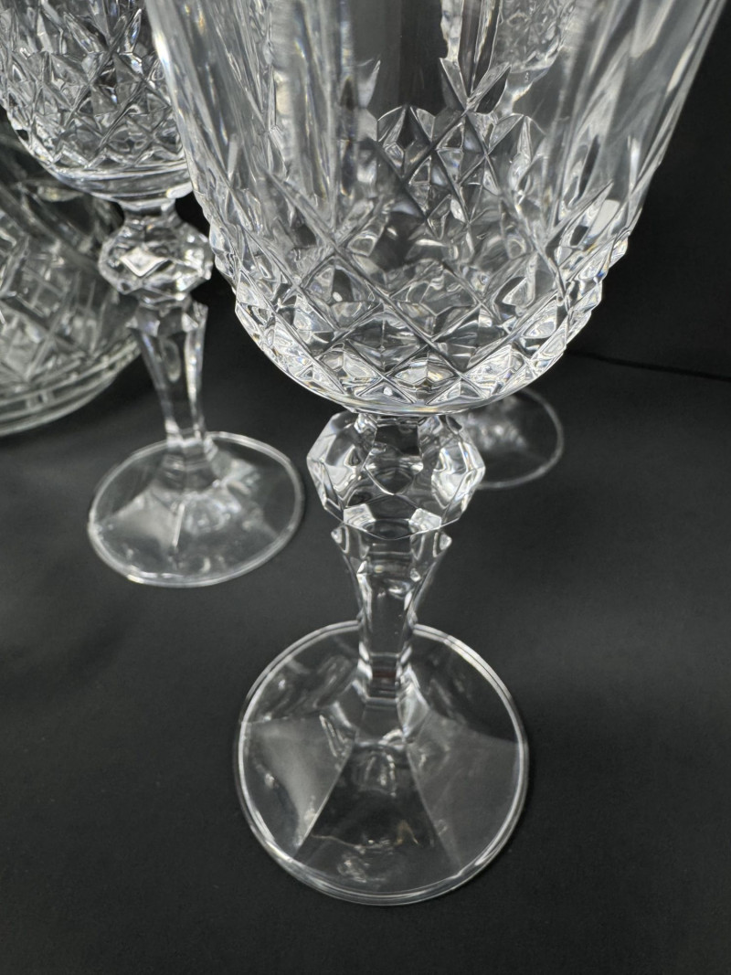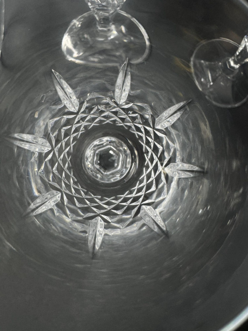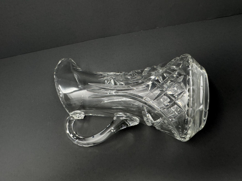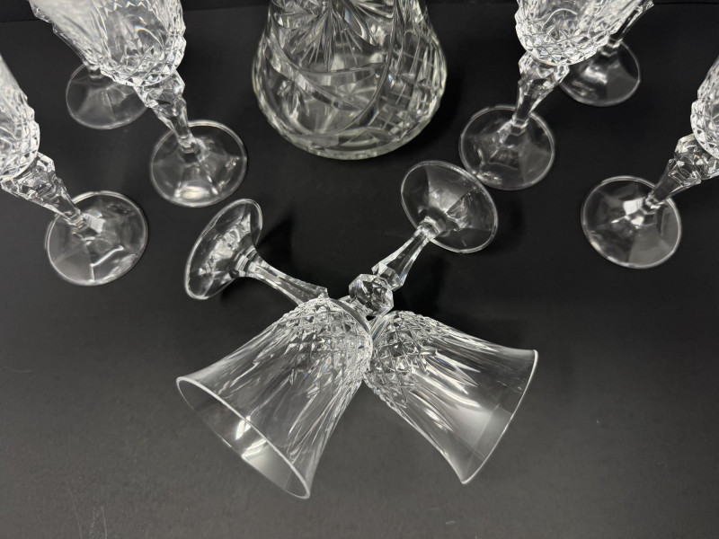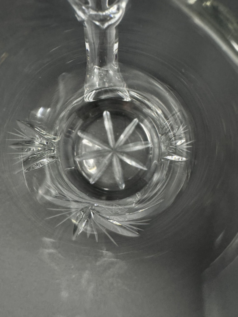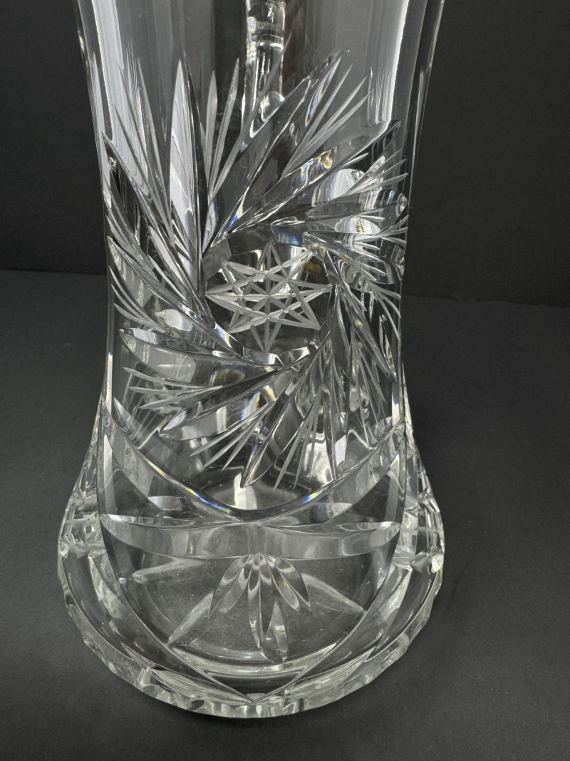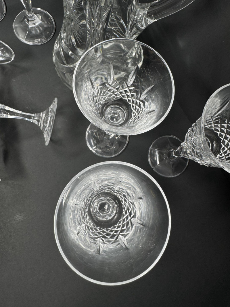 Cut Crystal Pitcher & 8 Stemmed Glasses Set - Starburst Pattern.