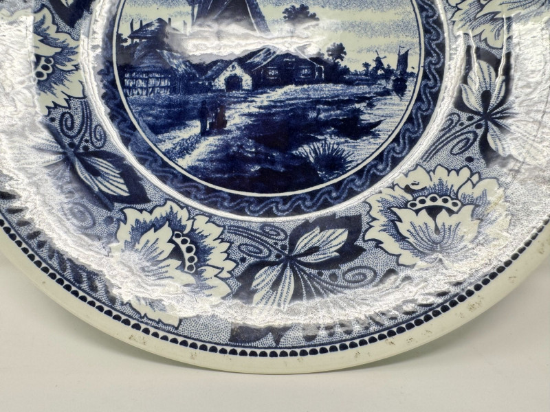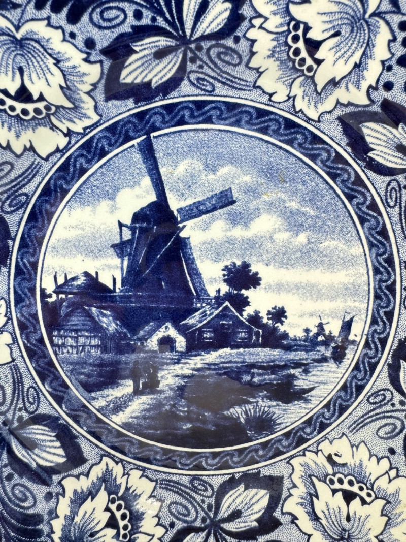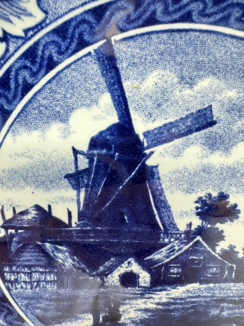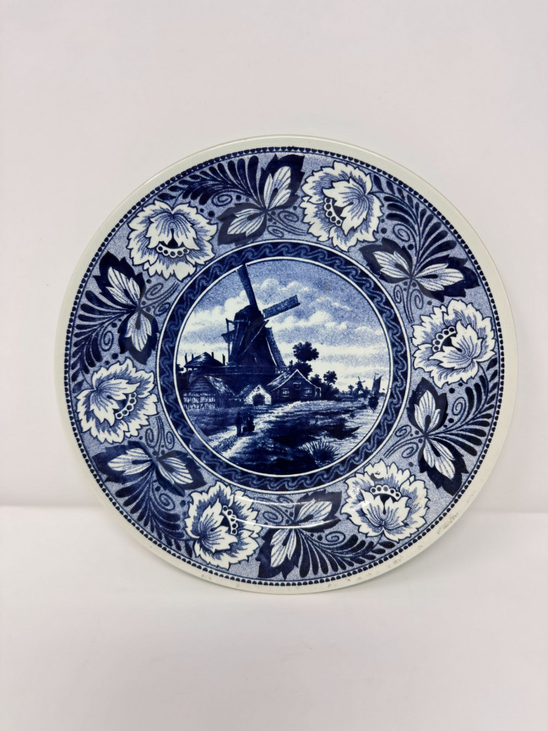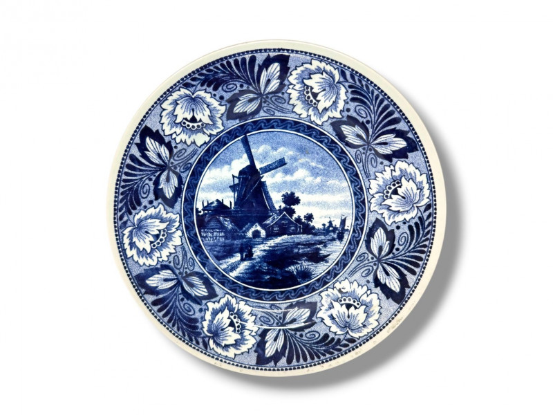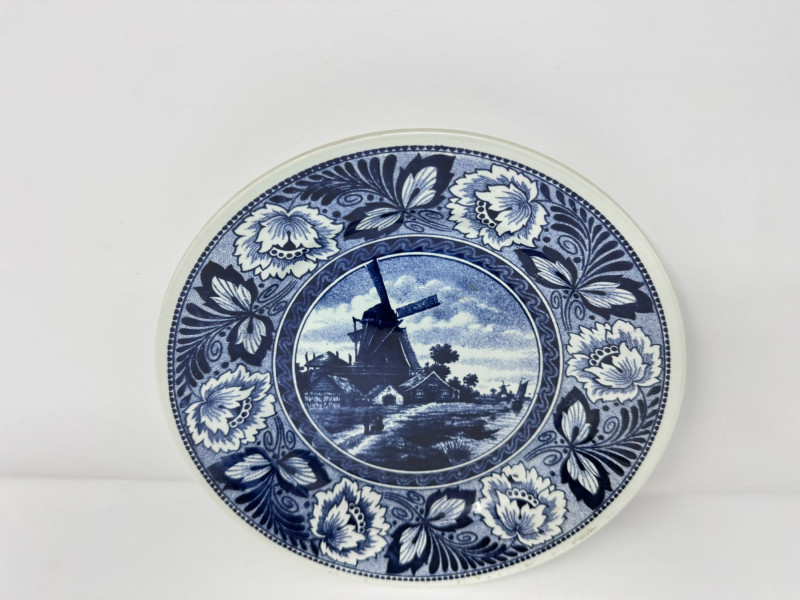 Delft Blue Village Windmill Decorative Hanging Plate.