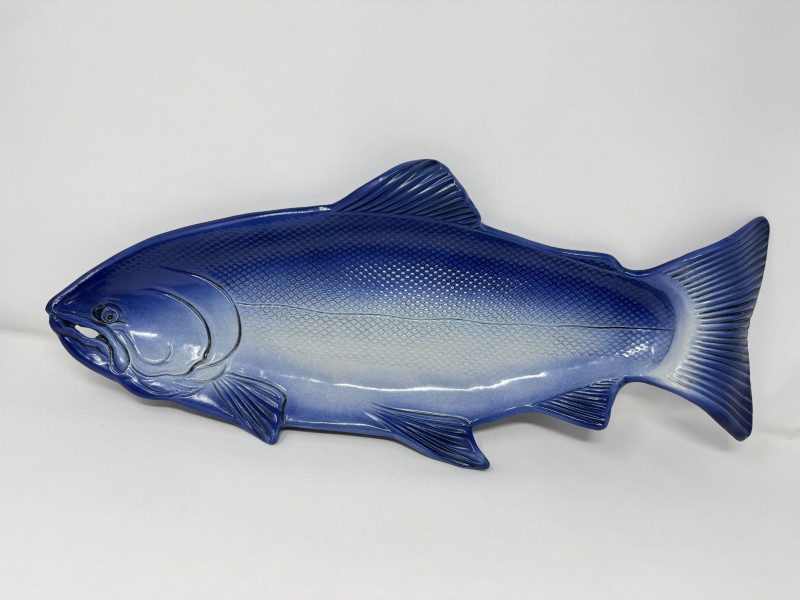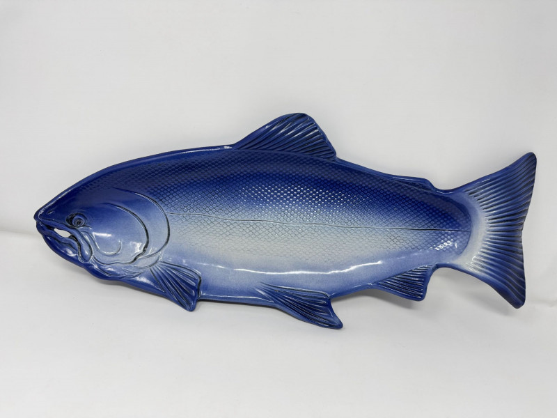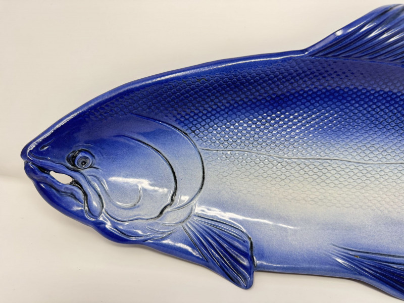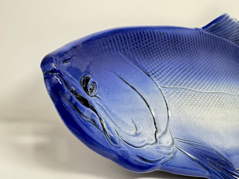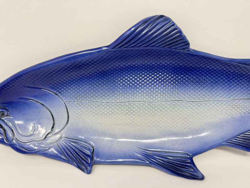 Lot # 159 - Large Blue Ceramic Fish Platter - Signed Caralyn