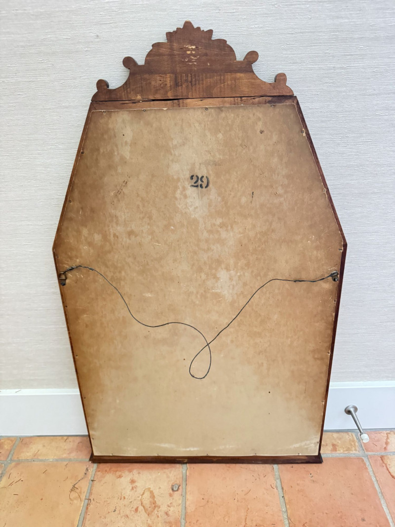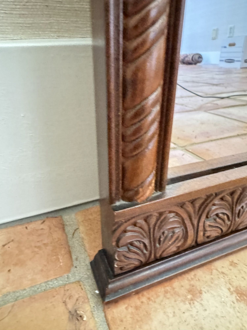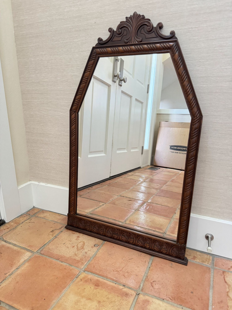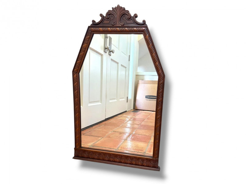 Lot # 160 - Vintage Ornate Carved Wood Wall Mirror w/ Decorative Crest Top Frame