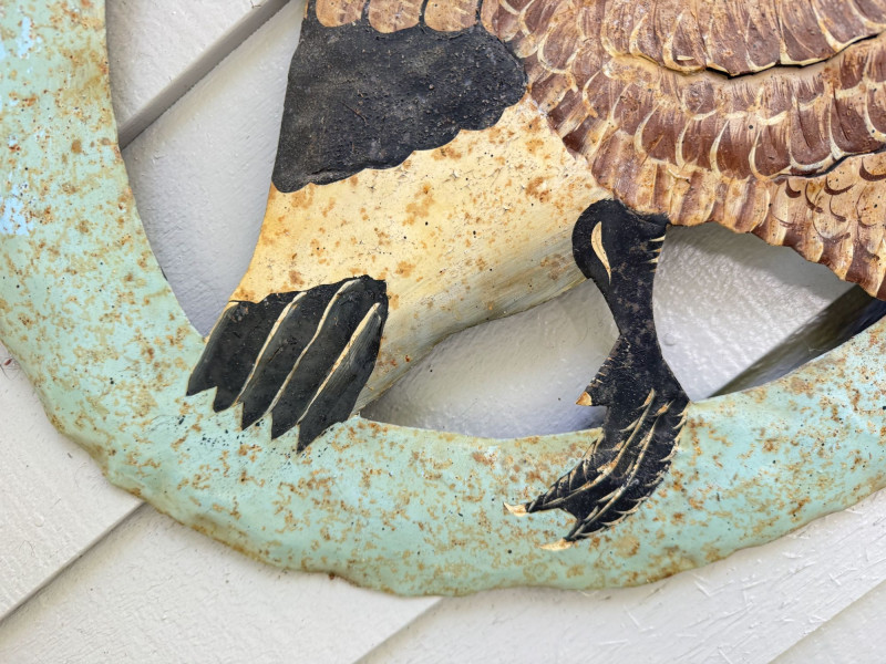 Vintage Style Metal Goose Wall Sculpture - Signed.