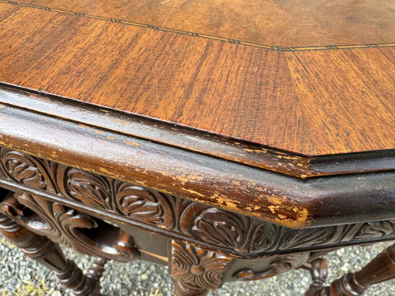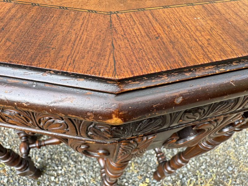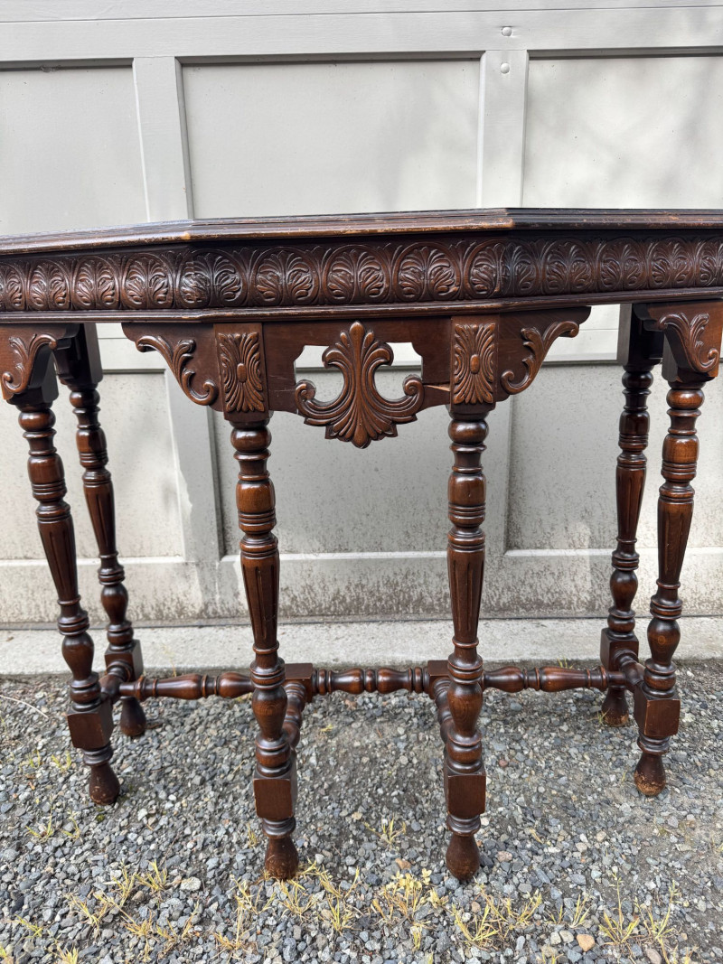 Lot # 176 - Antique Carved Wood Side Table w/ Turned Legs & Decorative Apron