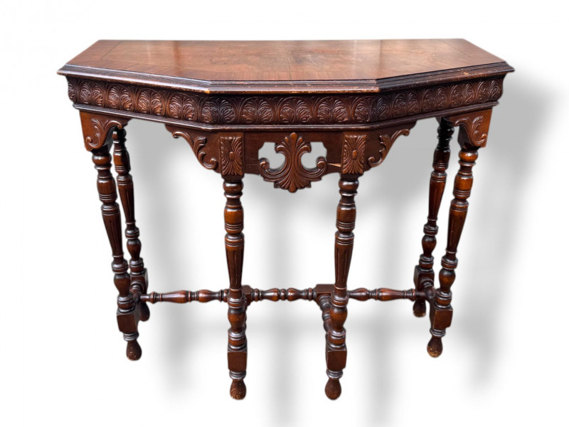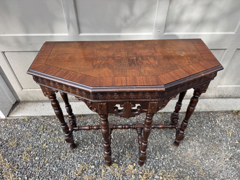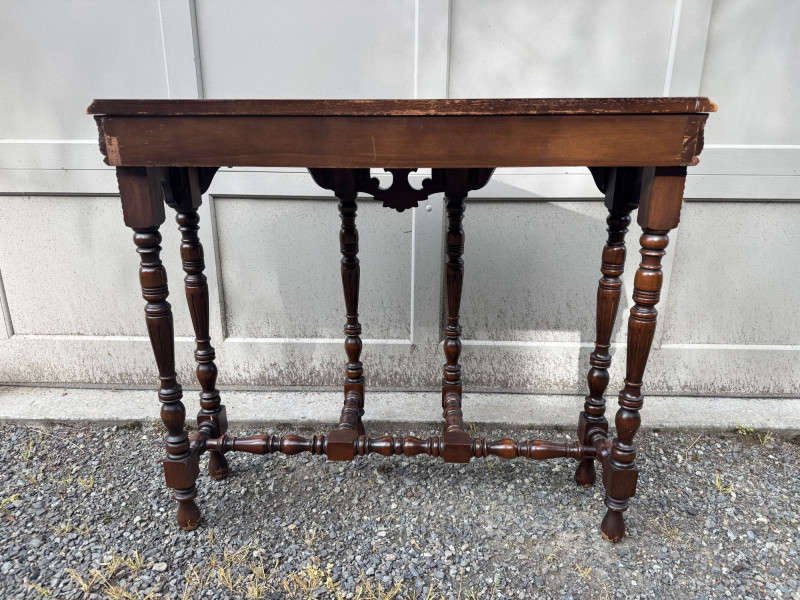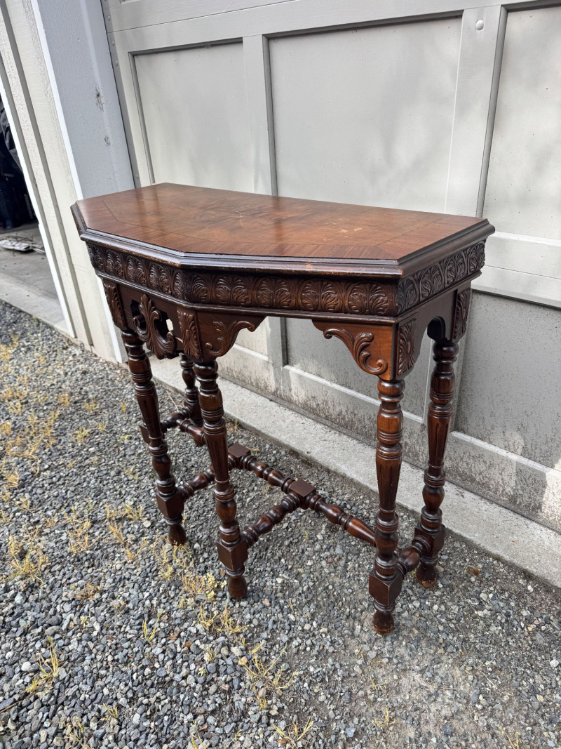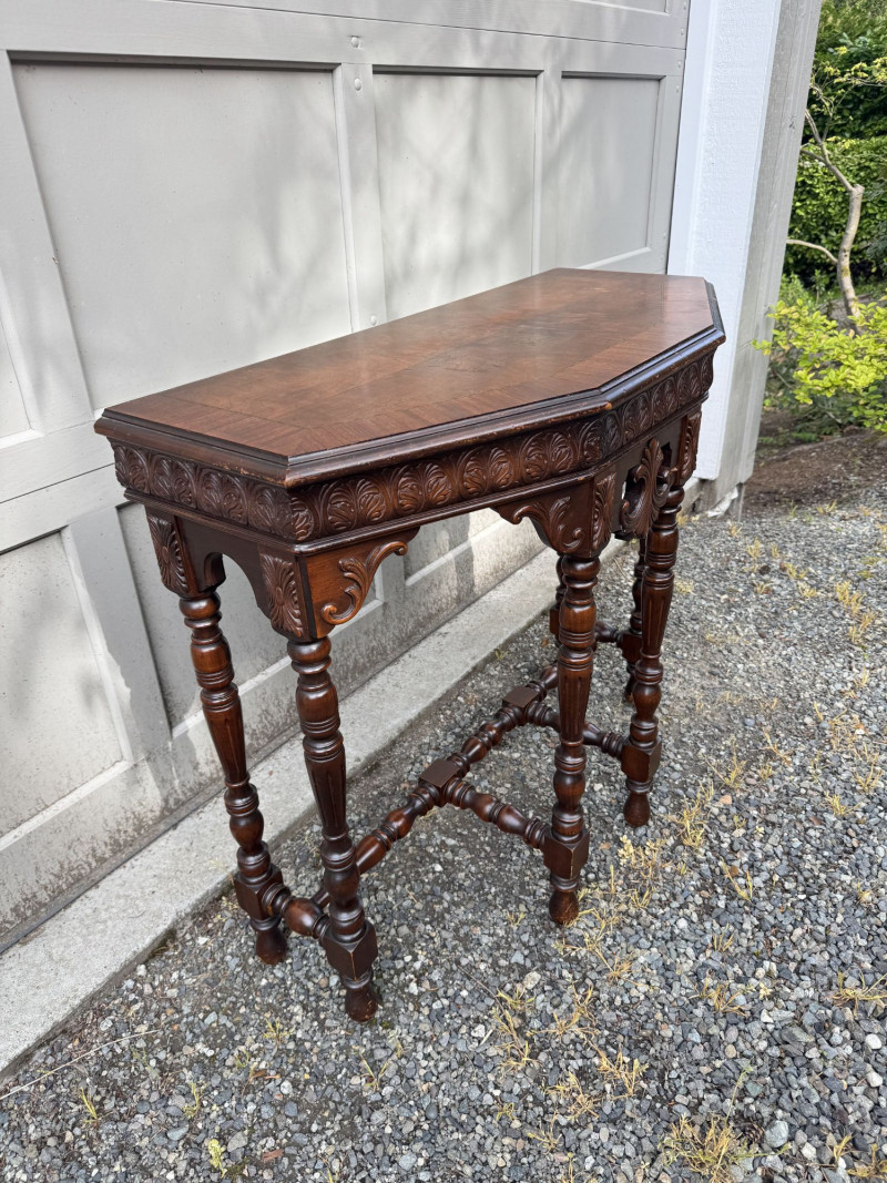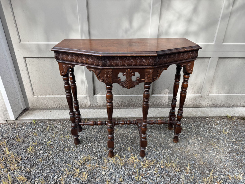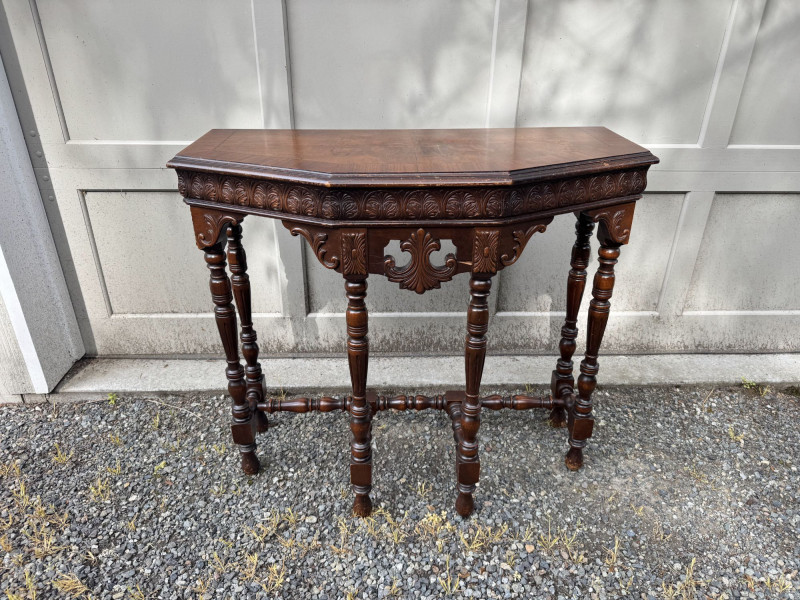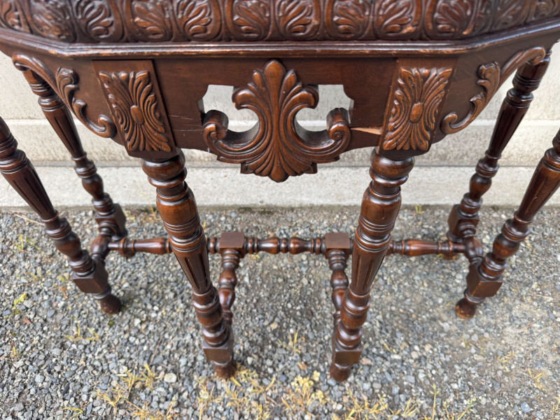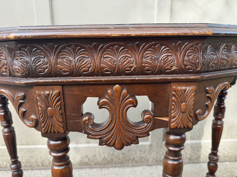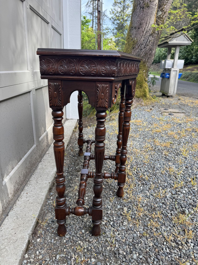 Antique Carved Wood Side Table w/ Turned Legs & Decorative Apron.