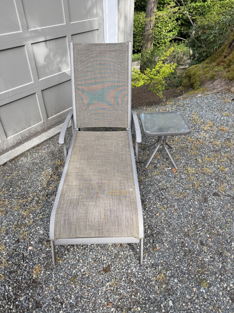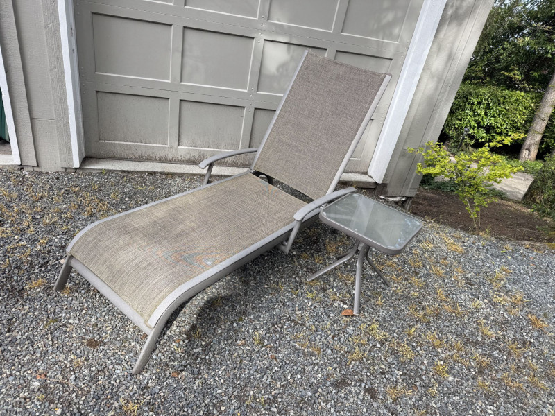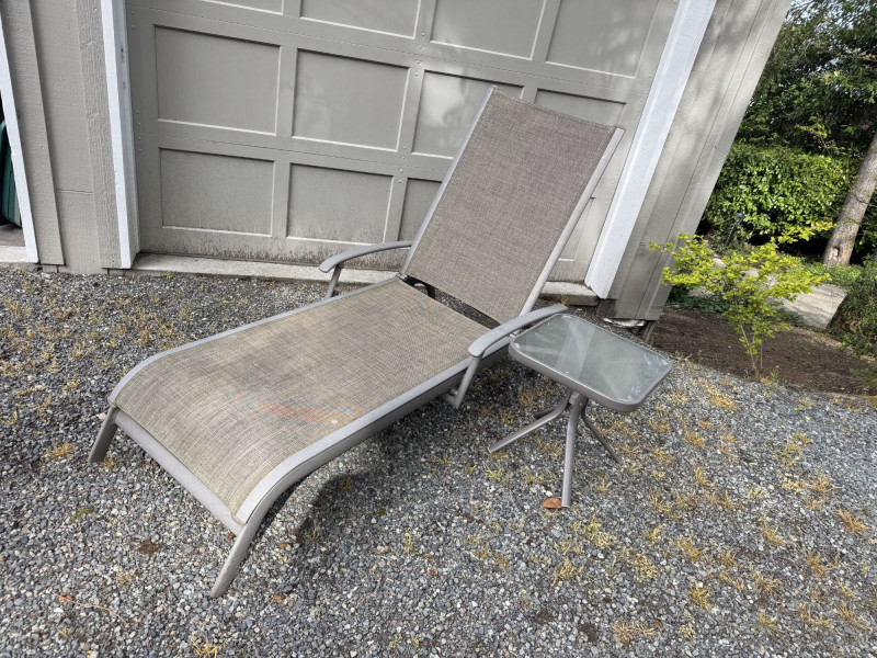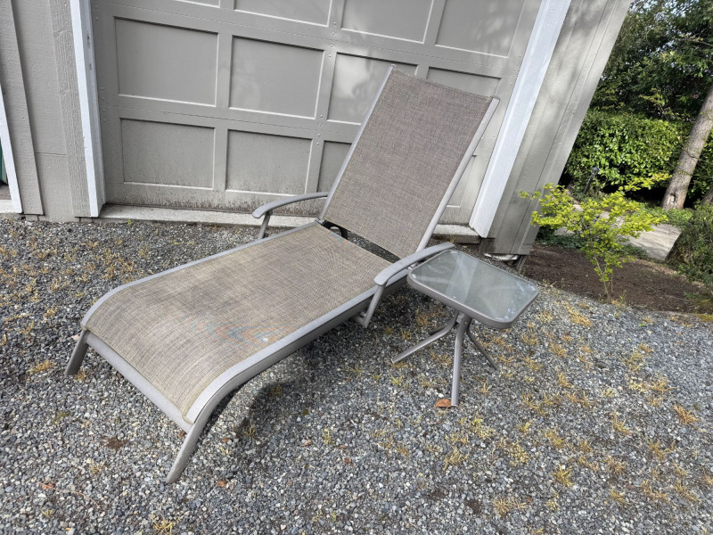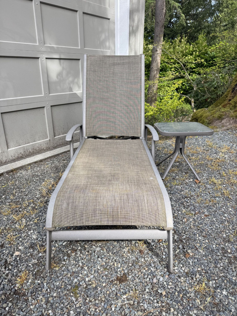 Sunbrella Outdoor Chaise Lounge w/ Adjustable Back & Side Table.