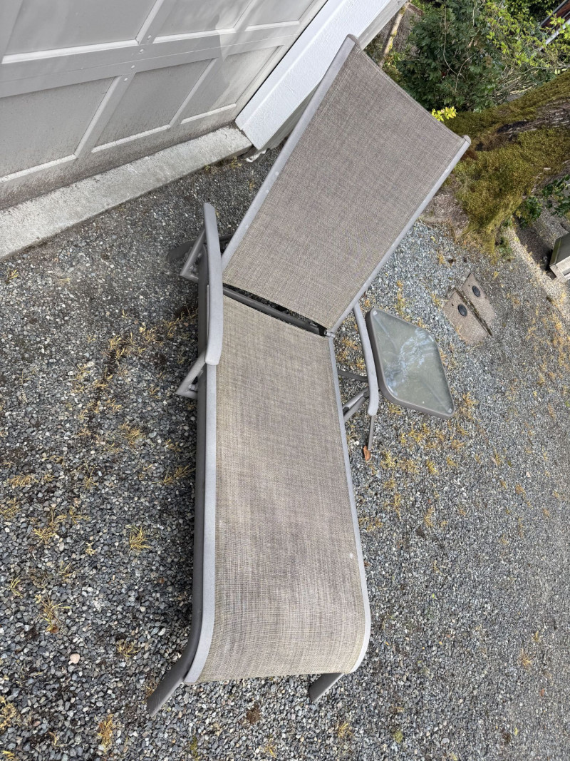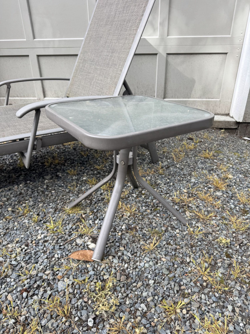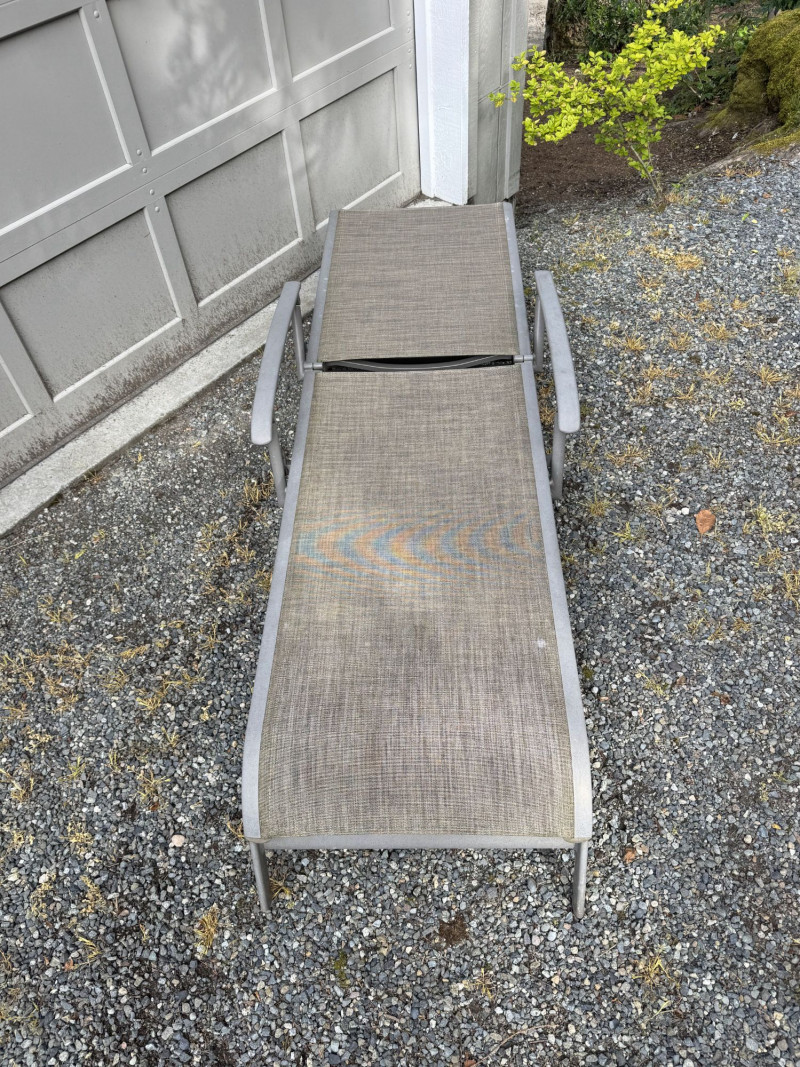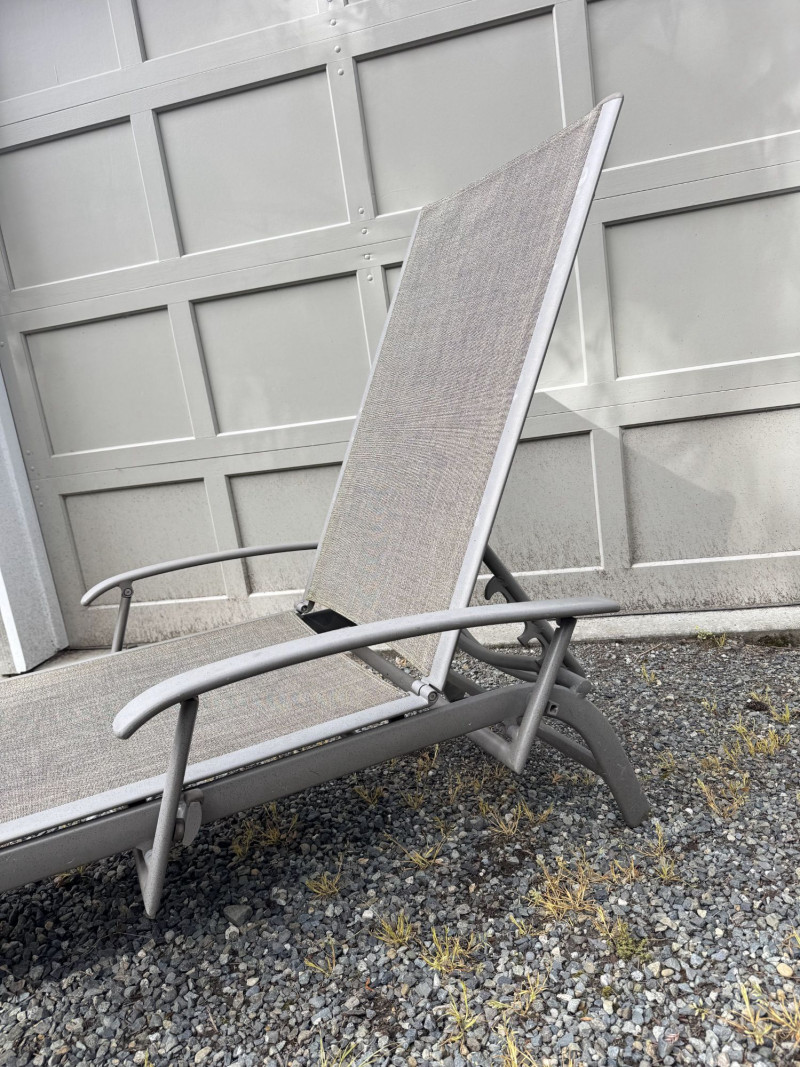 Sunbrella Outdoor Chaise Lounge w/ Adjustable Back & Side Table.
