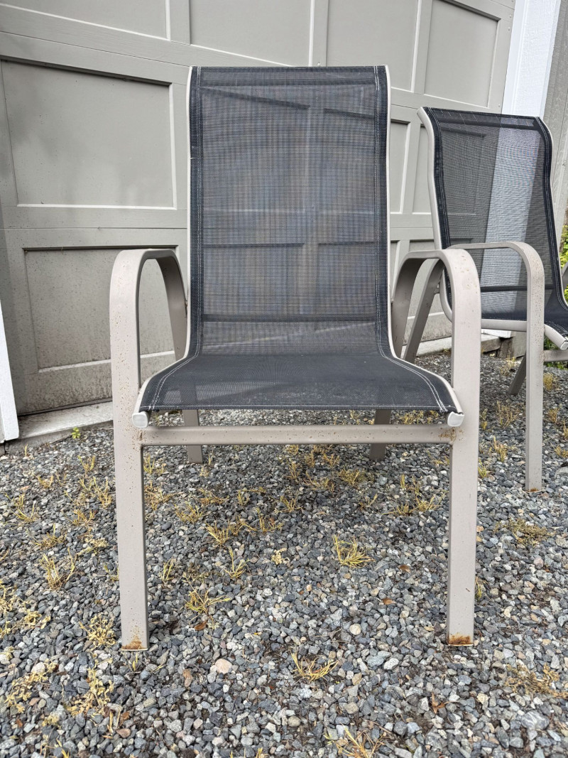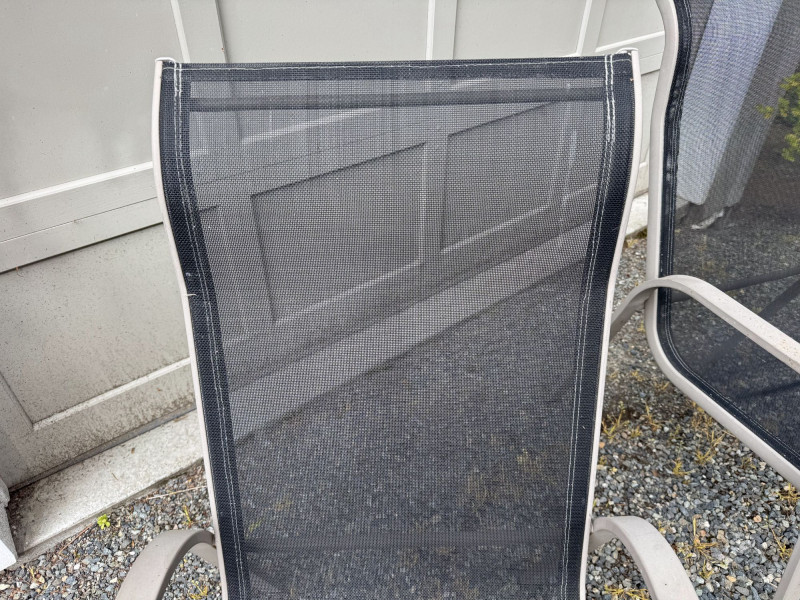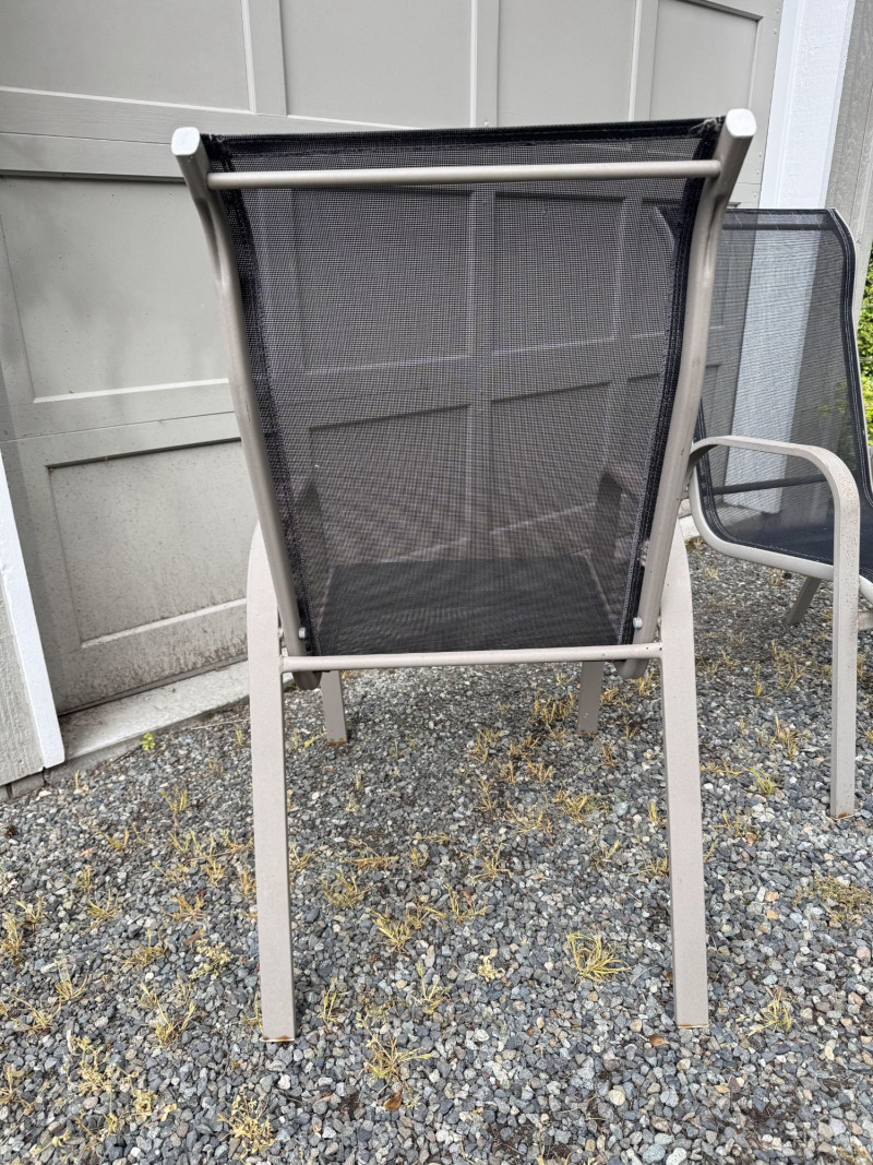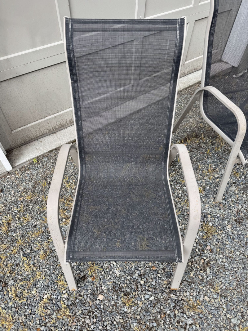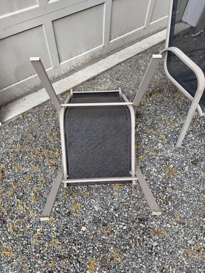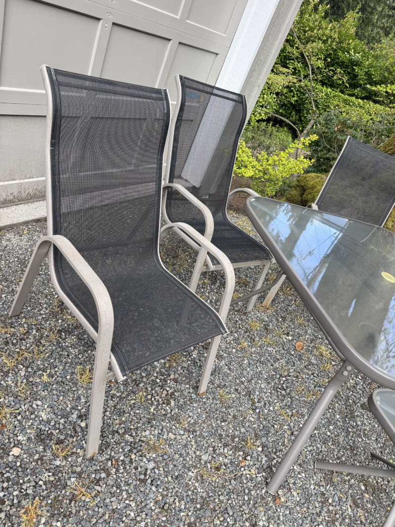 Outdoor Patio Dining Set - Glass Table, Four Chairs & Side Table.