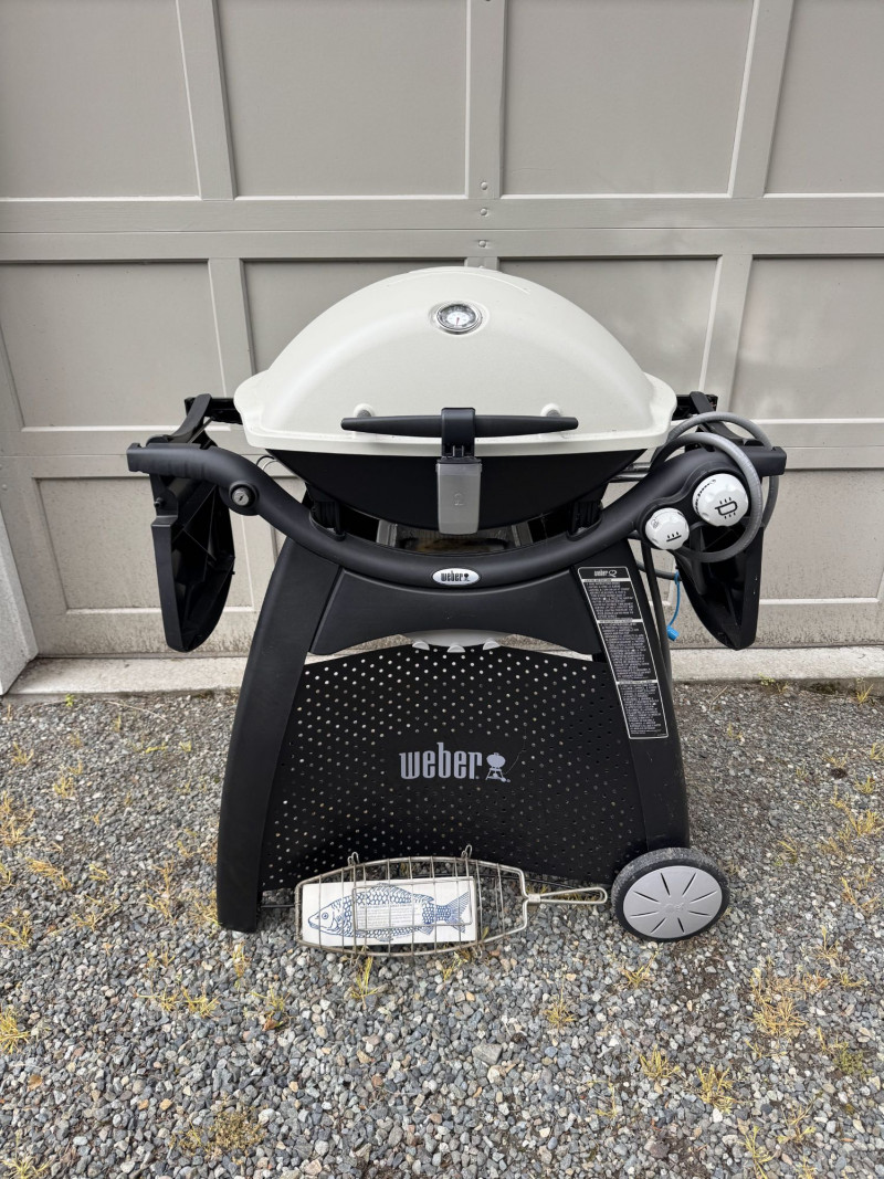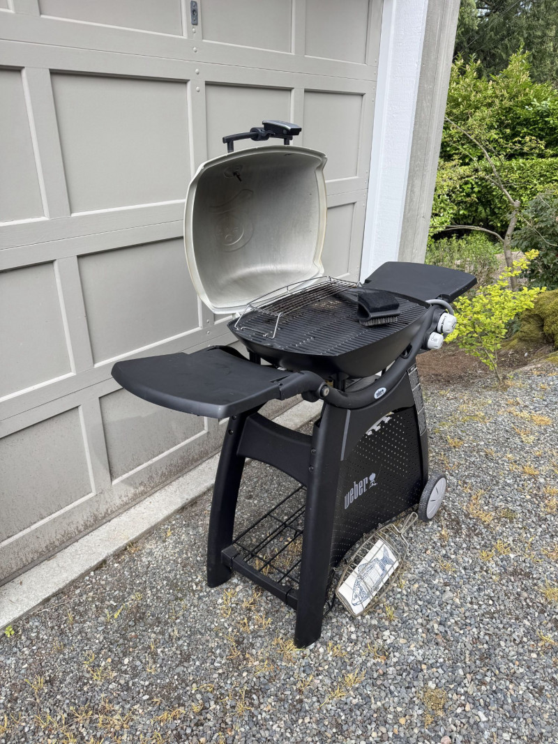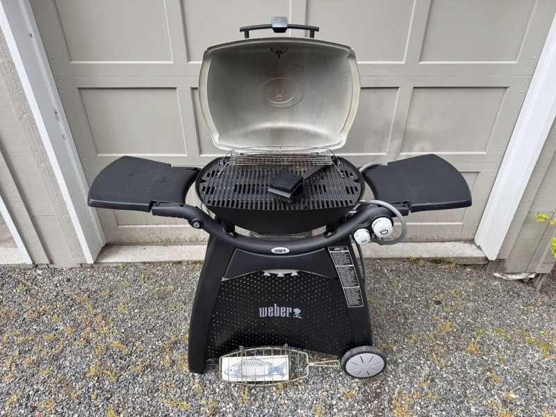 Weber Outdoor Gas Grill w/ Fold-Out Shelves, Cover & Fish Basket.
