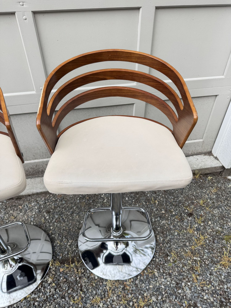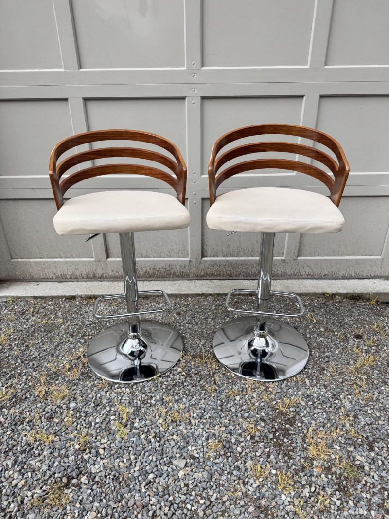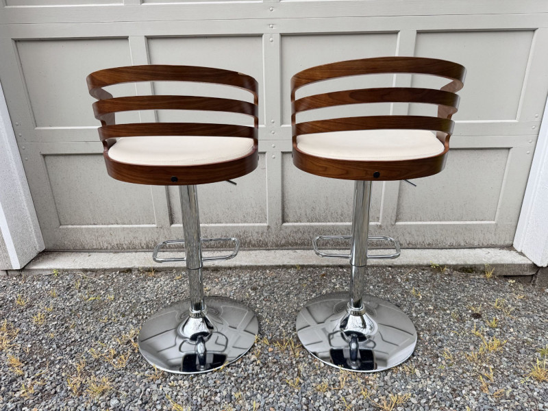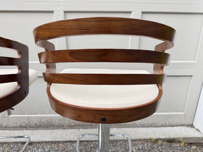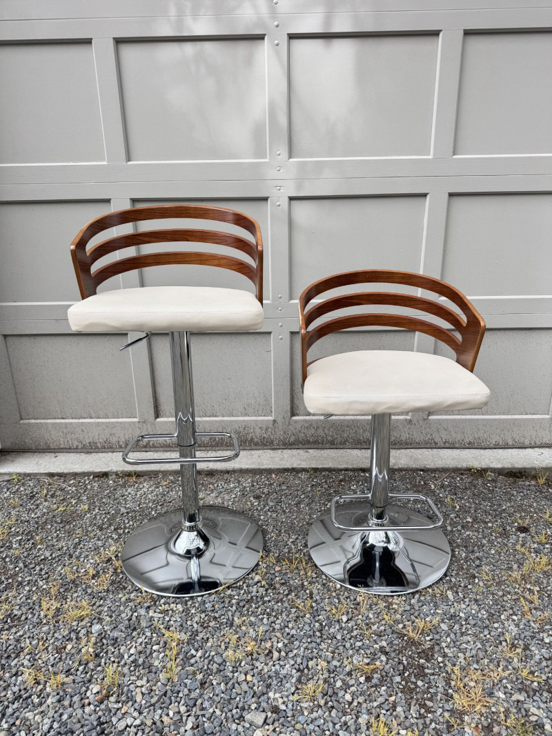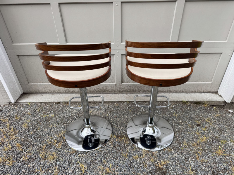 Lot # 181 - Adjustable Swivel Bar Stools w/ Wood Slat Backs & Chrome Bases