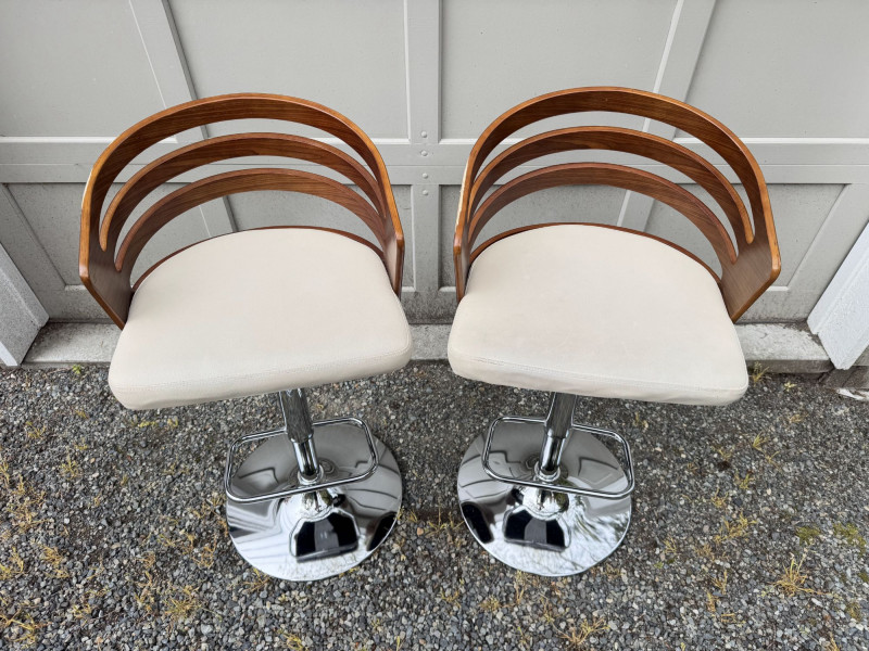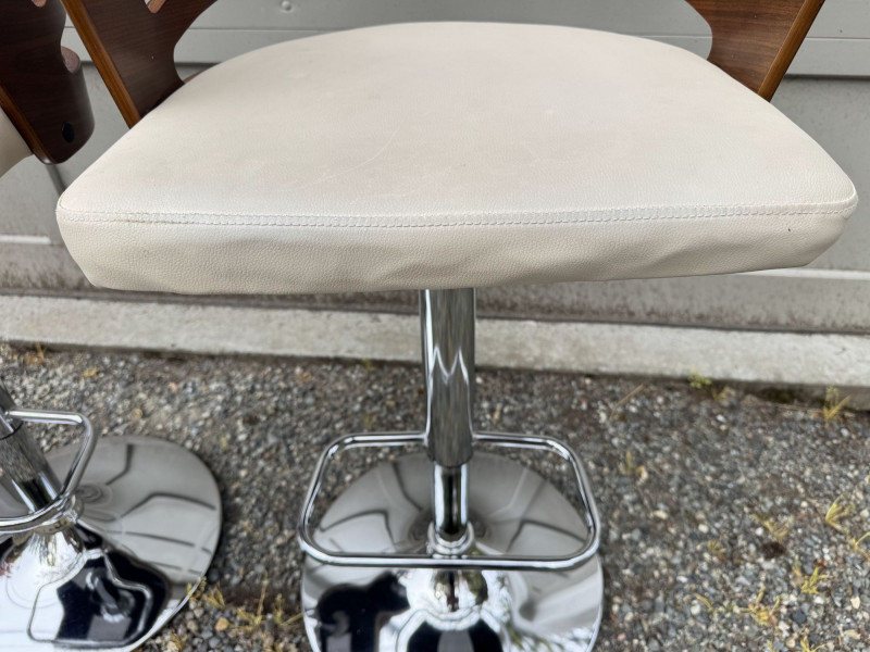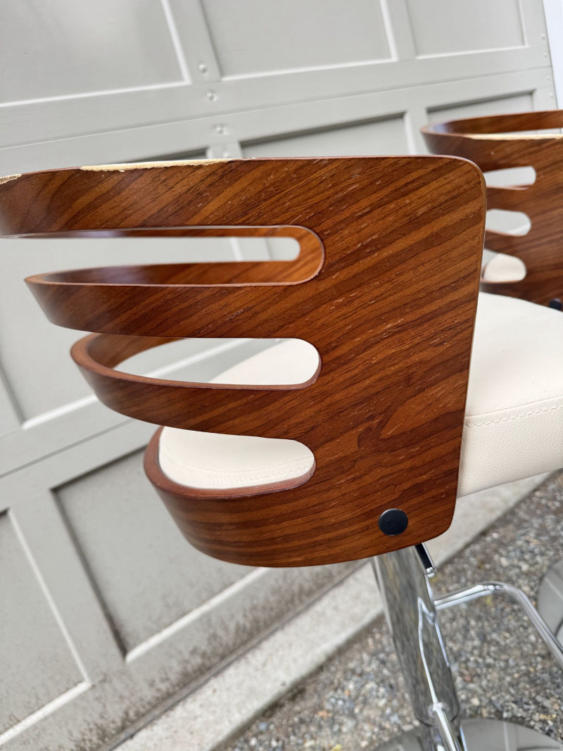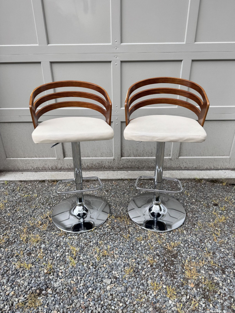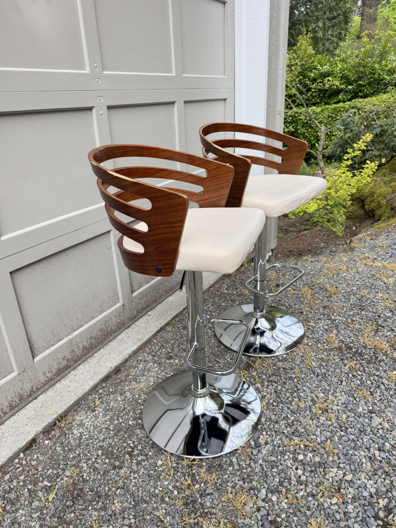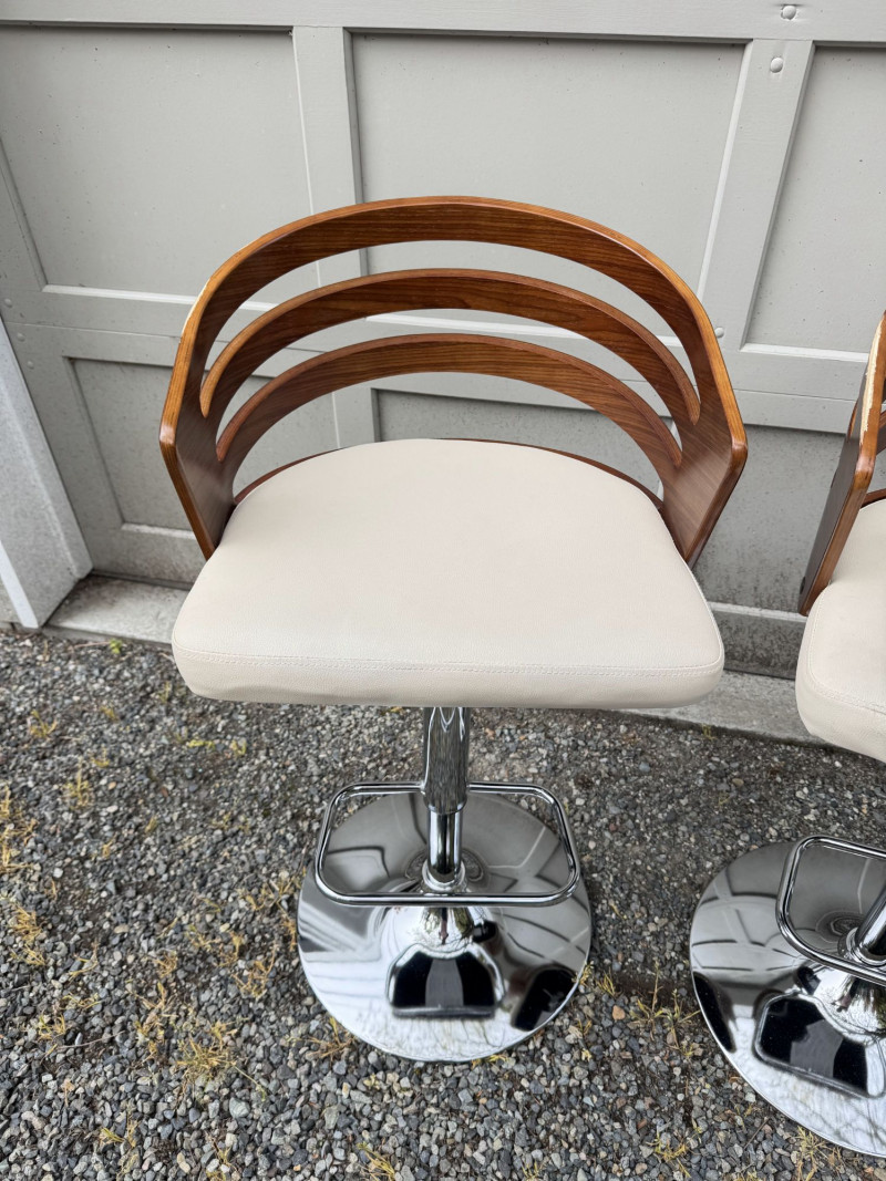 Lot # 181 - Adjustable Swivel Bar Stools w/ Wood Slat Backs & Chrome Bases