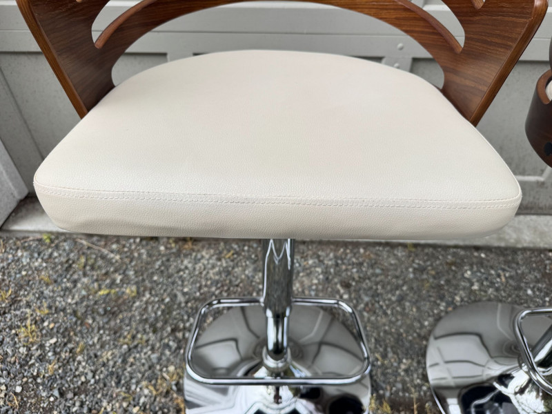 Adjustable Swivel Bar Stools w/ Wood Slat Backs & Chrome Bases. Measurements: