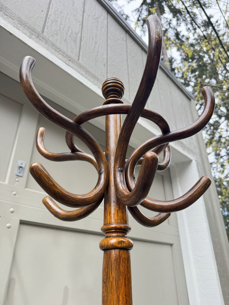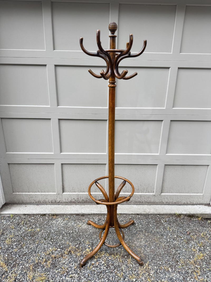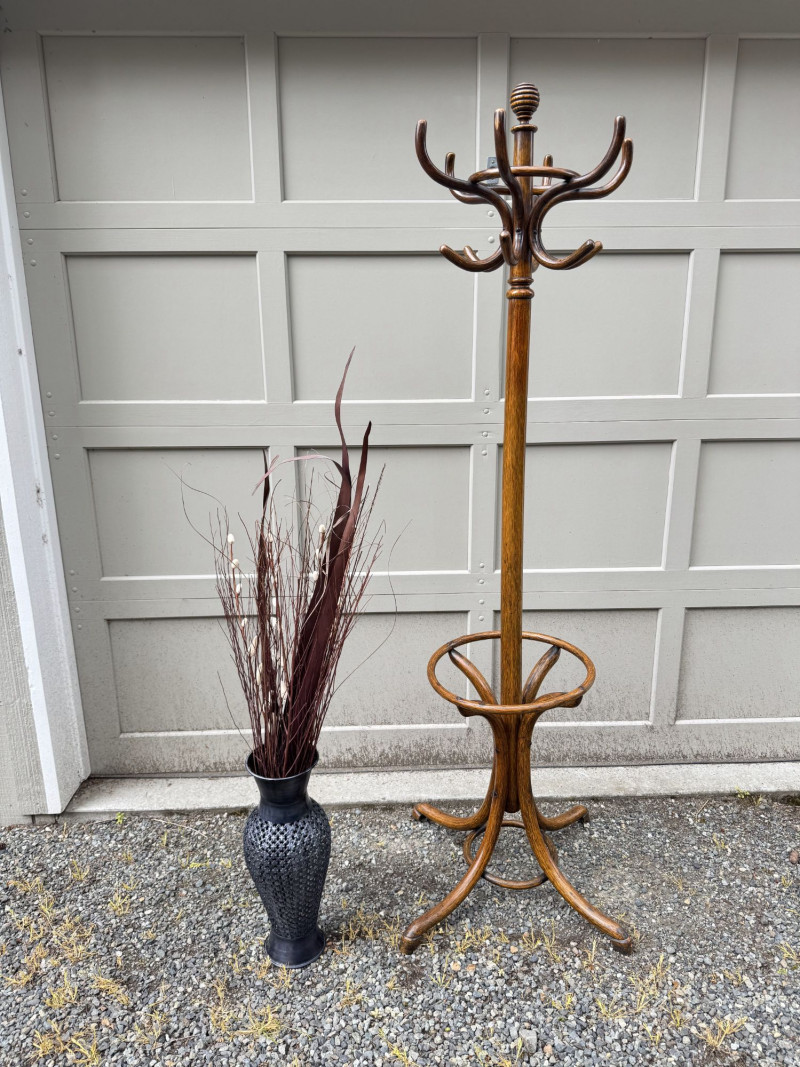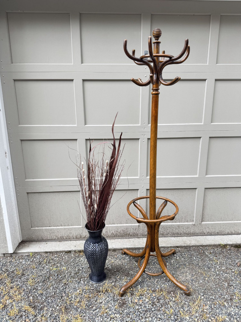 Vintage Bentwood Coat Rack w/ Umbrella Stand & Decorative Floor Vase.