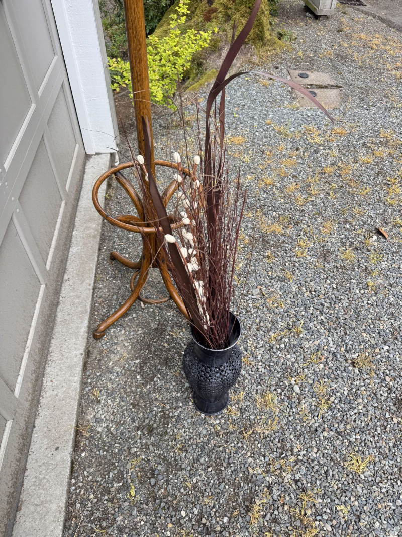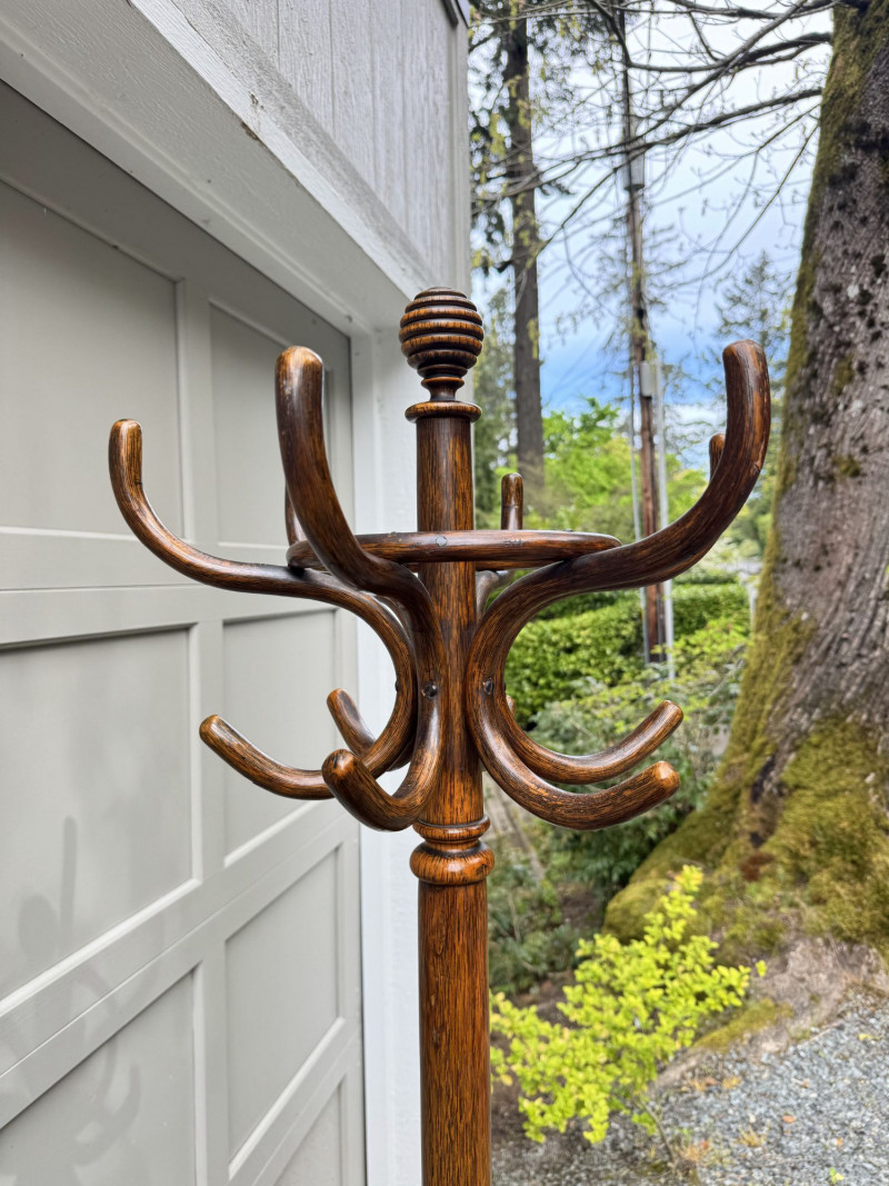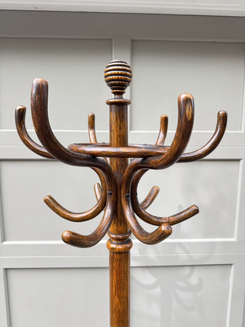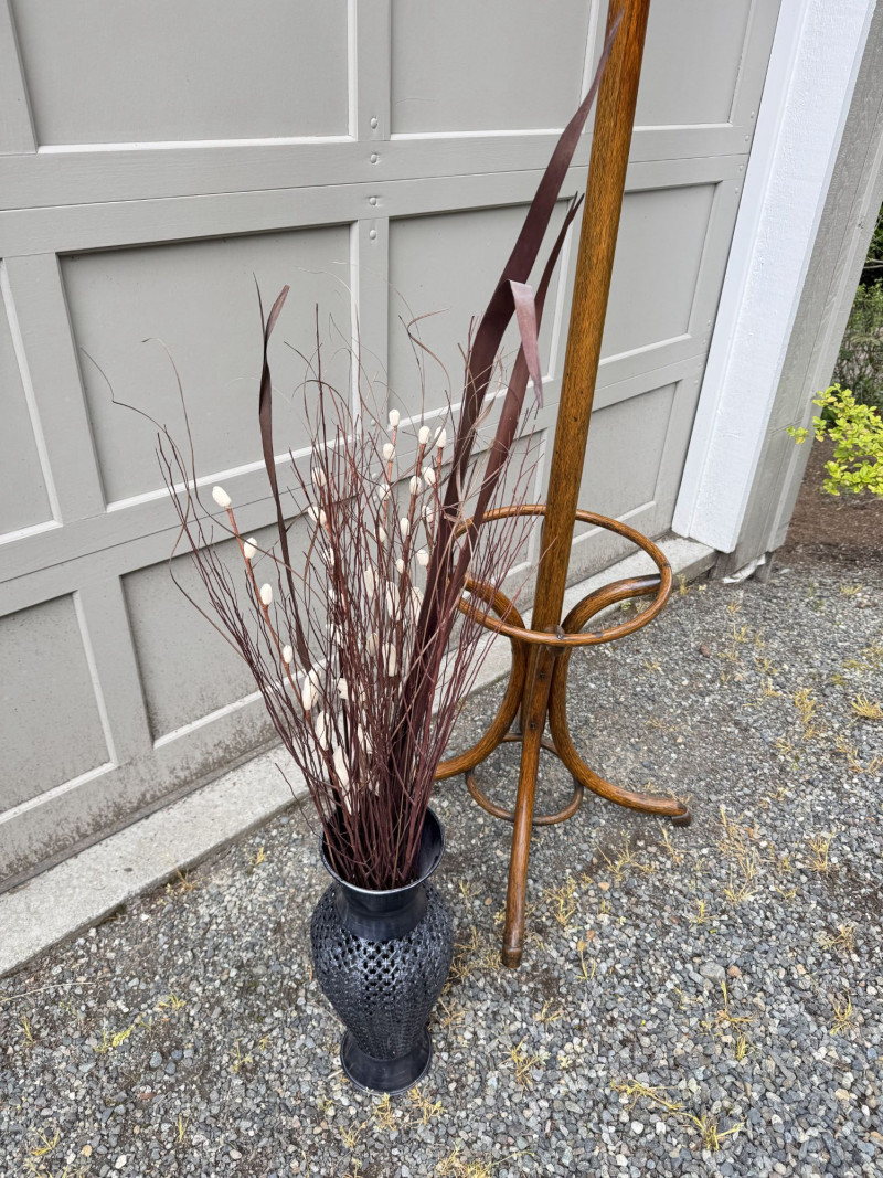 Vintage Bentwood Coat Rack w/ Umbrella Stand & Decorative Floor Vase.