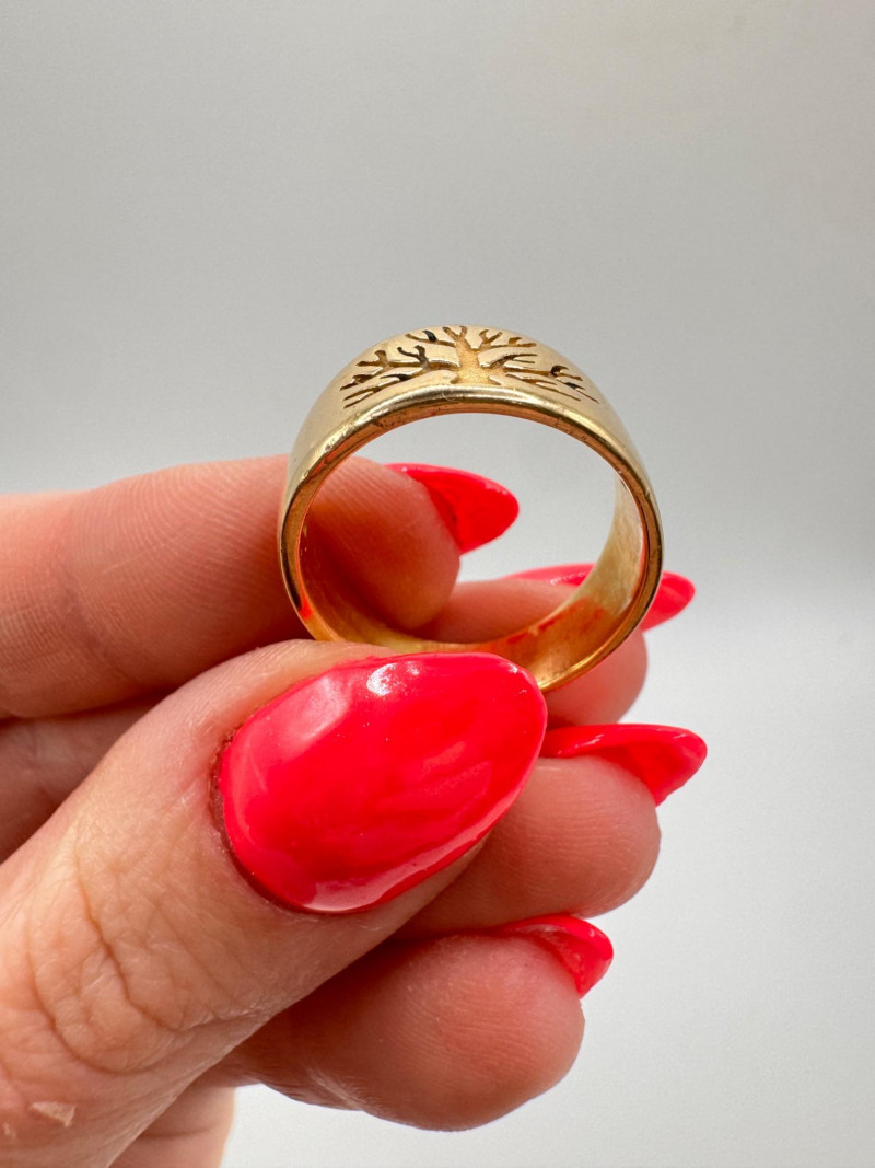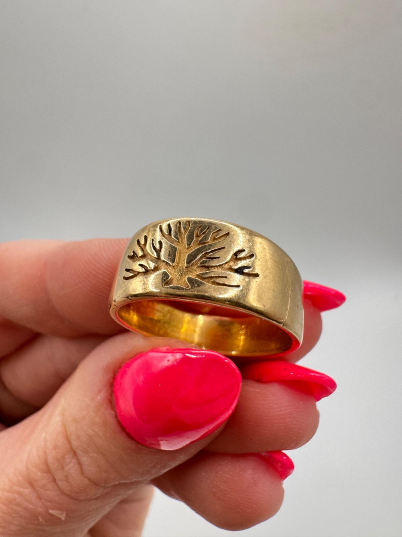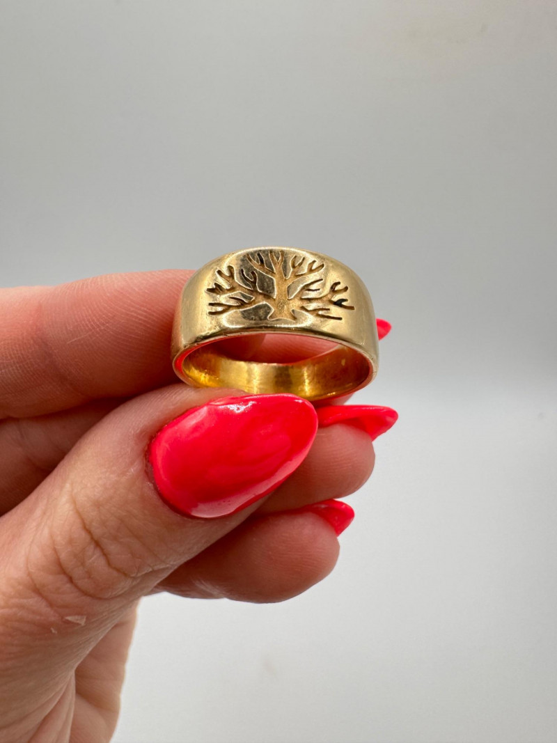 14K Gold Men’s Ring Engraved Tree Design - 6.72g. Disclaimer: This item has not been tested and is sold as is with no guarantees regarding metal quality, purity, authenticity, or composition. By placing a bid, you acknowledge and agree to these terms. No refunds will be issued based on these factors.