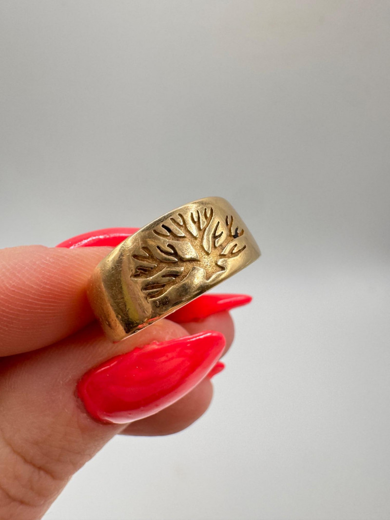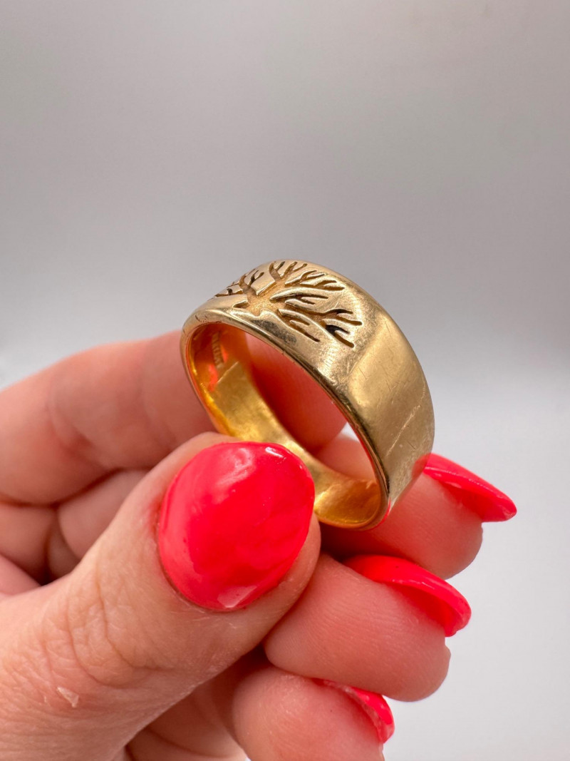 Lot # 1 - 14K Gold Men’s Ring Engraved Tree Design - 6.72g