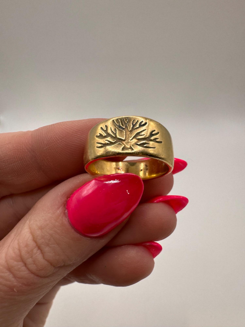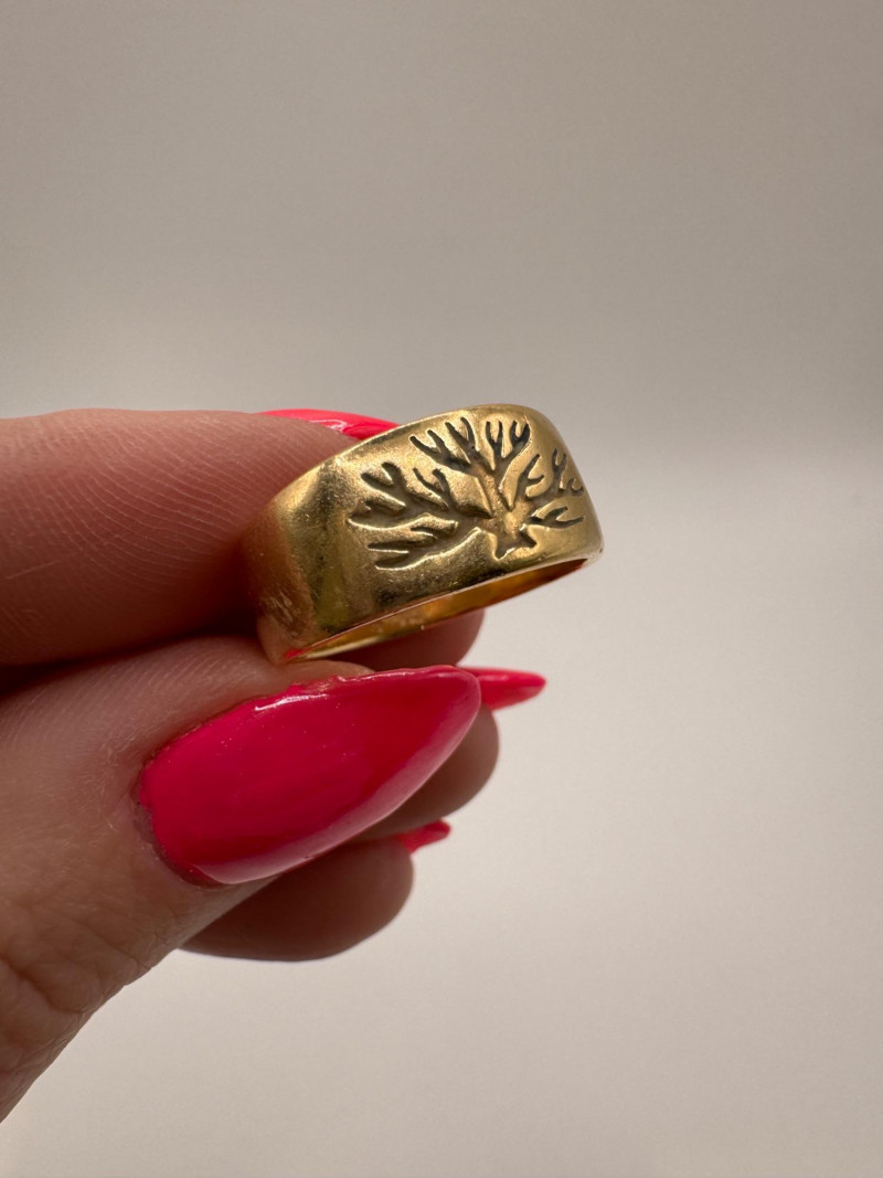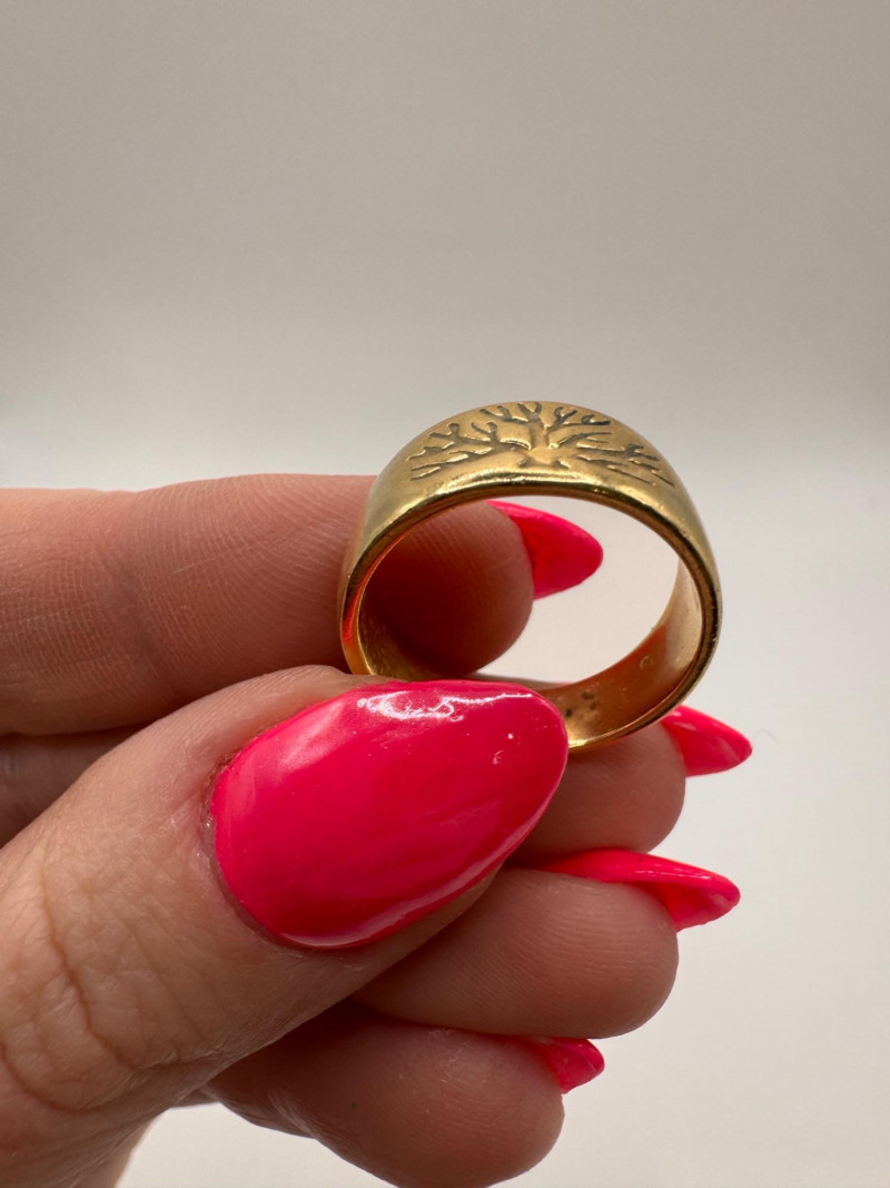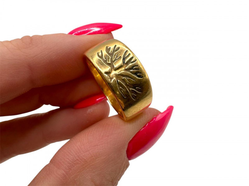 Lot # 2 - 14K Gold Women’s Ring Engraved Tree Design Size 7 - 6.32g