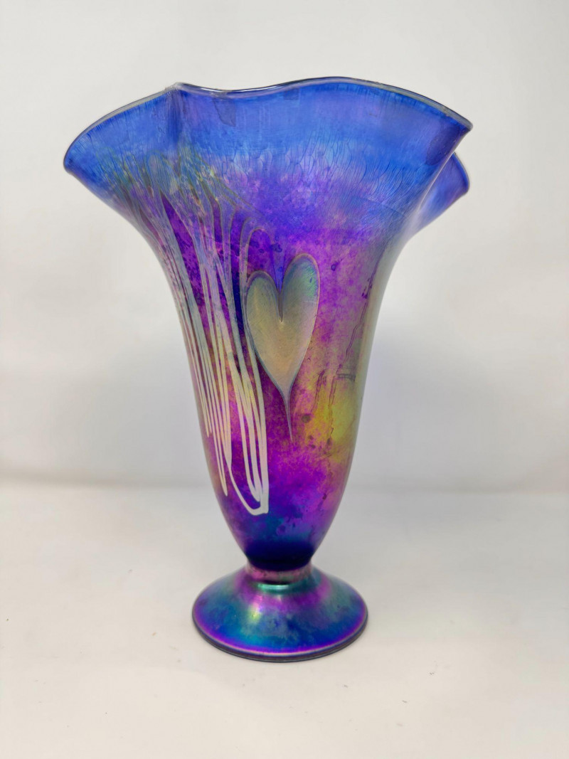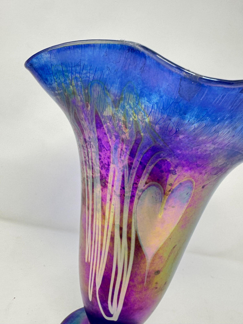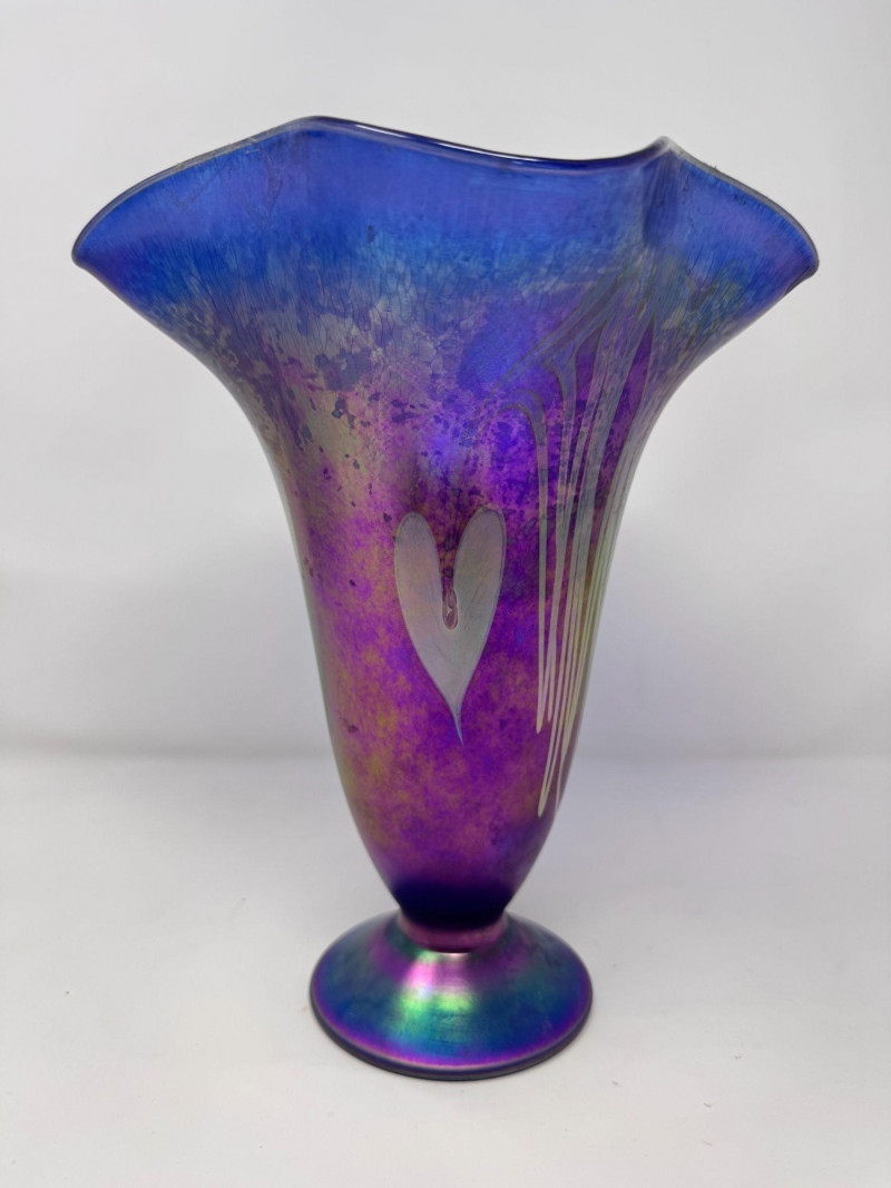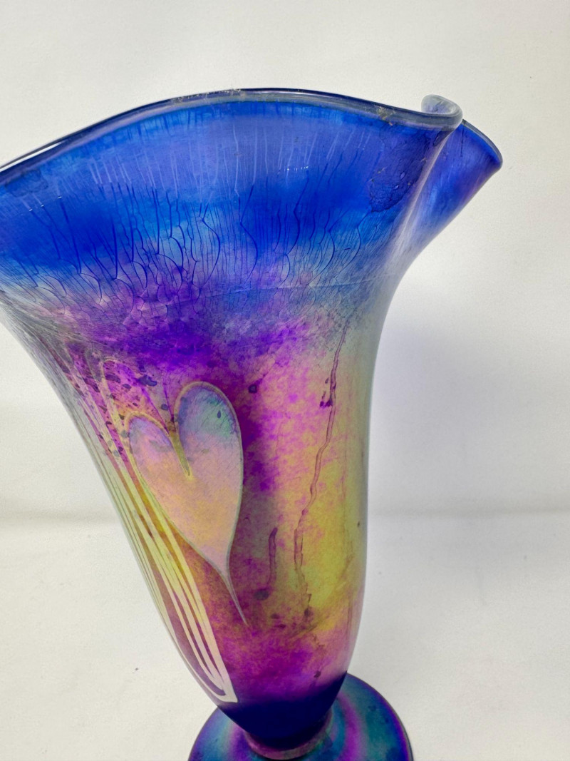 Lot # 4 - Iridescent Blown Glass Vase Heart Design - Signed