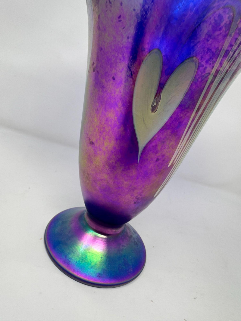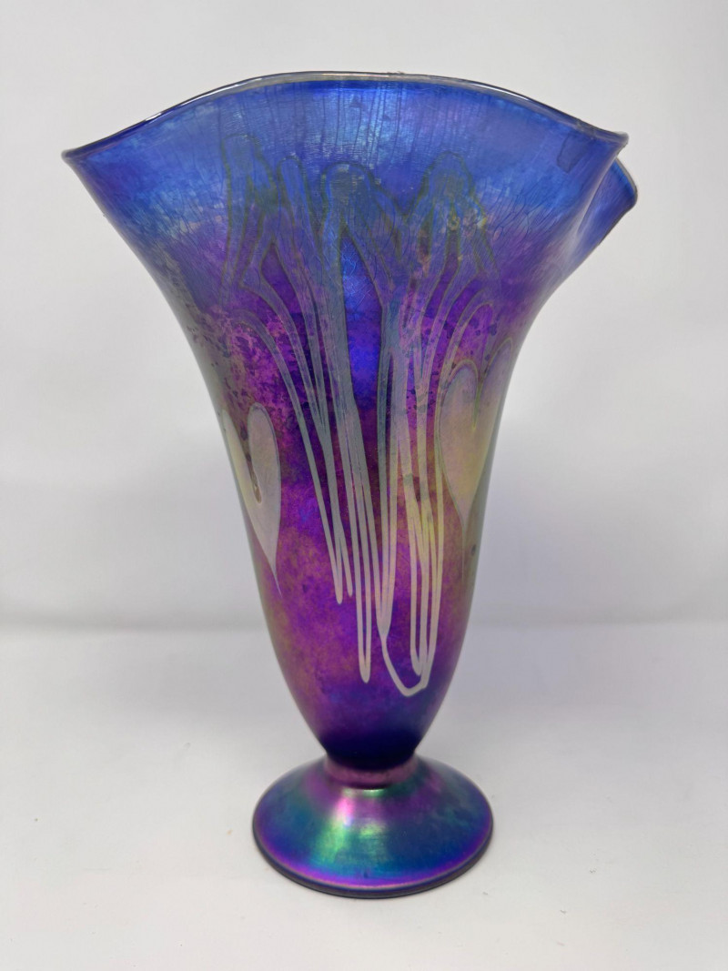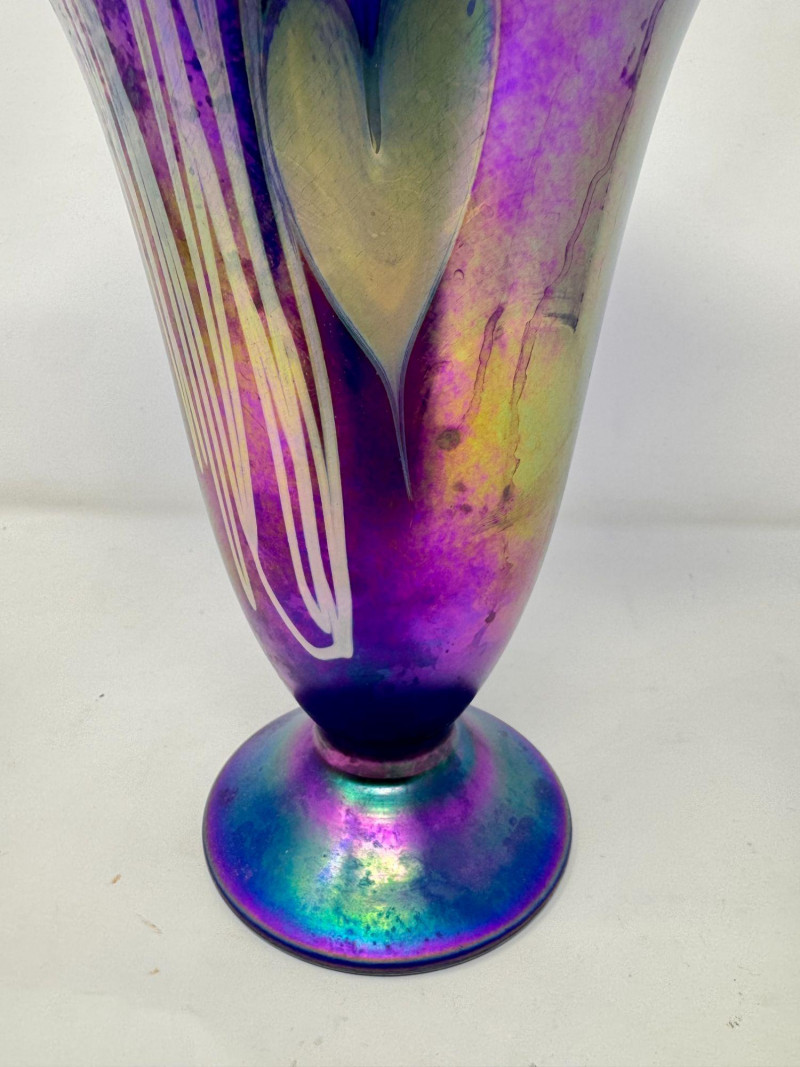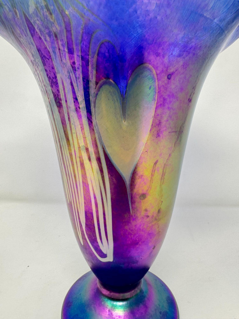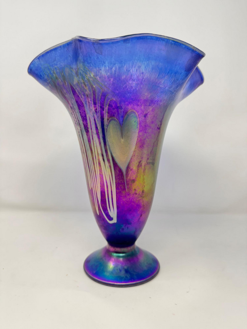 Lot # 4 - Iridescent Blown Glass Vase Heart Design - Signed
