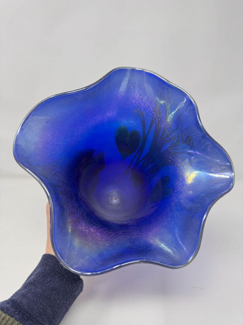 Iridescent Blown Glass Vase Heart Design - Signed.
