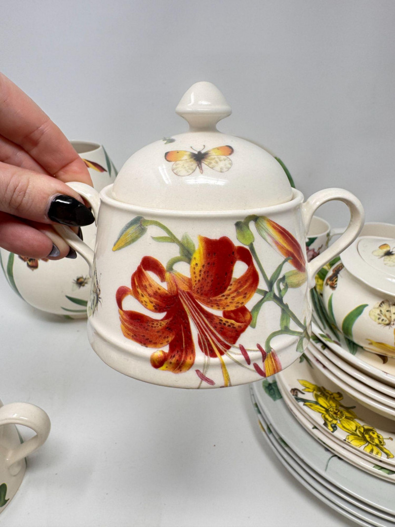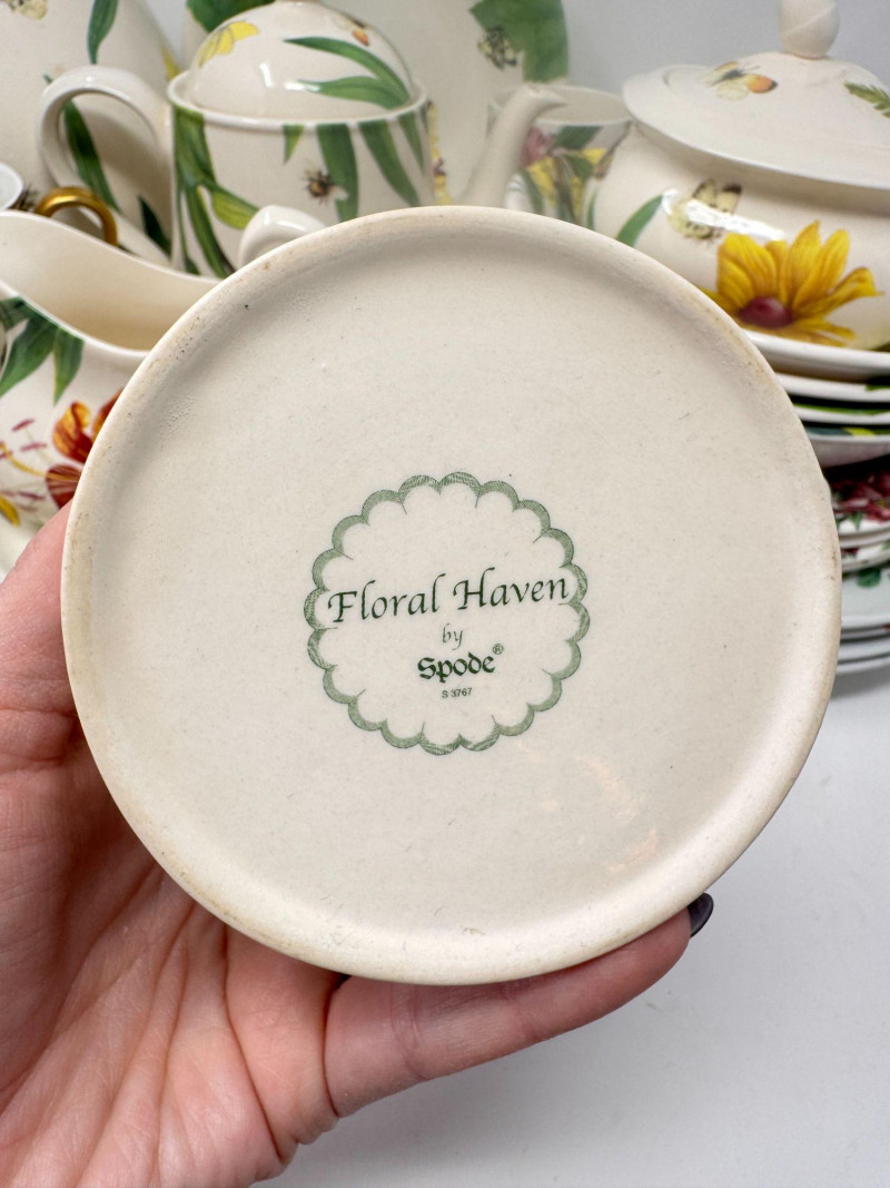 Spode Floral Dinnerware Set - Teapot, Plates, Bowls, Cream & Sugar.