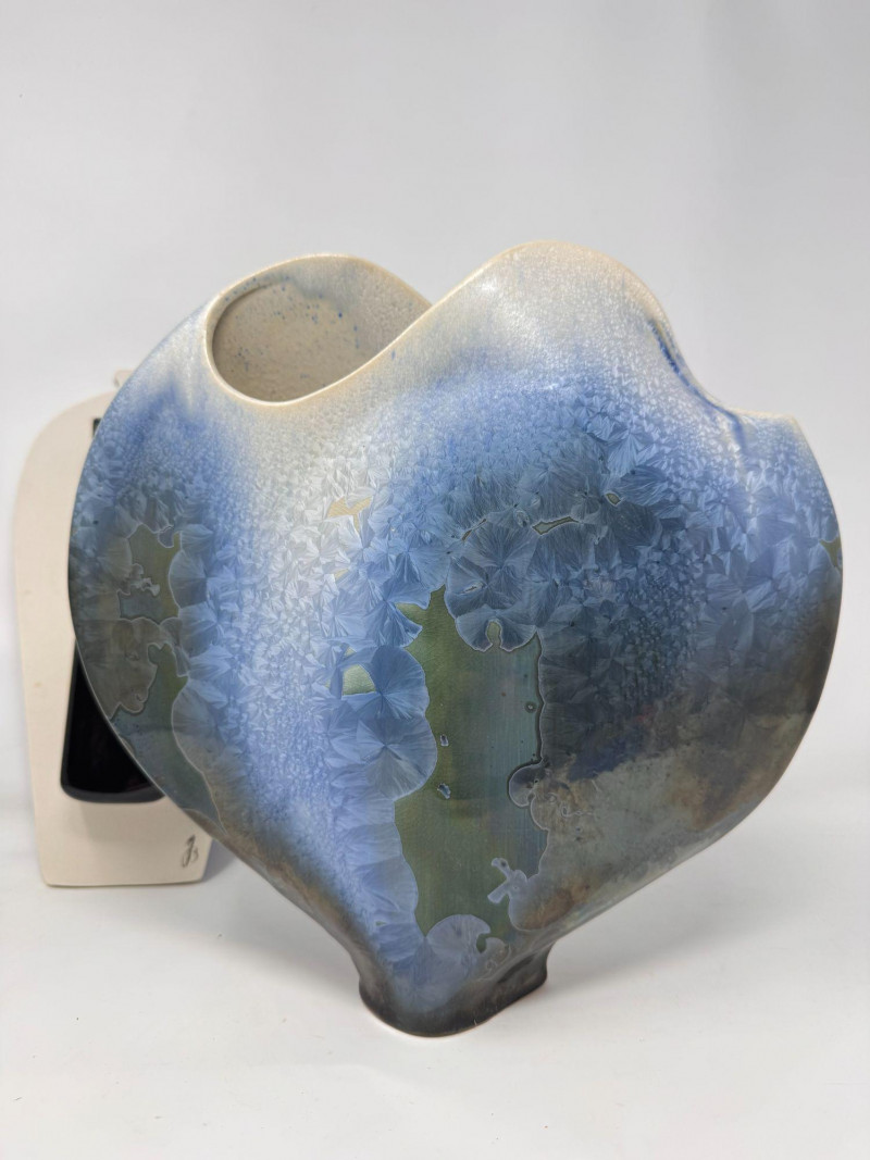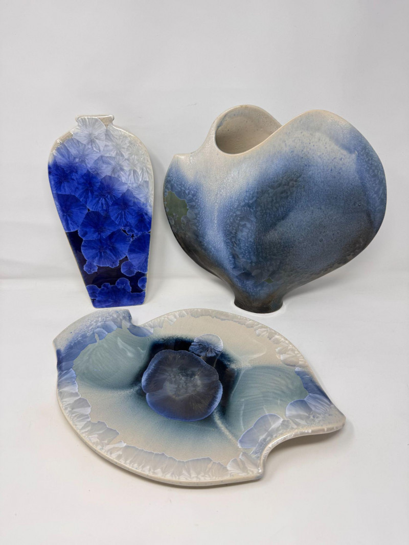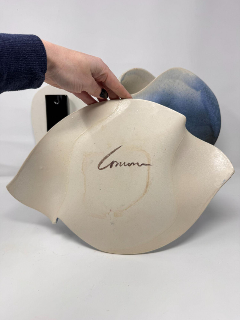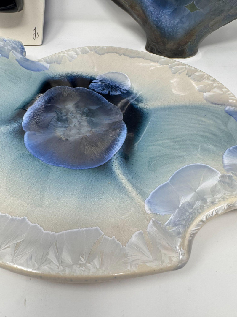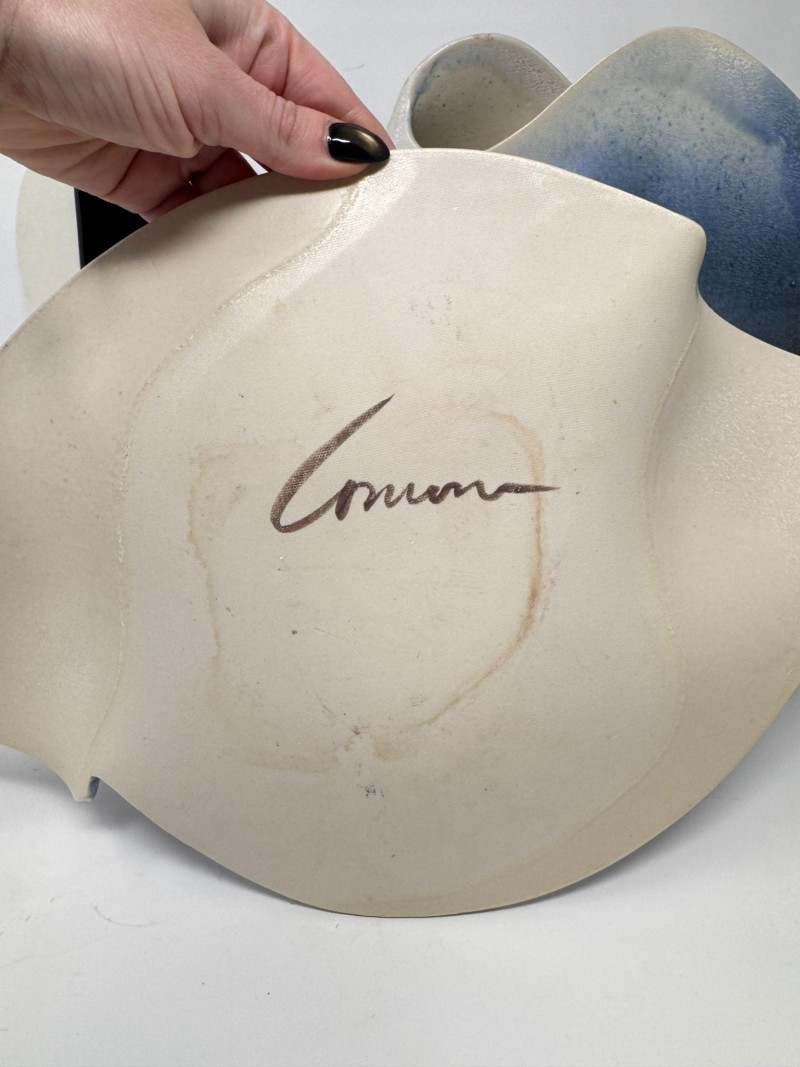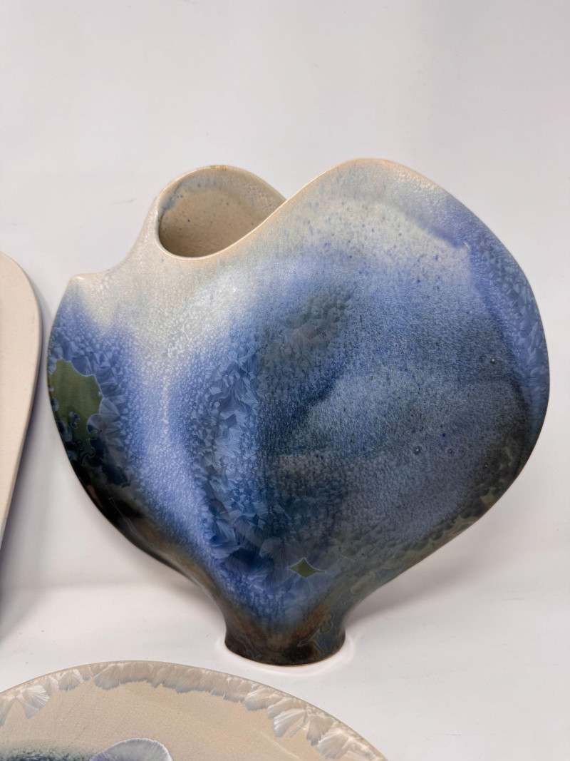 Lot # 9 - Unique Studio Pottery Trio - Vase, Plate, & Wall Bud Vase - Signed