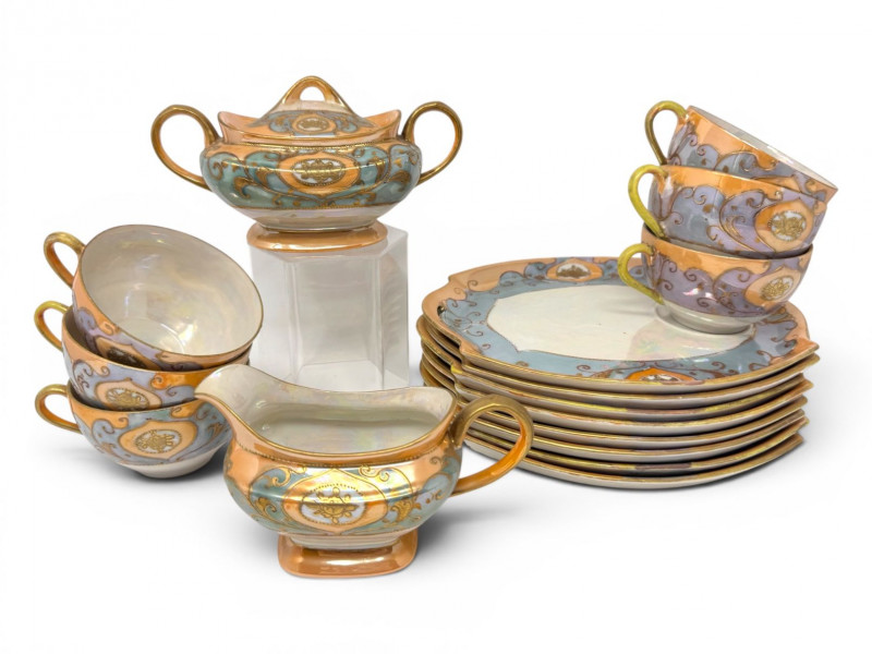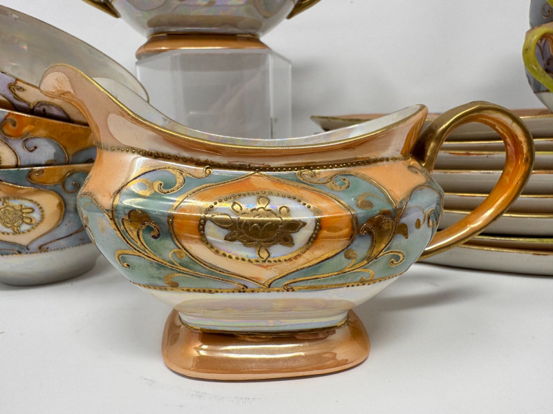 Lot # 12 - Antique Japanese Lusterware Tea Set - Snack Trays, Cups, Cream & Sugar