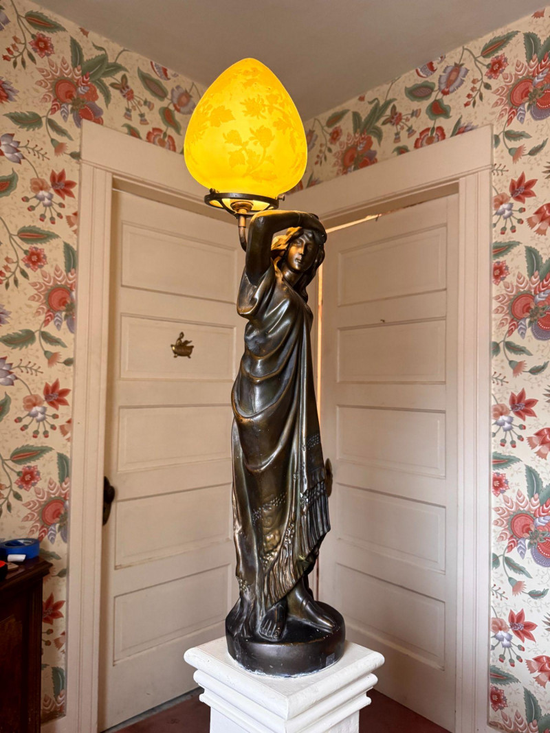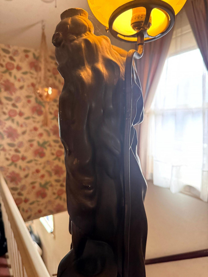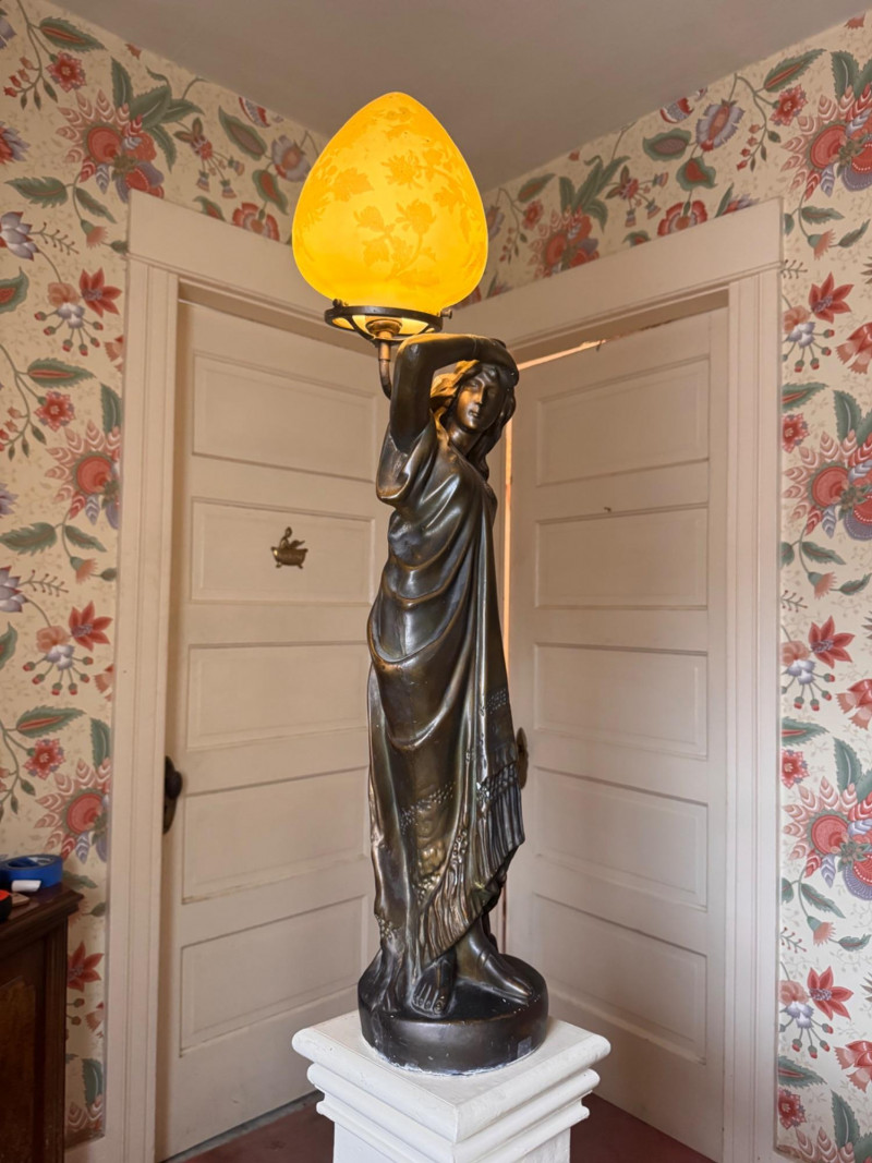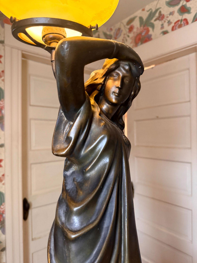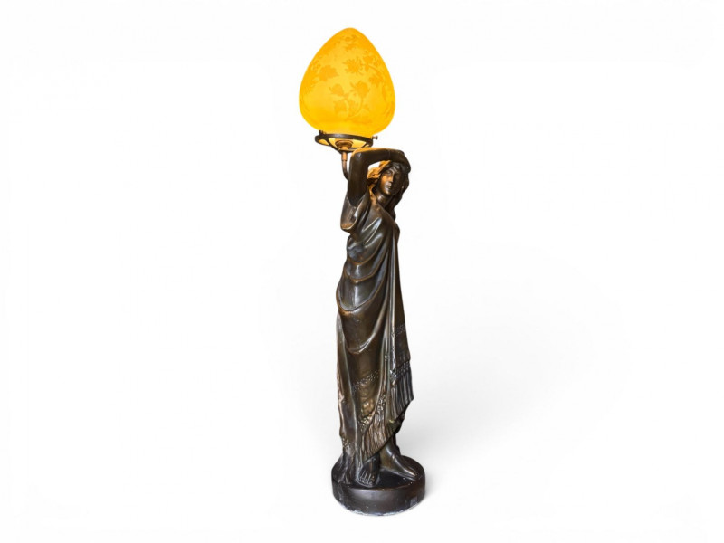 Lot # 13 - Art Deco Figural Woman Lamp w/ Yellow Glass Floral Shade