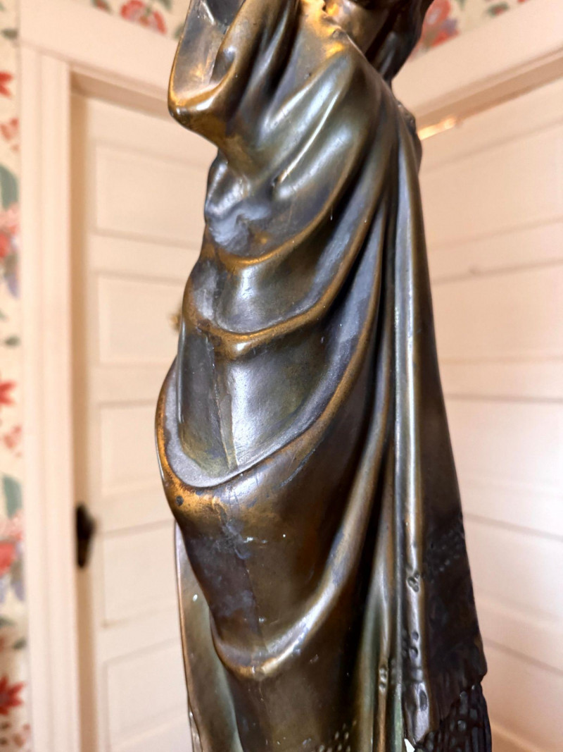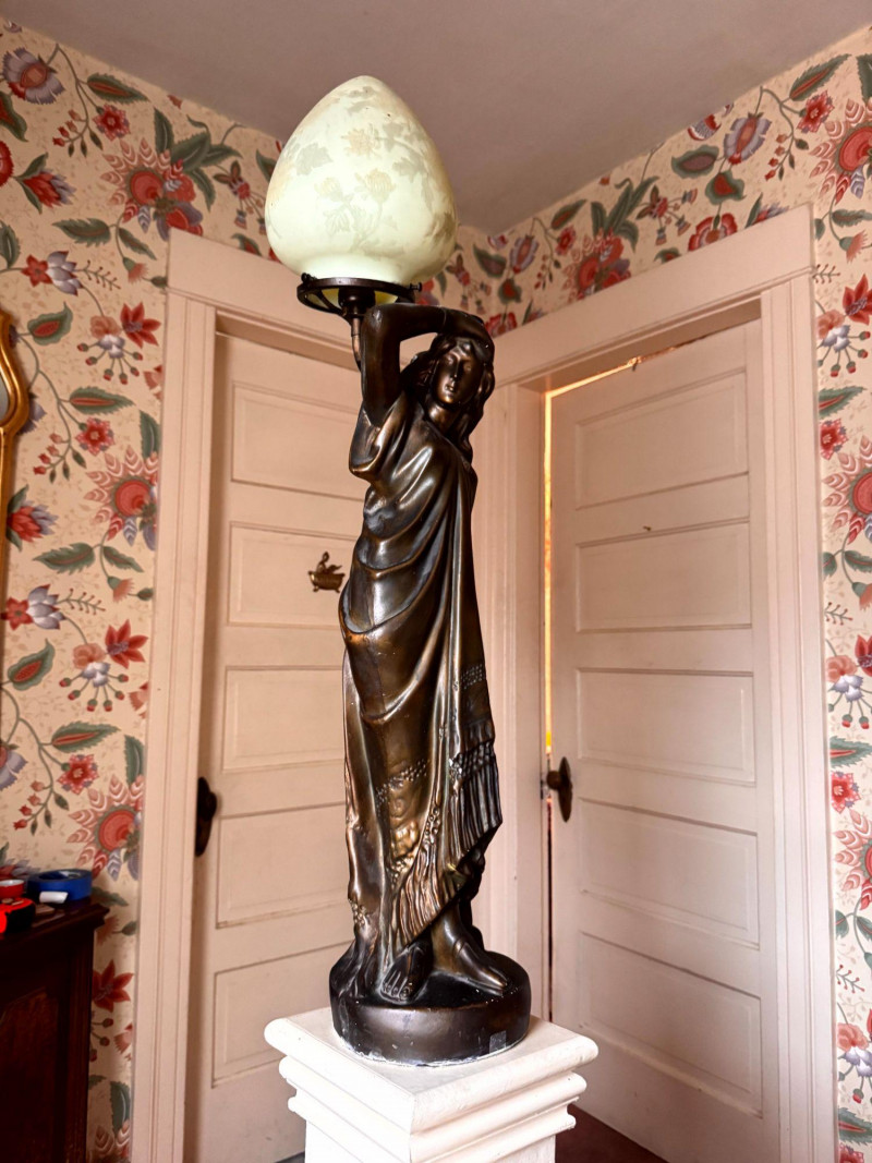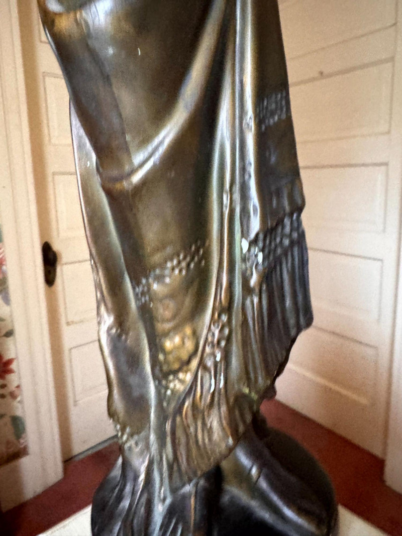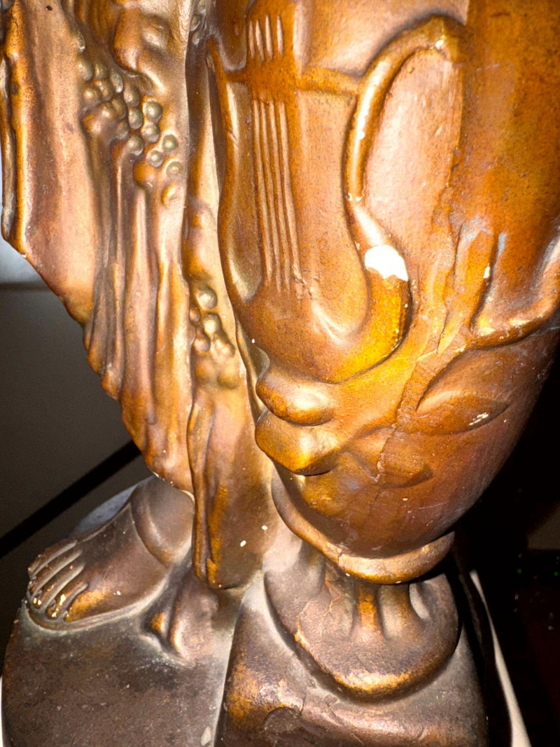 Lot # 13 - Art Deco Figural Woman Lamp w/ Yellow Glass Floral Shade