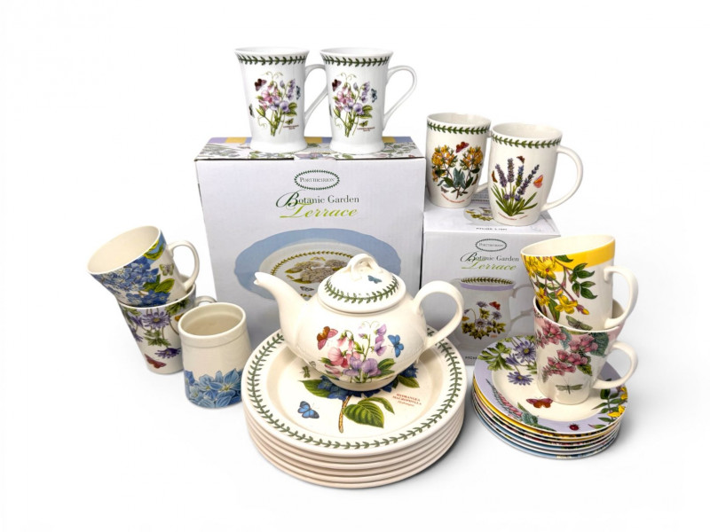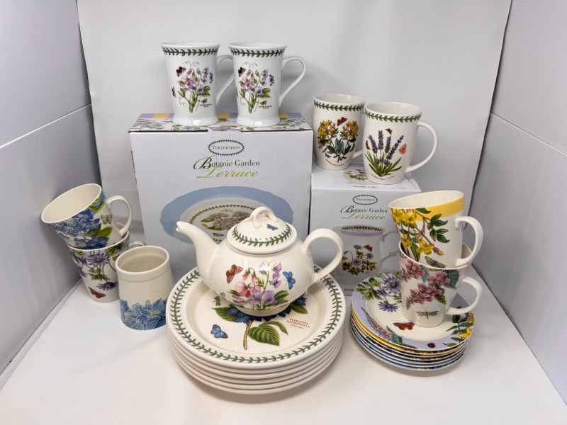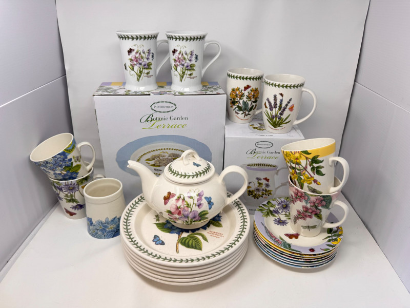 Lot # 14 - Portmeirion Botanic Garden Terrace Dinnerware - Plates, Mugs, Teapot +