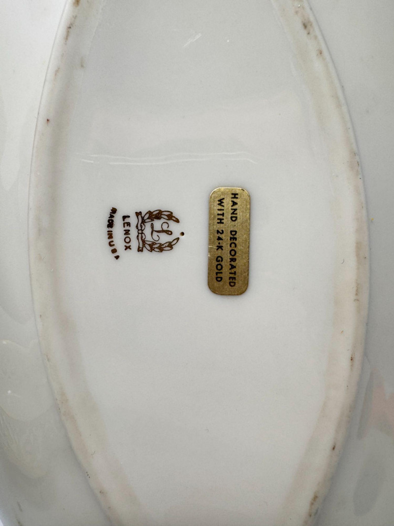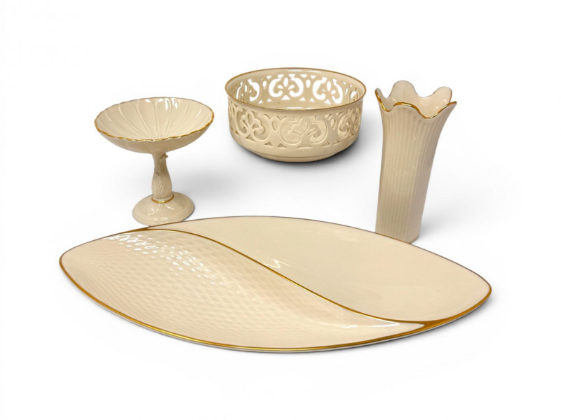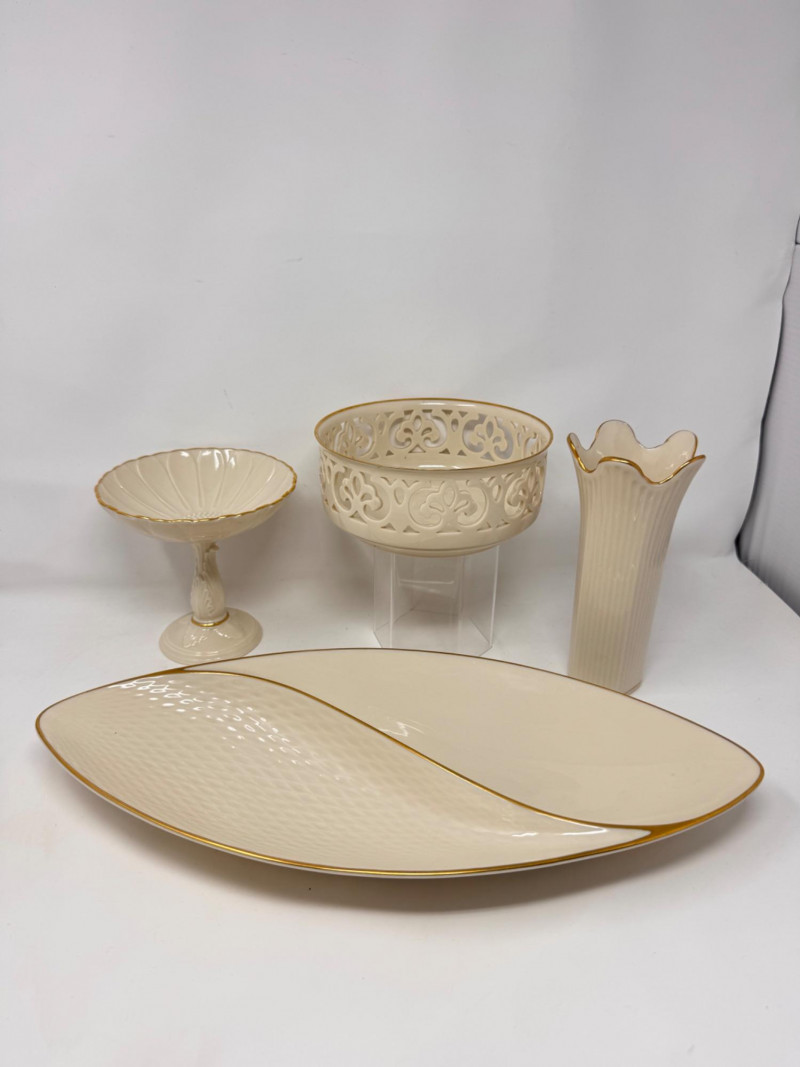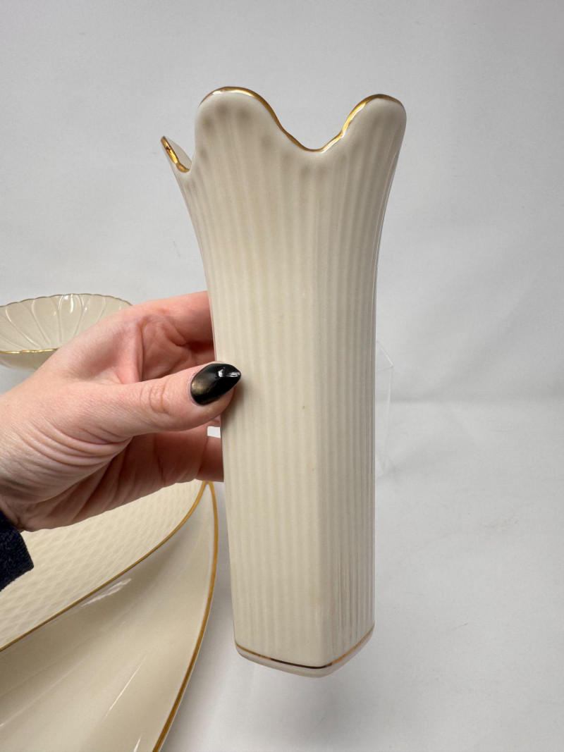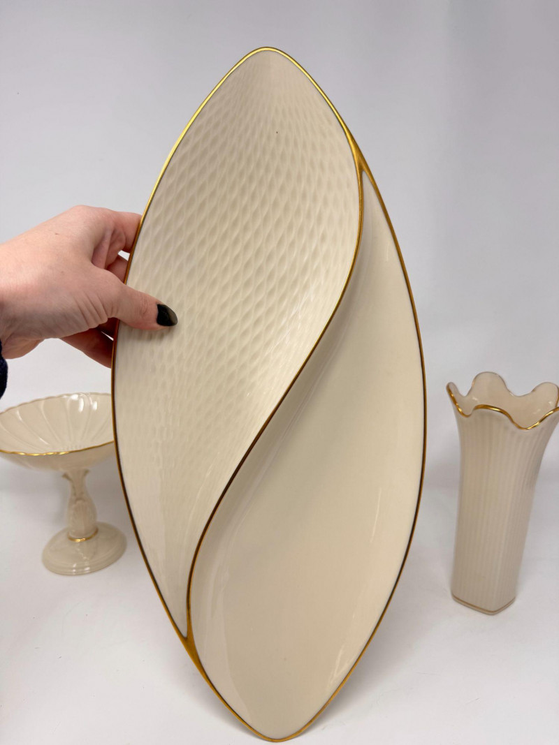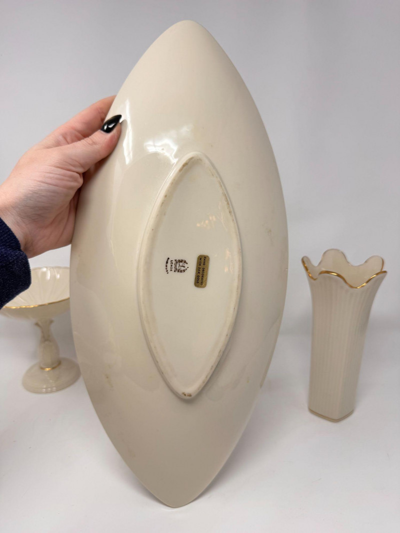 Lot # 17 - Lenox Ivory Porcelain Vase, Bowl & 24K Gold Trim Serving Dish