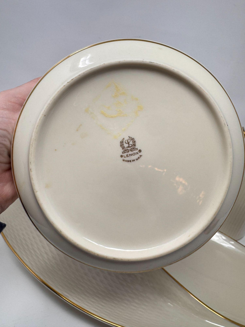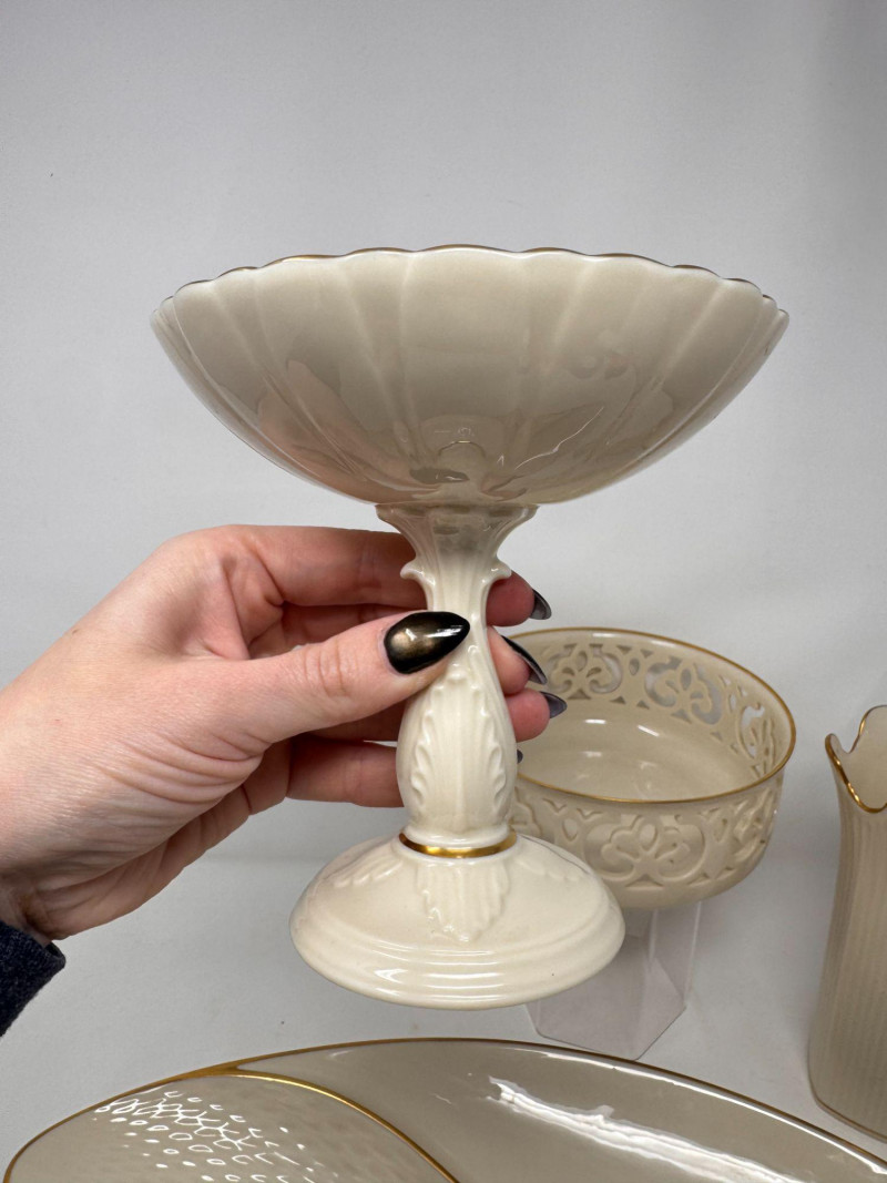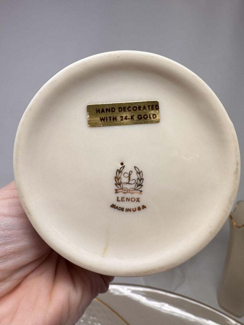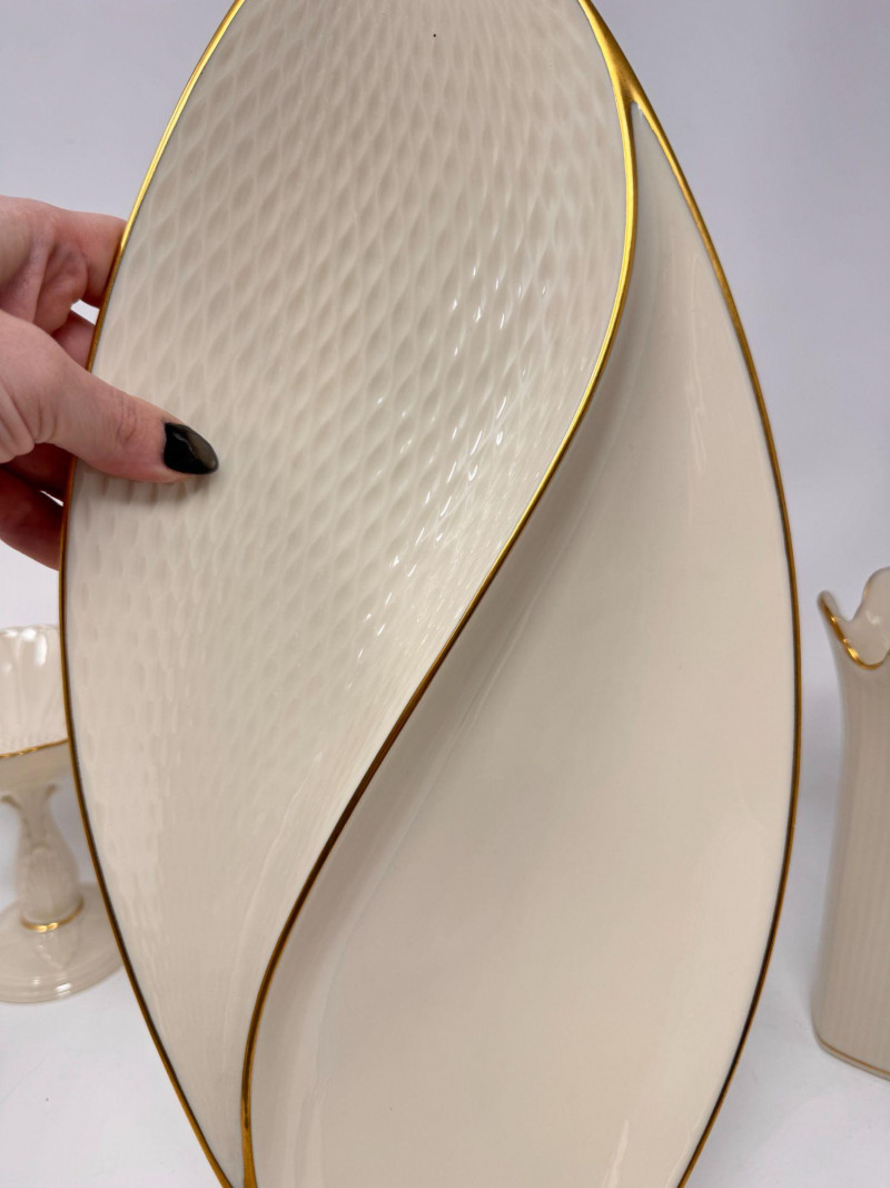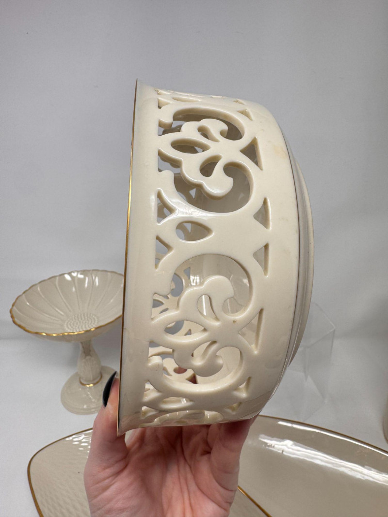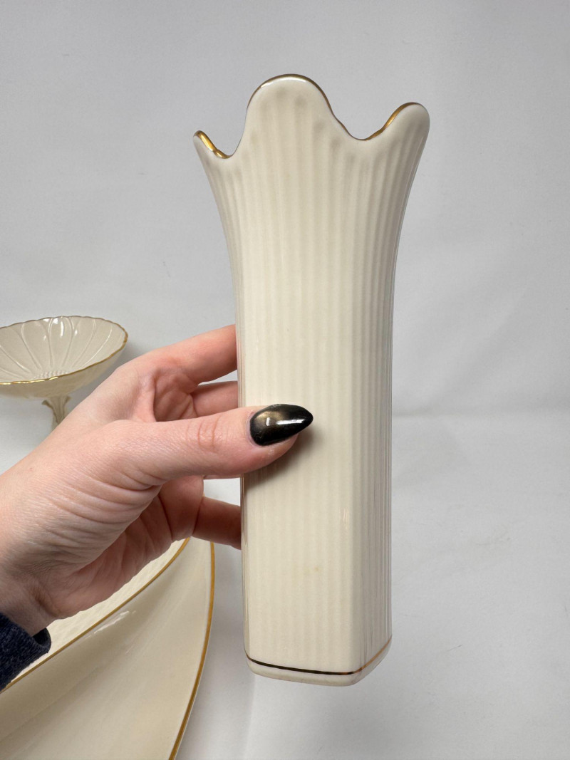 Lot # 17 - Lenox Ivory Porcelain Vase, Bowl & 24K Gold Trim Serving Dish