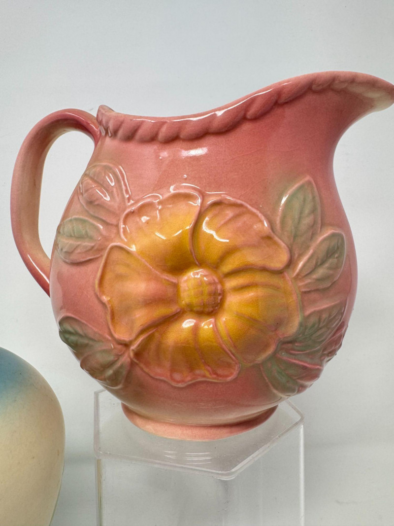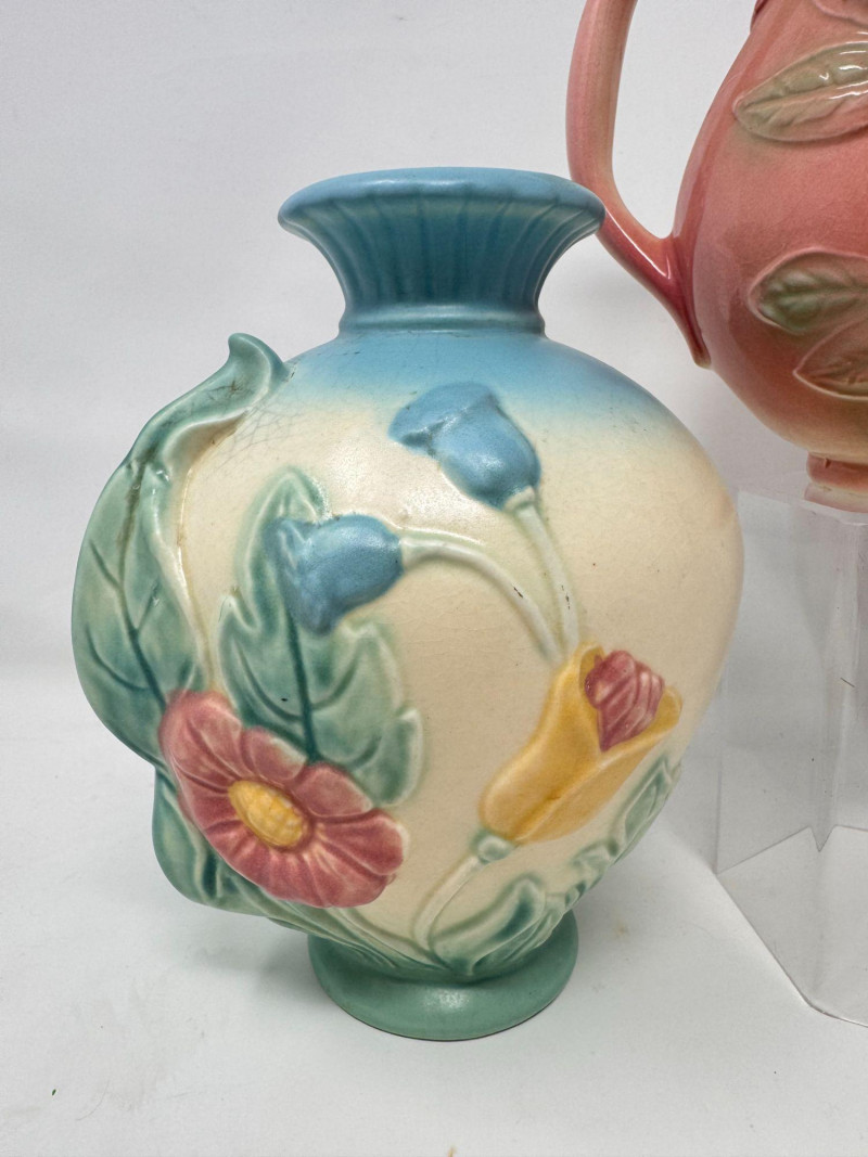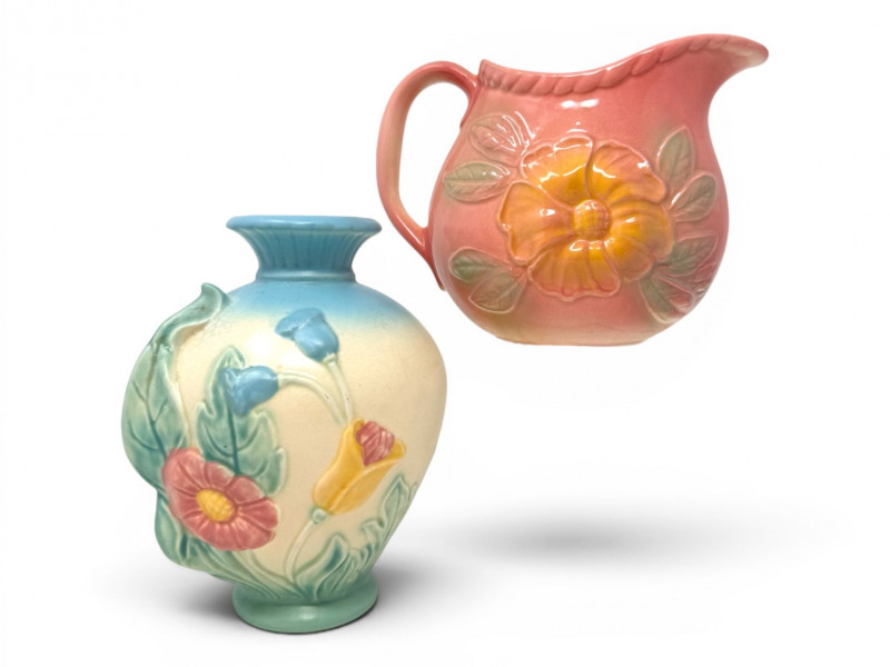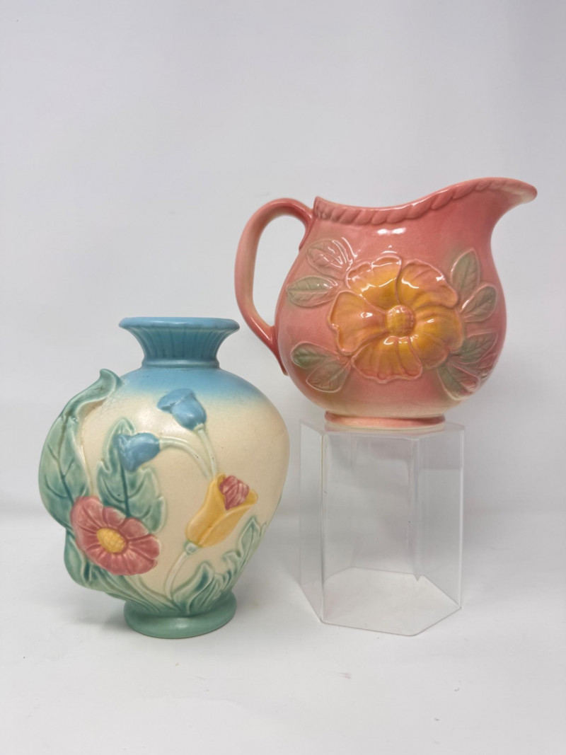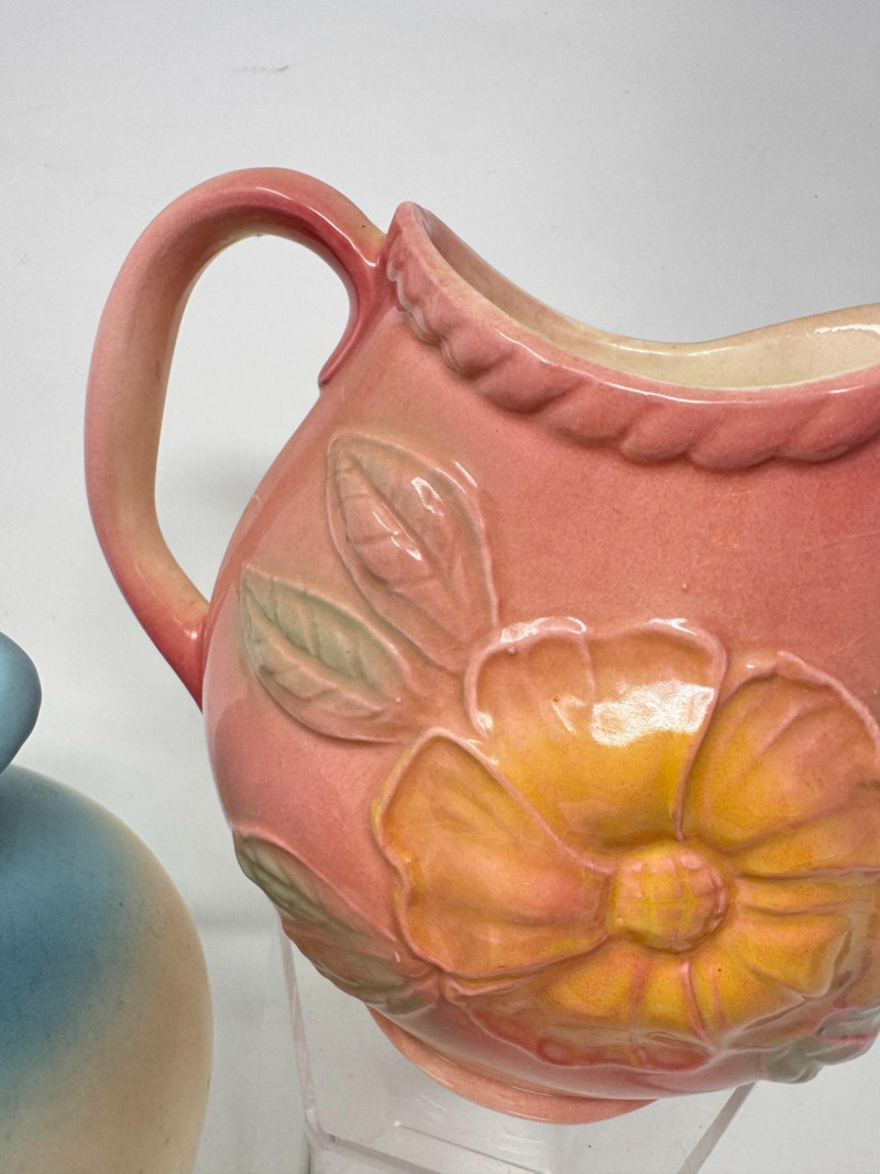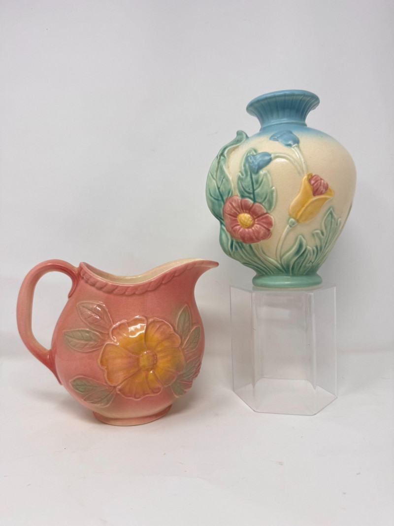 Lot # 20 - Vintage Hull Pottery Blue Bow Knot Vase & Sunglow Pitcher