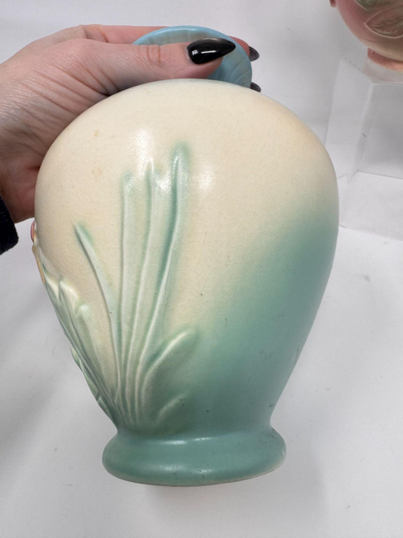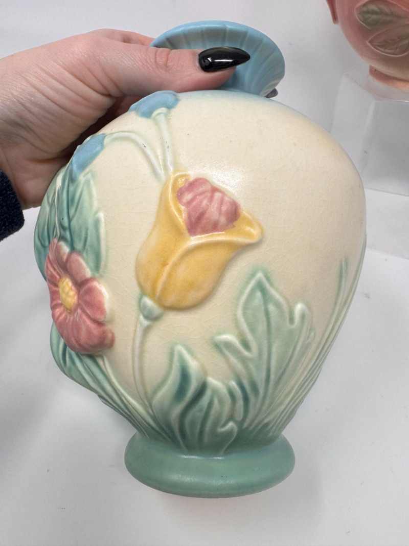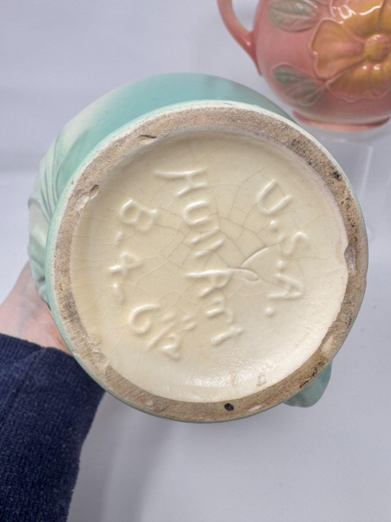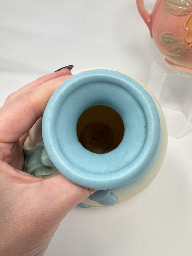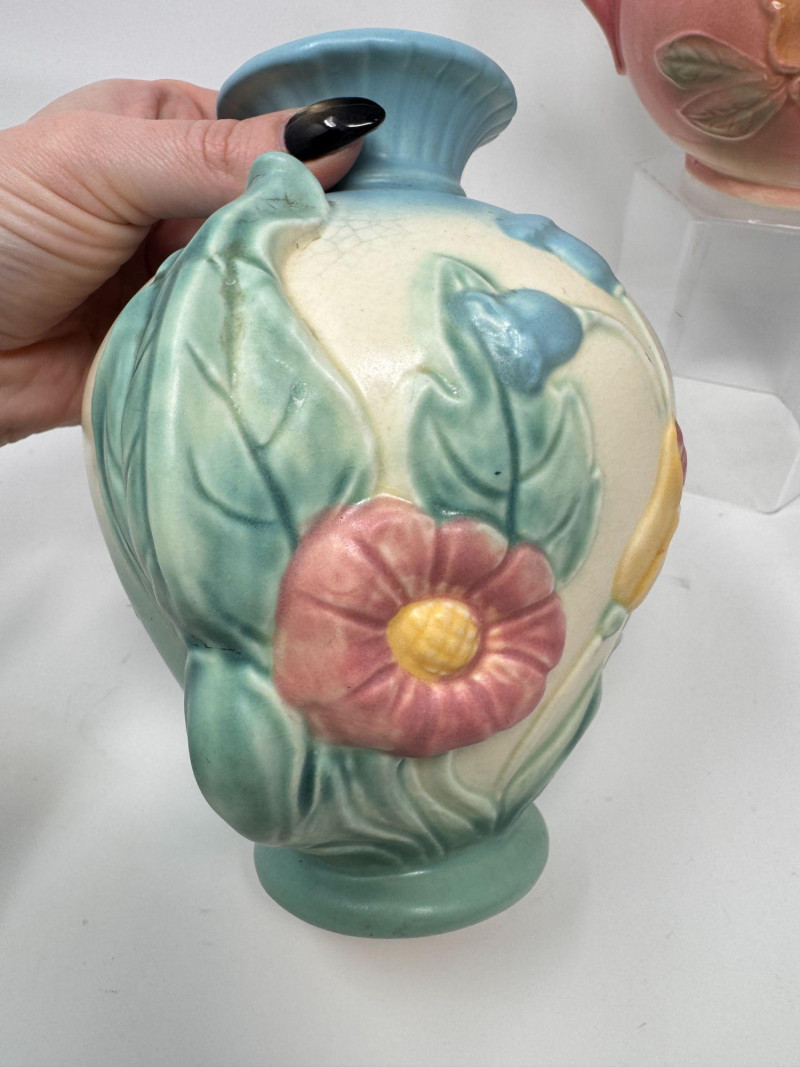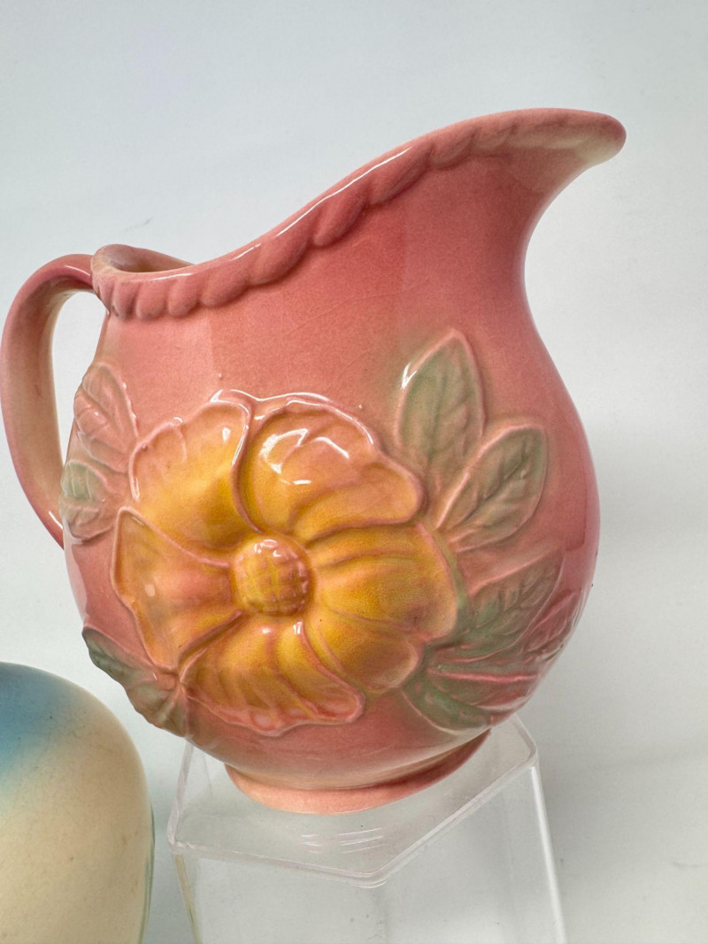 Lot # 20 - Vintage Hull Pottery Blue Bow Knot Vase & Sunglow Pitcher
