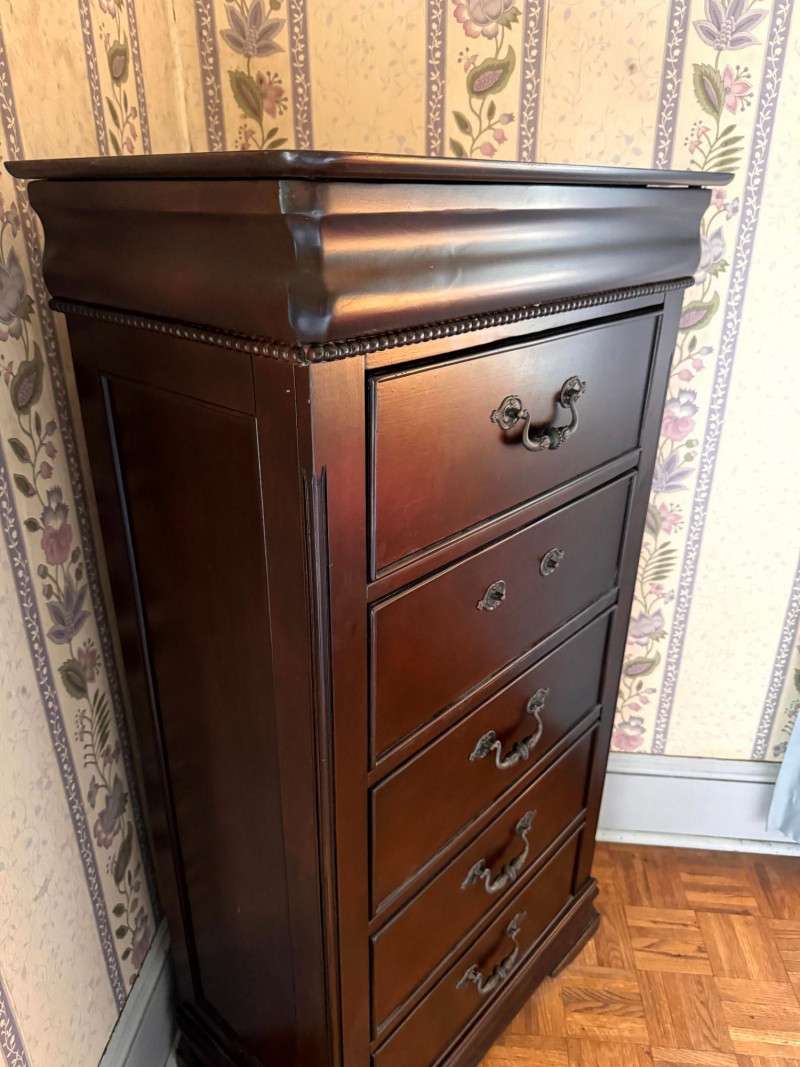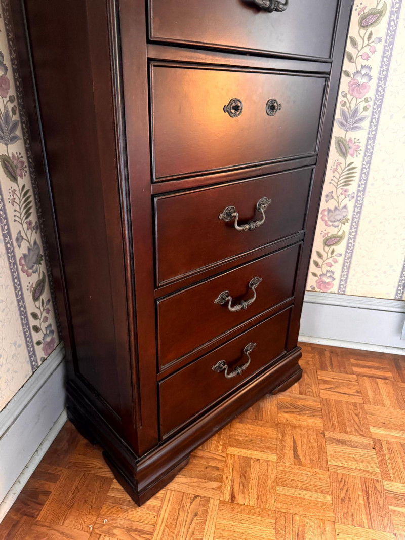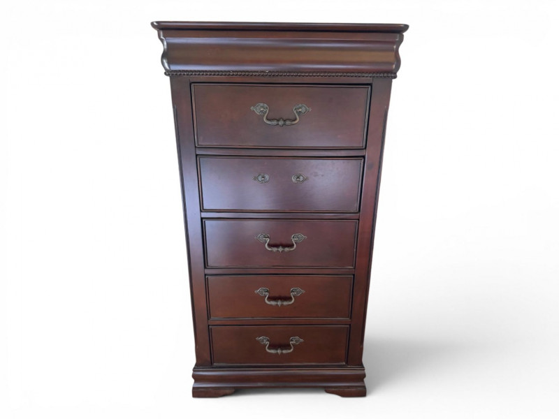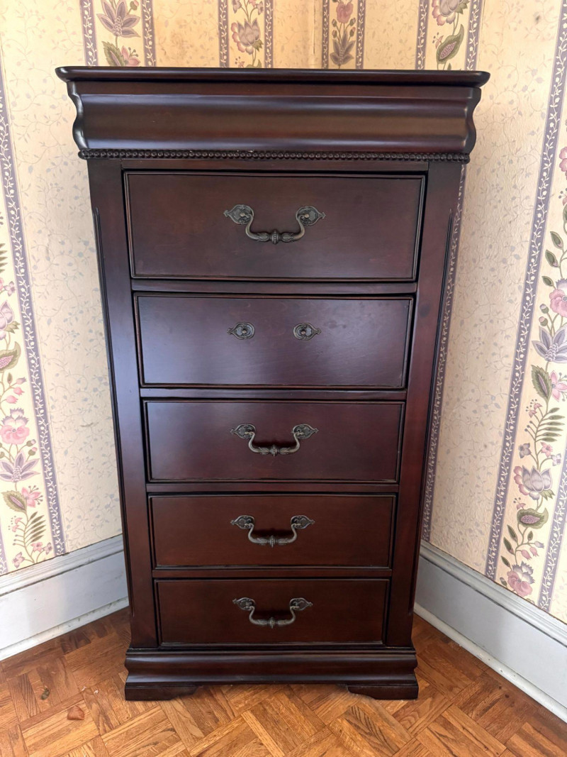 Lot # 26 - Wood Lingerie Chest - 5 Drawer Tall Dresser, Dark Finish