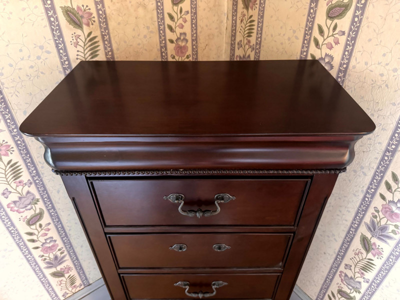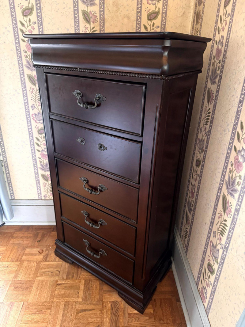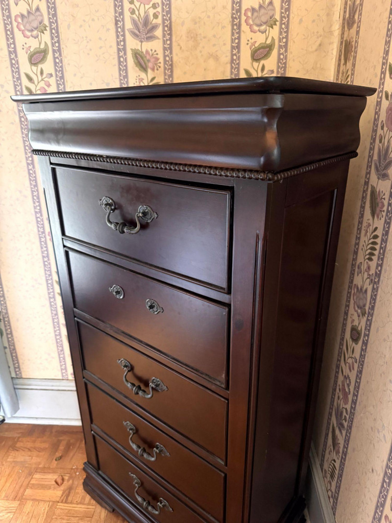 Wood Lingerie Chest - 5 Drawer Tall Dresser, Dark Finish. Disclaimer: