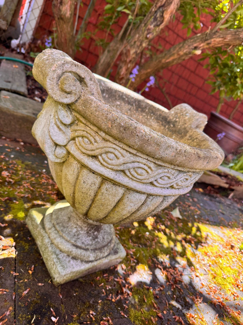 Lot # 27 - Large Concrete Urn Planter - Garden Pedestal Outdoor Pot