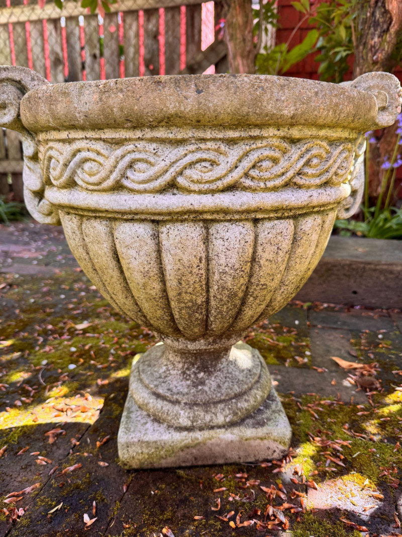 Large Concrete Urn Planter - Garden Pedestal Outdoor Pot.