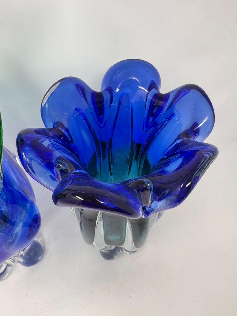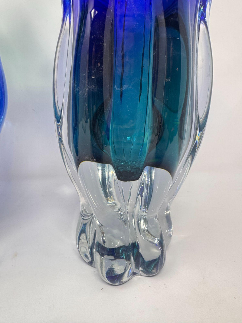 Lot # 31 - Hand Blown Sculptural Art Glass Vases w/ Blue & Green Swirl