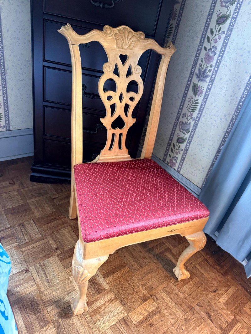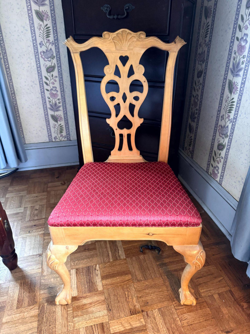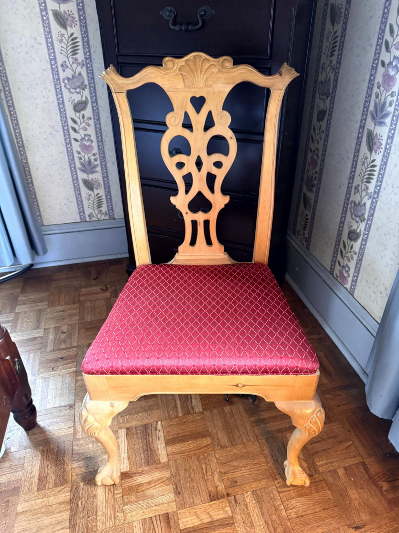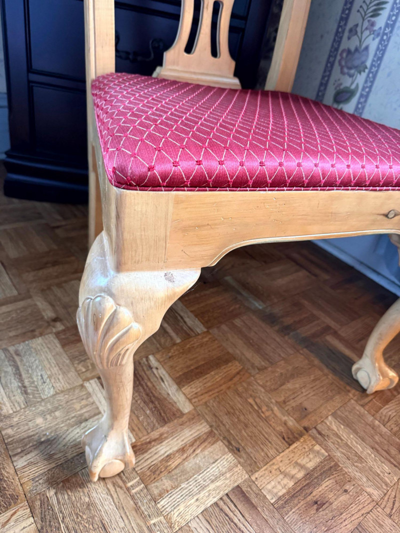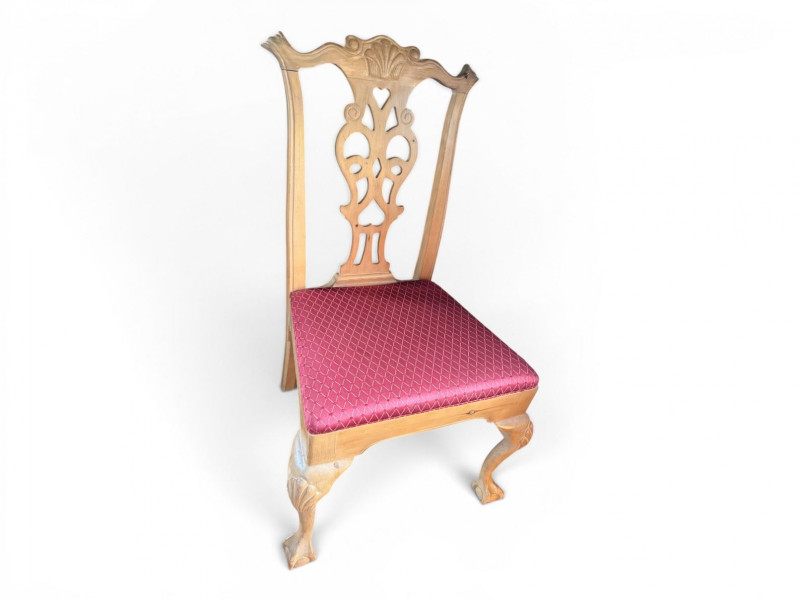 Custom Upholstered Carved Wood Side Chair w/ Claw Feet - Large.